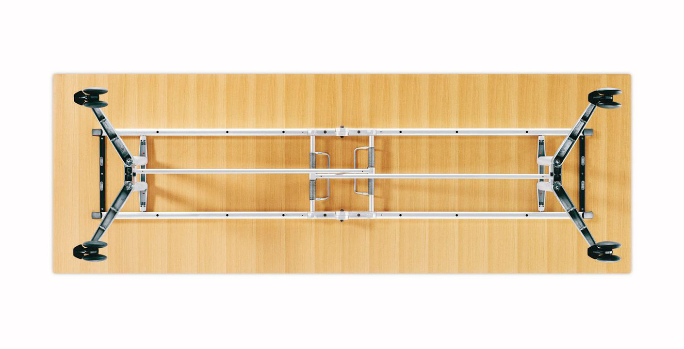 Dynamic. Space-saving. Superbly designed. Desk-sharing, flexible teamwork and short-term integration of freelancers into project groups have become an integral part of our daily work routine. That means it is high time for this to be reflected in the working environment too. That is why we have developed a conference table that can accommodate both individual persons or a group of eight. That can be simply linked with other tables to form a conference table configuration, and can be folded up in no time at all and rolled to the side of the room. Everyone can therefore be as creative as the environment allows. The Confair folding table provides you with optimal conditions for free personal development.Thanks to Confair folding tables, versatile usage of well-designed conference and meeting areas is child’s play. Only one single person is required to set up and rearrange the moveable folding tables – without any tools, releasing or unlocking procedures or special skills involved. Snap connectors allow the conference tables to be linked in any direction. If partitions are used to divide up rooms, conference or project work tables can be transformed into a large conference layout in no time. It is a welcoming thought that investing in Confair folding tables pays for itself so quickly.