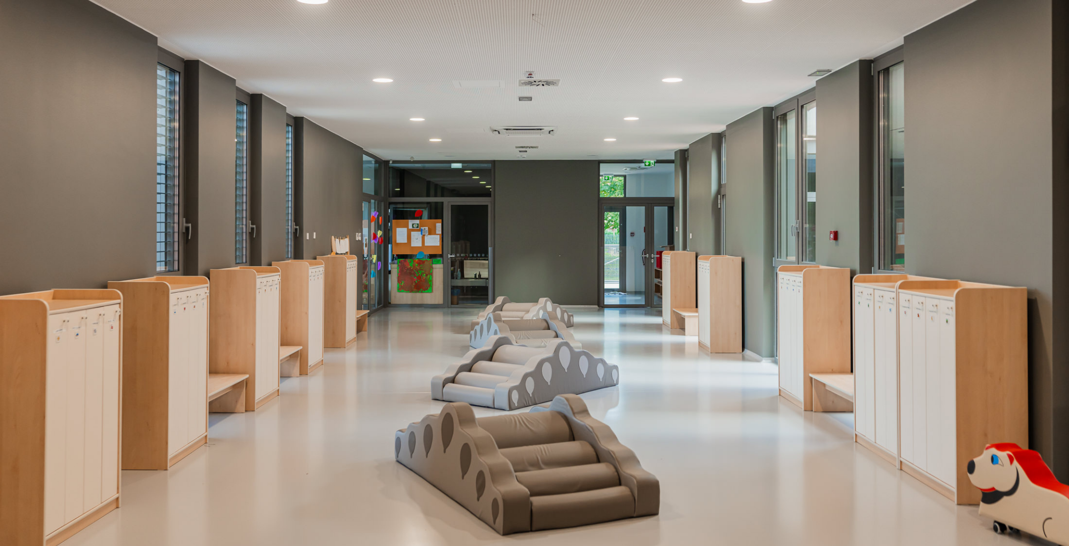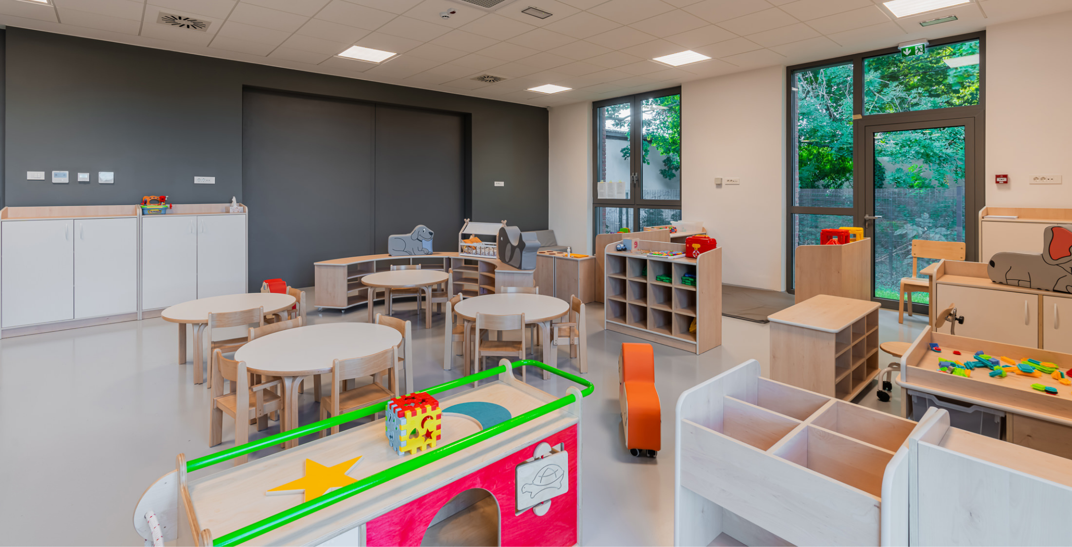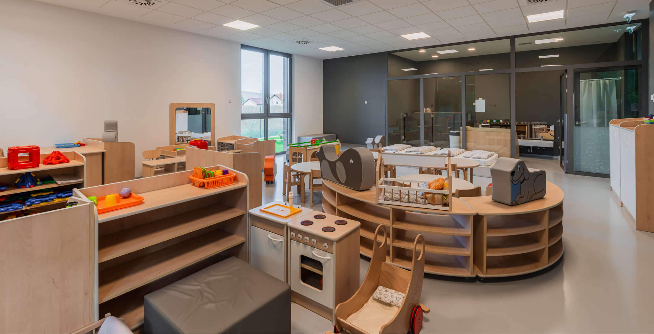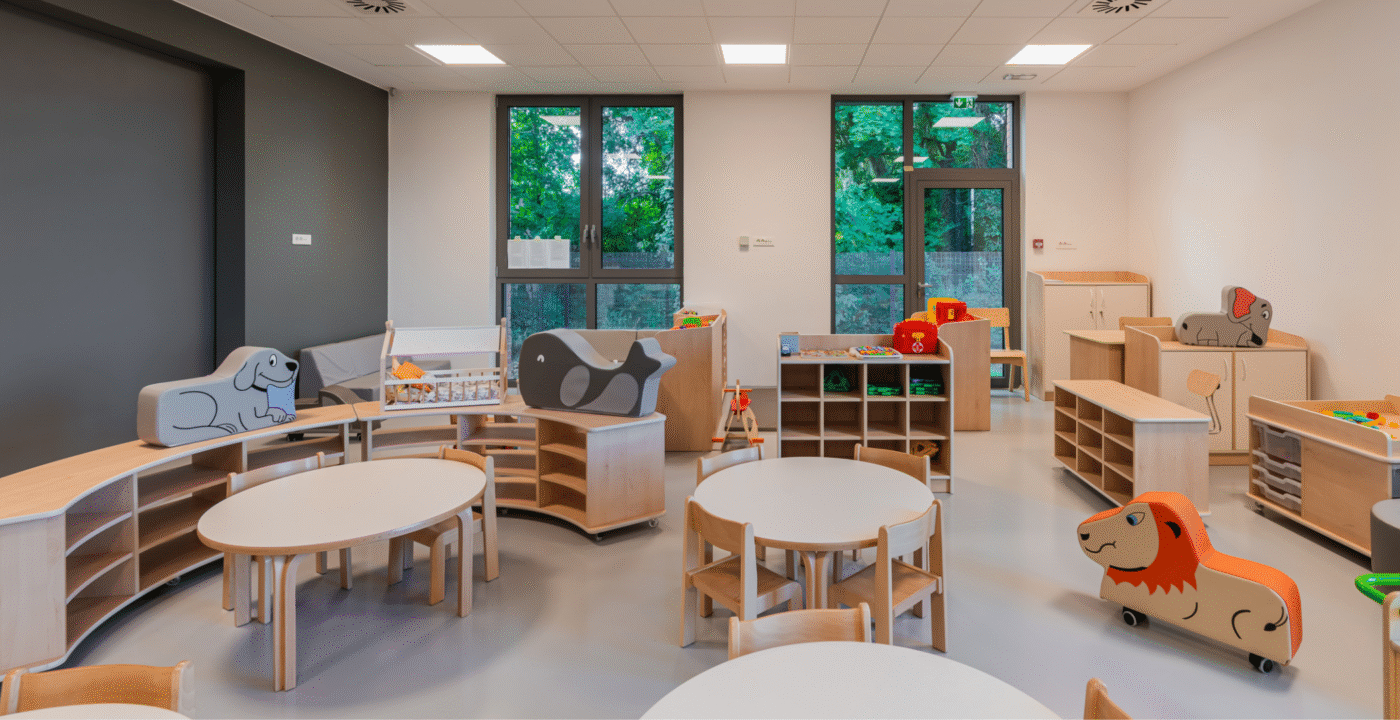 Zrno Kindergarten opened in 2024, with the City of Zagreb investing €4.2 million to create a modern and functional space for play and learning. The 1,700 m² facility accommodates six educational groups and features a range of amenities tailored to children of different ages. A distinctive feature of this kindergarten is the indoor atrium with a stress-absorbing floor, designed for outdoor-style play while ensuring maximum child safety. Each floor also includes a dining area, which is uncommon in kindergarten facilities. The kindergarten is further equipped with multisensory rooms and spaces for exploring light and shadow, fostering children’s curiosity and development through play. Carefully selected toys and equipment enhance safety, variety, and a stimulating environment that promotes play, learning, and social interaction.