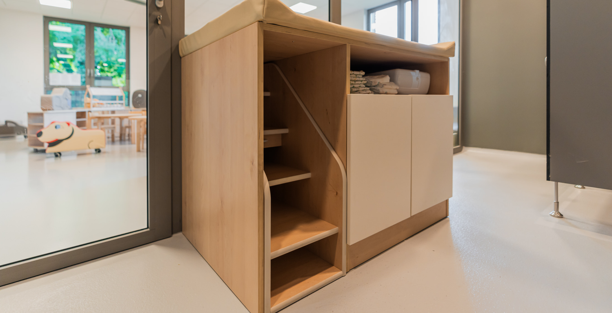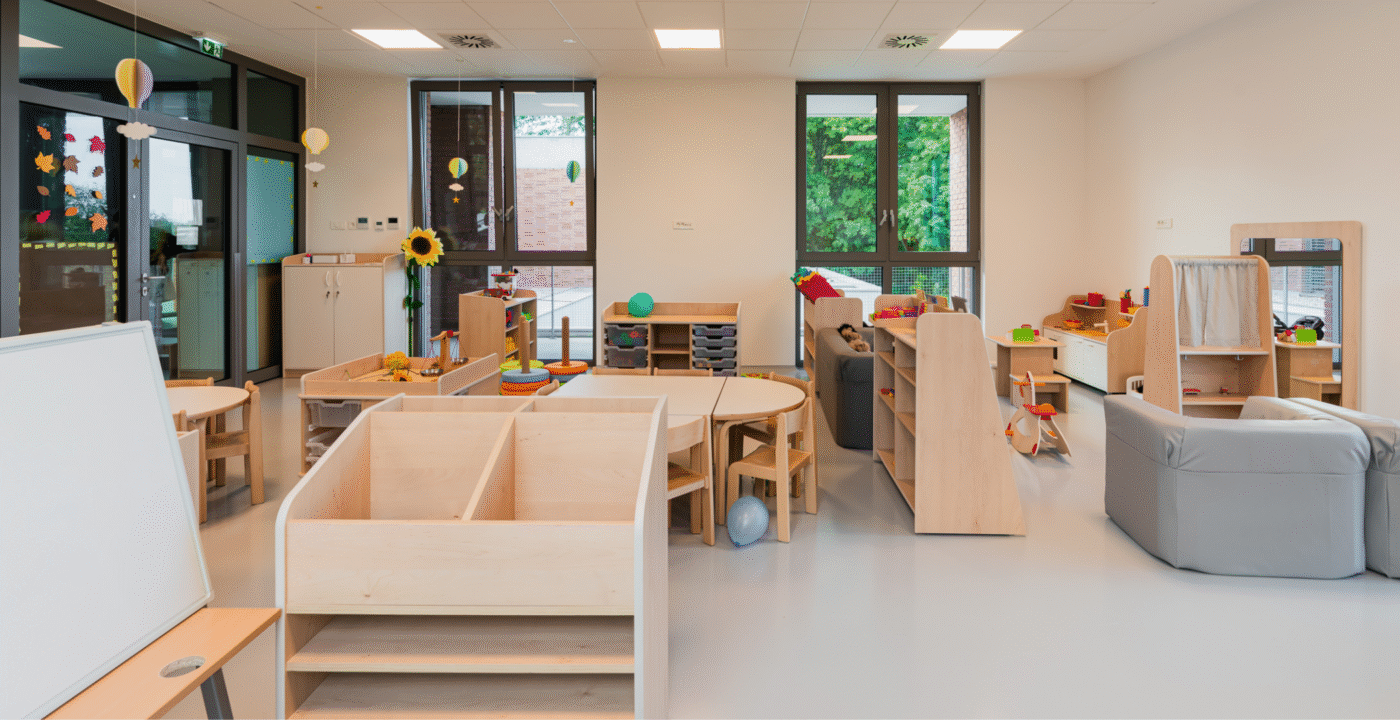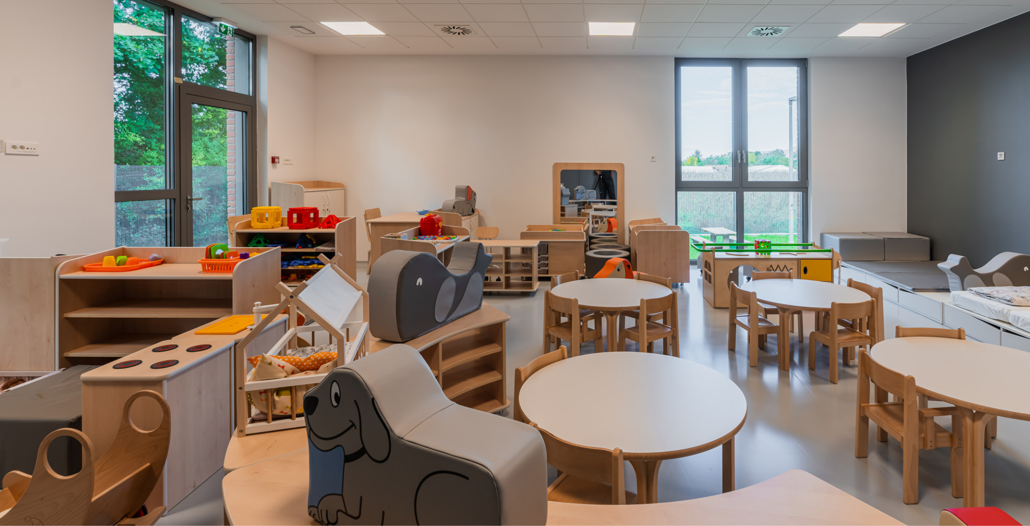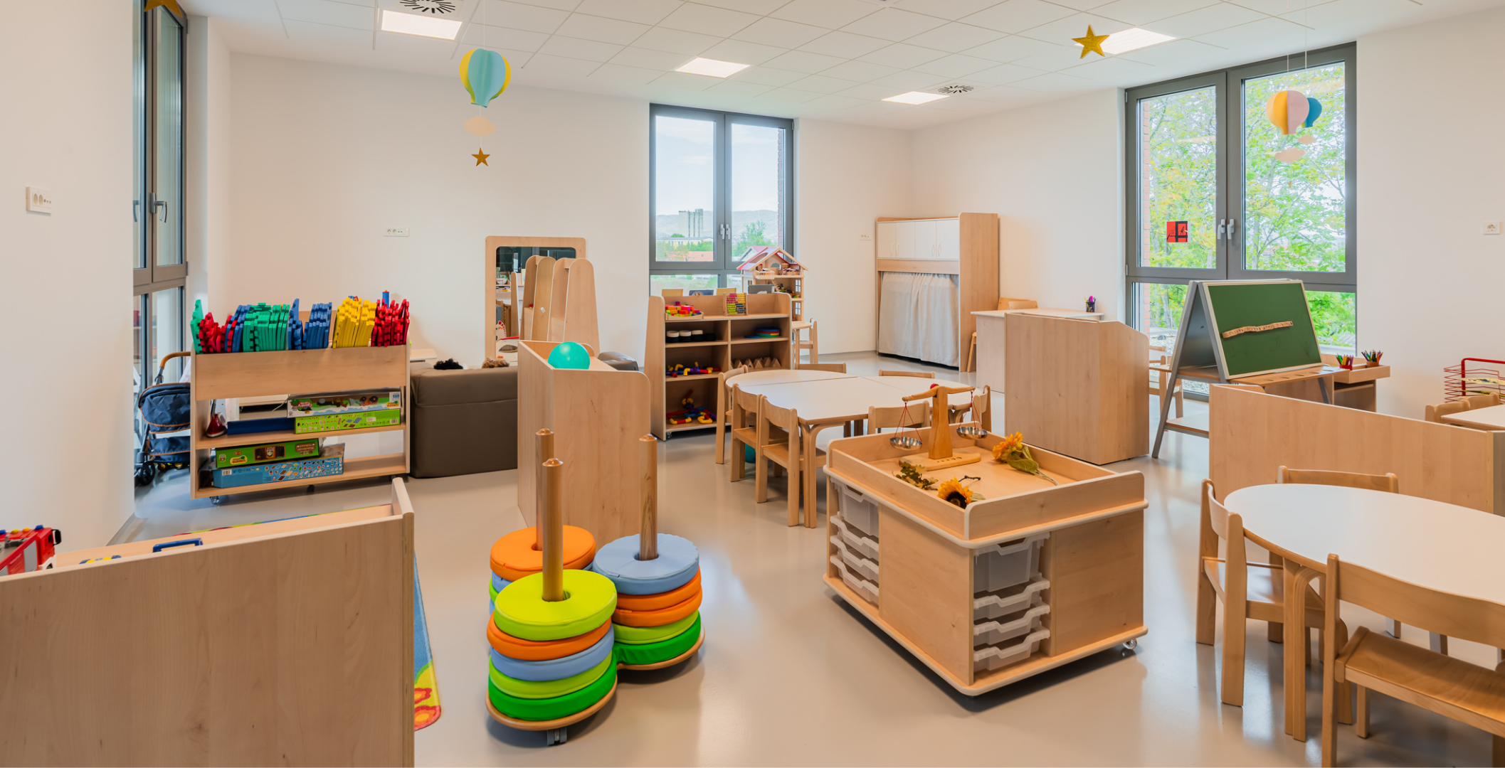 Zrno Kindergarten opened in 2024, with the City of Zagreb investing €4.2 million to create a modern and functional space for play and learning. The 1,700 m² facility accommodates six educational groups and features a range of amenities tailored to children of different ages. A distinctive feature of this kindergarten is the indoor atrium with a stress-absorbing floor, designed for outdoor-style play while ensuring maximum child safety. Each floor also includes a dining area, which is uncommon in kindergarten facilities. The kindergarten is further equipped with multisensory rooms and spaces for exploring light and shadow, fostering children’s curiosity and development through play. Carefully selected toys and equipment enhance safety, variety, and a stimulating environment that promotes play, learning, and social interaction.