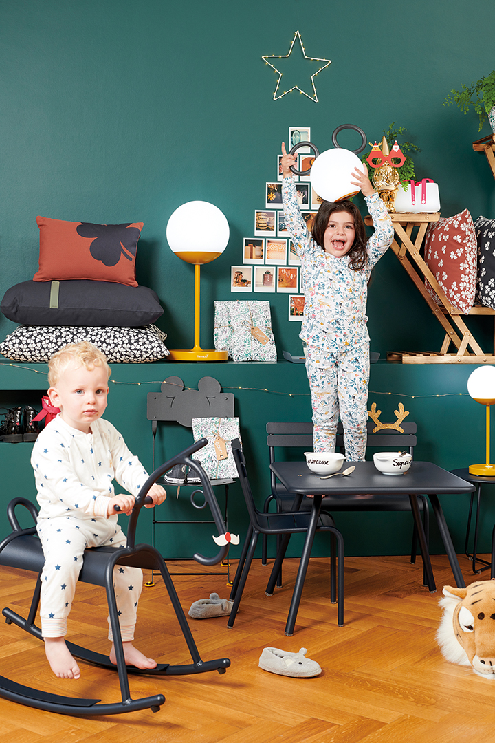 This unusual quadruped has it all: a design in keeping with safety standards, and a light aluminium frame and pads that will not scratch the floor. It is also an environmentally friendly piece, made from existing parts and tubes from other items of Fermob furniture, inspired by the aesthetics of the iconic Luxembourg collection. Adada is simply fantastic! Children, meanwhile, will love playing on it anywhere they can… indoors, outdoors and at the bottom of the garden. Taming it is child’s play… choosing the right colour is another matter! A gift idea that is sure to delight our little ones!