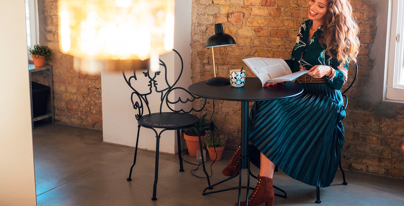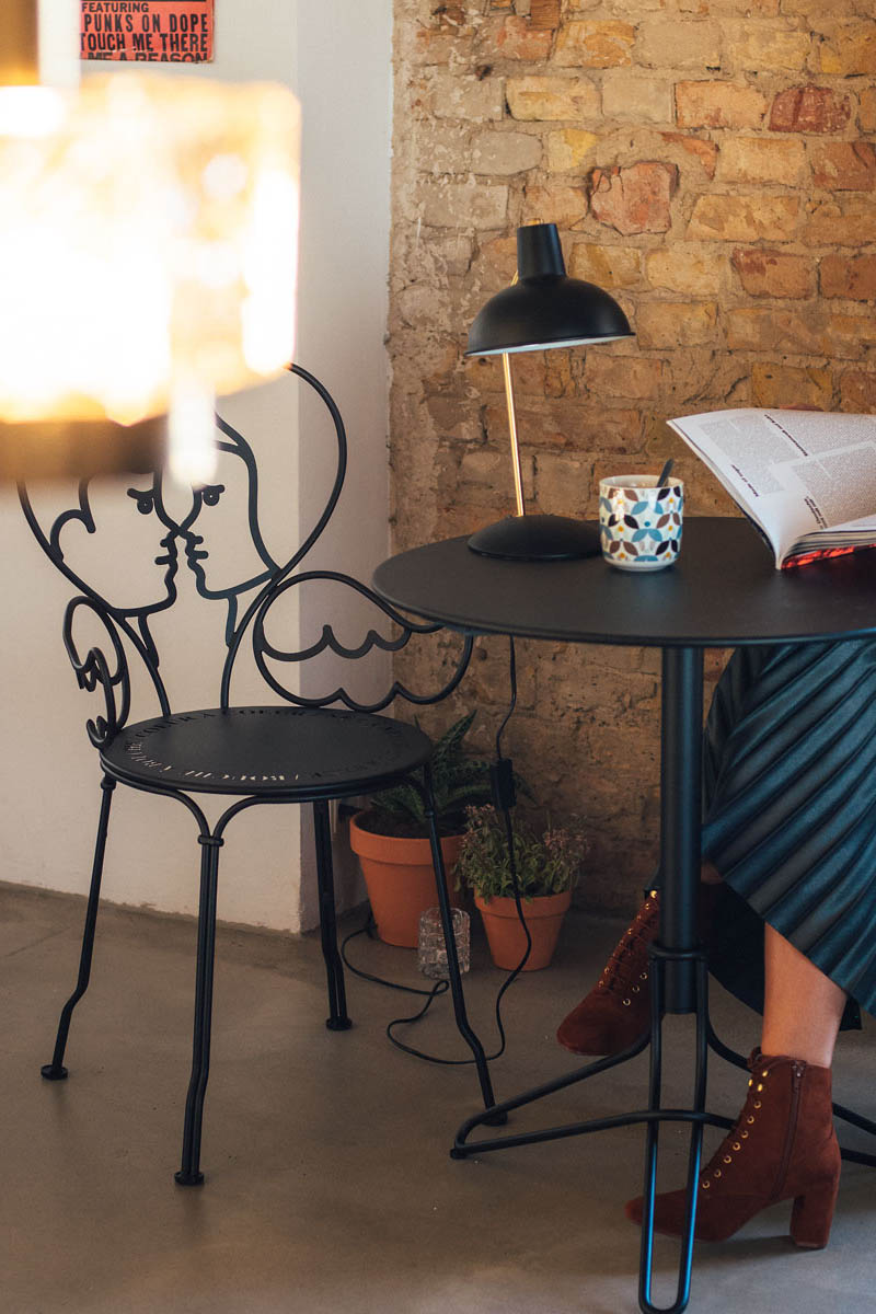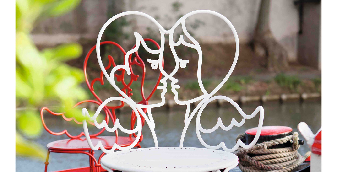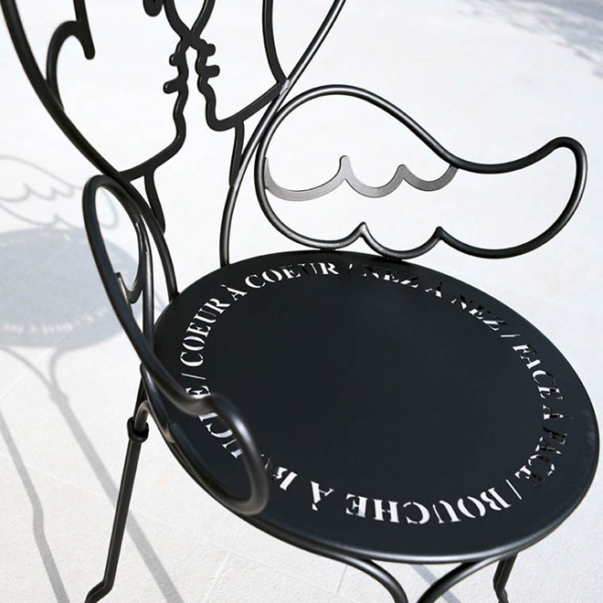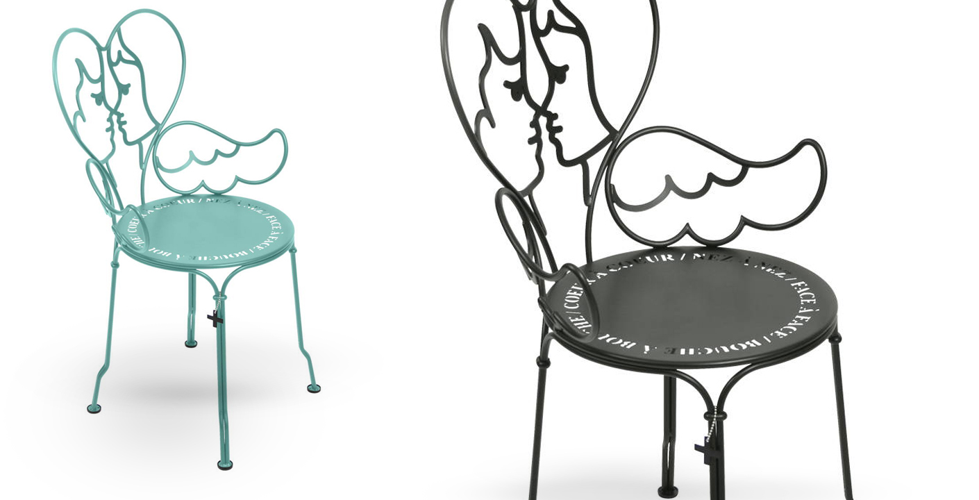 In creating Ange, designer Jean-Charles de Castelbajac restyled the 1900 chair, one of the emblematic references of the Fermob catalogue. He offers us a kiss between two cherubs, and a poem that lies somewhere between Cocteau and Saint-Exupéry. The designer invites you to take flight on this chair, with its wings spread wide… for a moment of escape among the clouds.