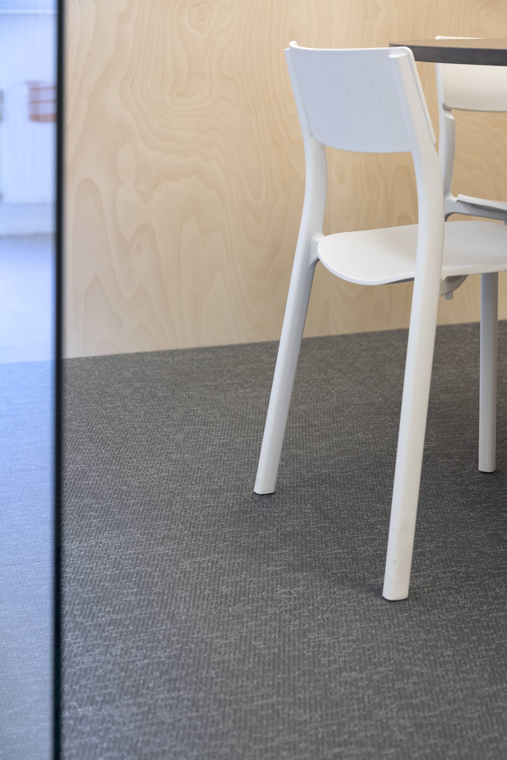 2tec2 is an excellent functional hybrid flooring that combines the best characteristics of both hard surface flooring and carpet. All the advantages of a woven vinyl flooring – cleaning, hygiene, durability & aesthetics – are now available with excellent acoustic properties and improved underfoot comfort thanks to the Comfort Backing. This innovative backing reduces both ambient and impact sound – Impact Sound Reduction: 19dB, Walking Noise Reduction: 70%, Sound Absorption: aW 0,15 -, making the acoustic properties of 2tec2 far better than hard flooring and within the same range of most textile carpet tiles.