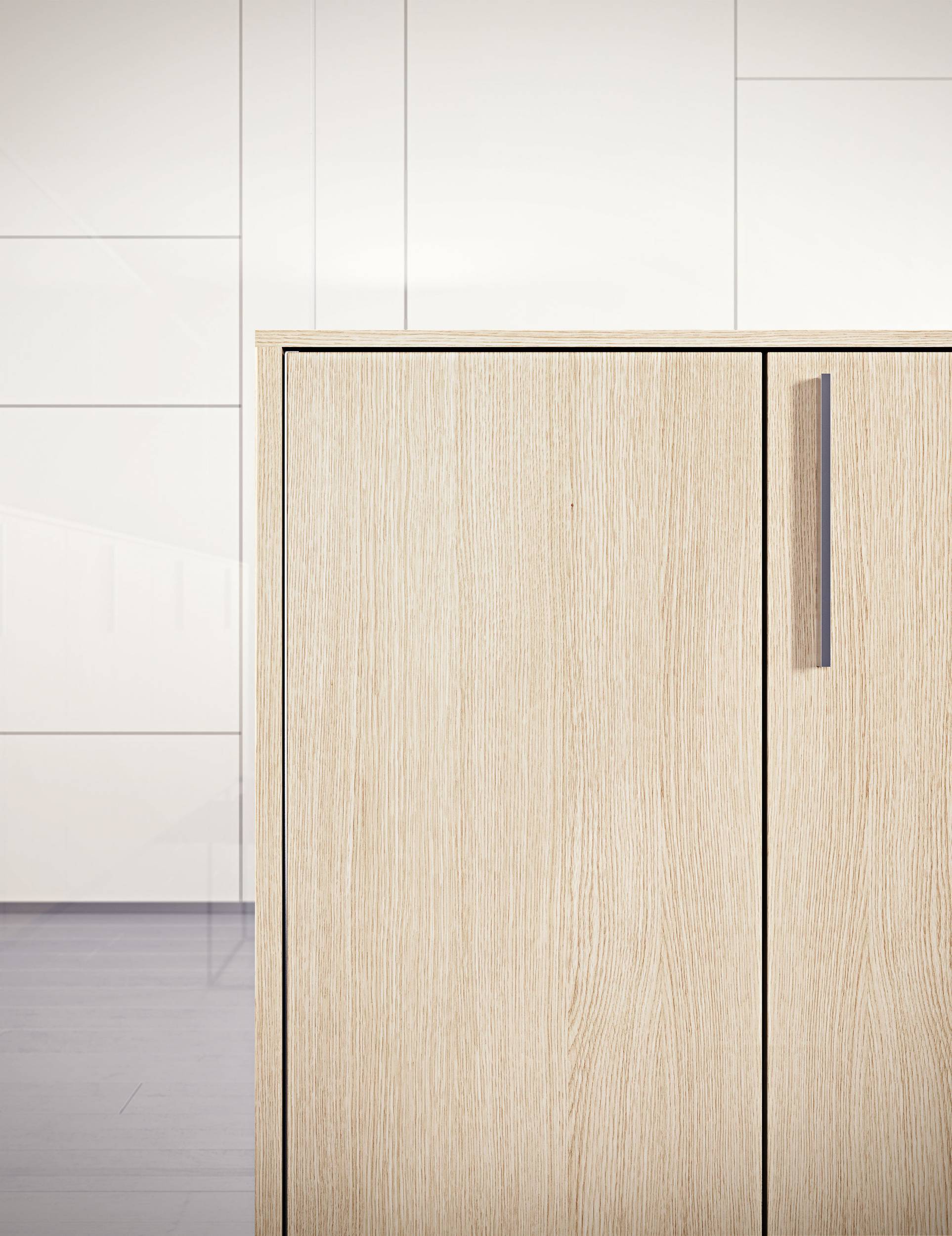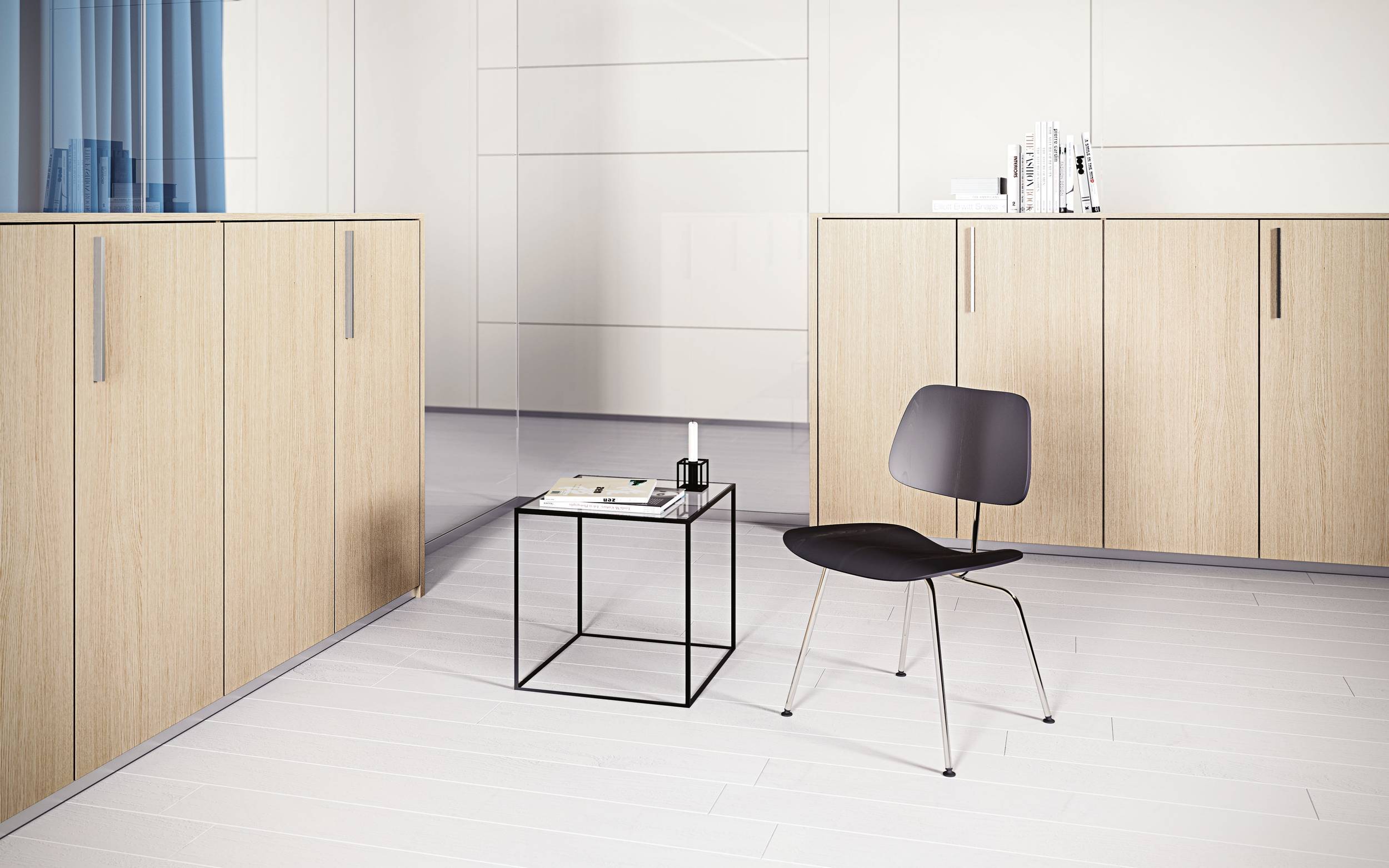 A fitted box wall that integrates perfectly with the Modulo produced partitions, creating fabulous volumetric features. It is the consolidated method that combines the functions of separation with box, ensuring furnishing uniformity and functional variability