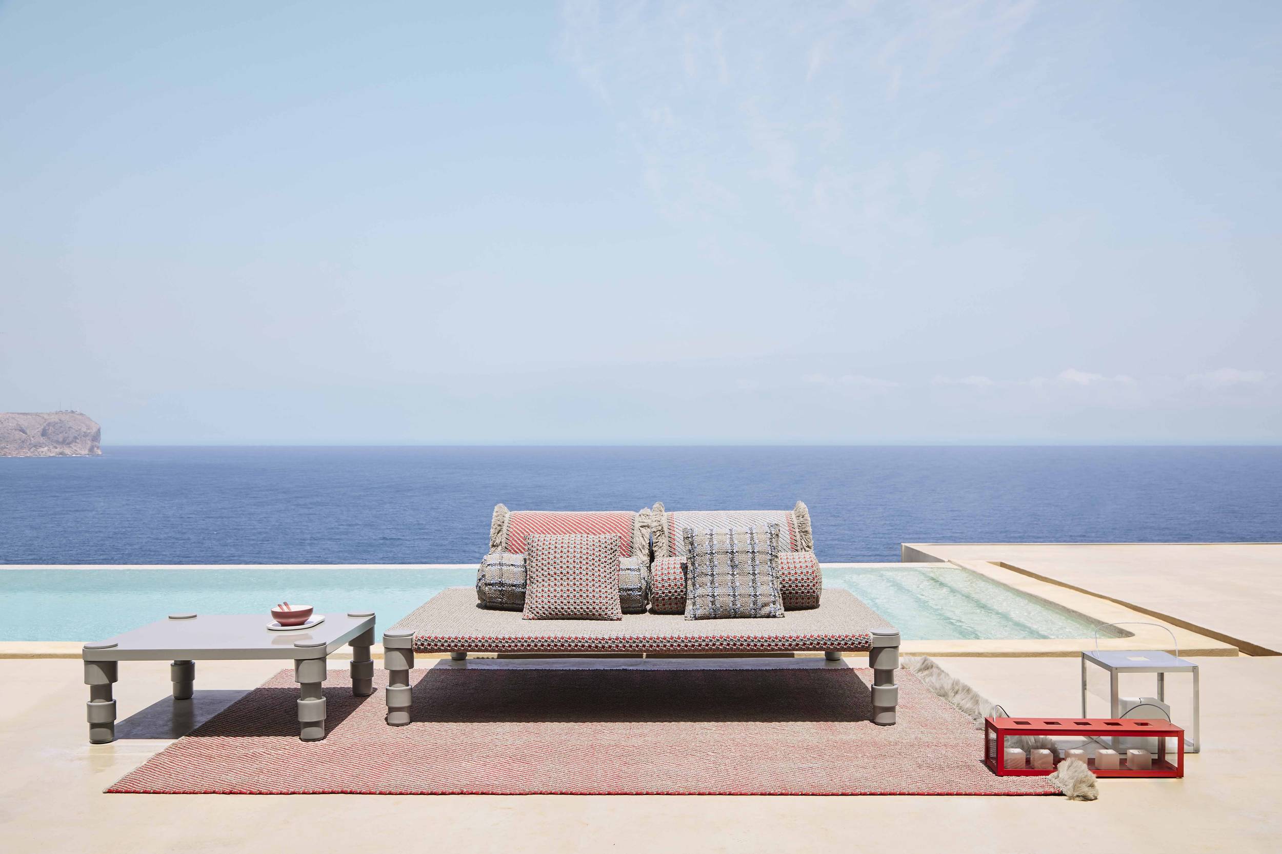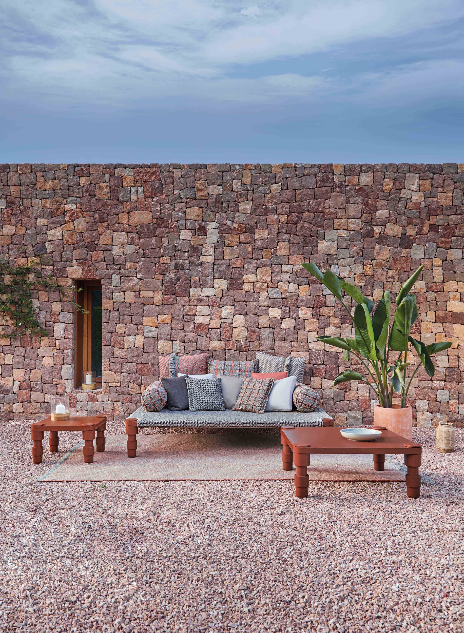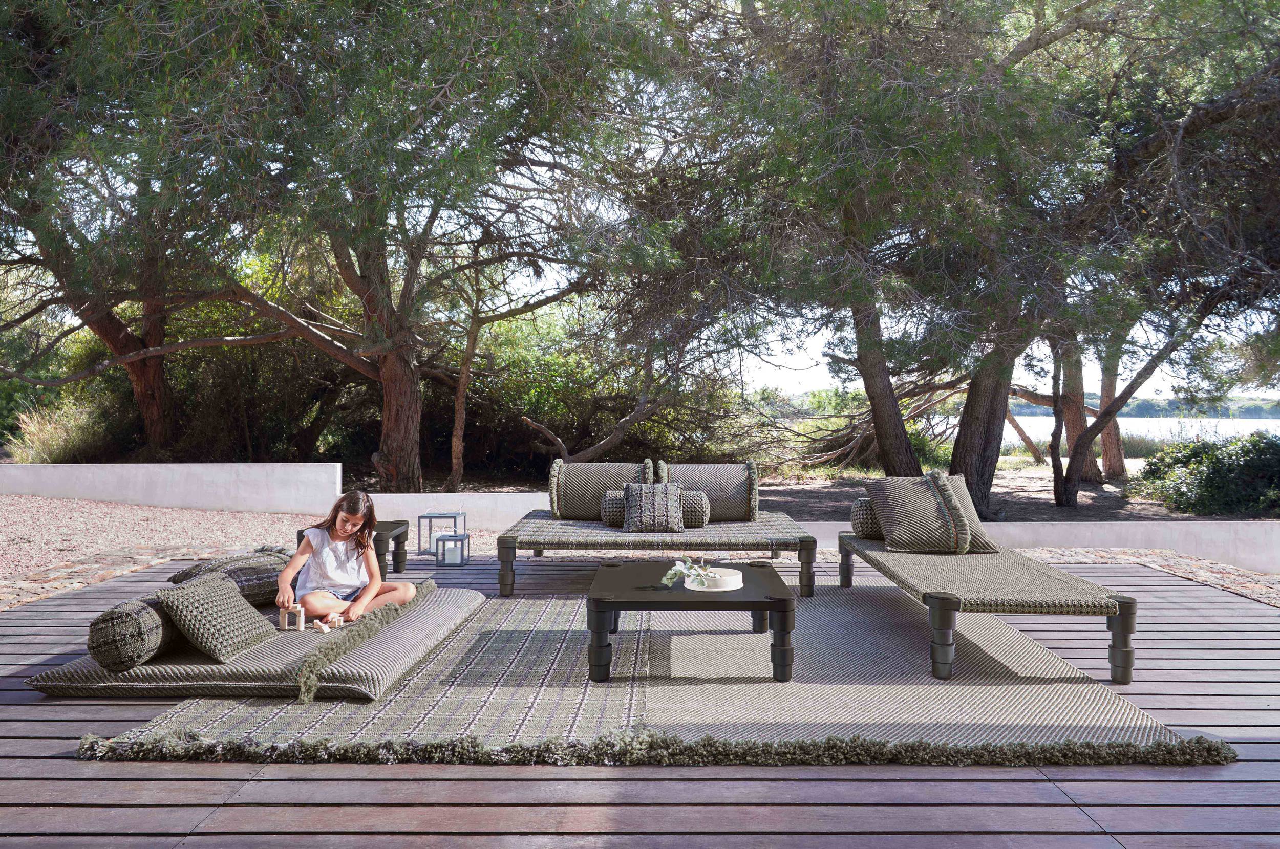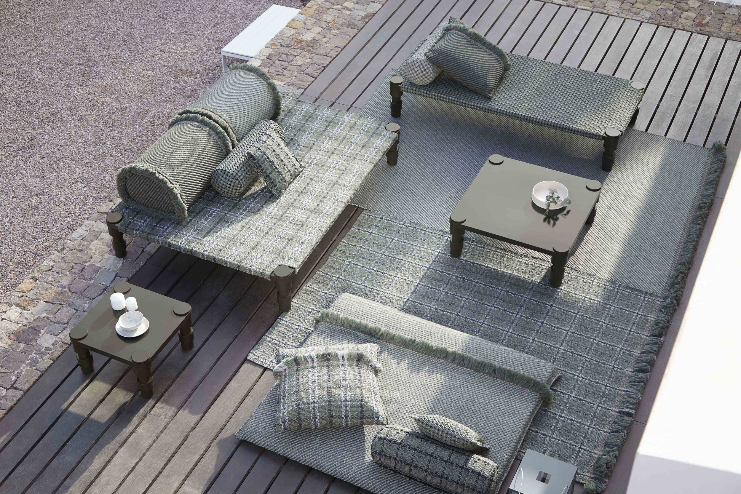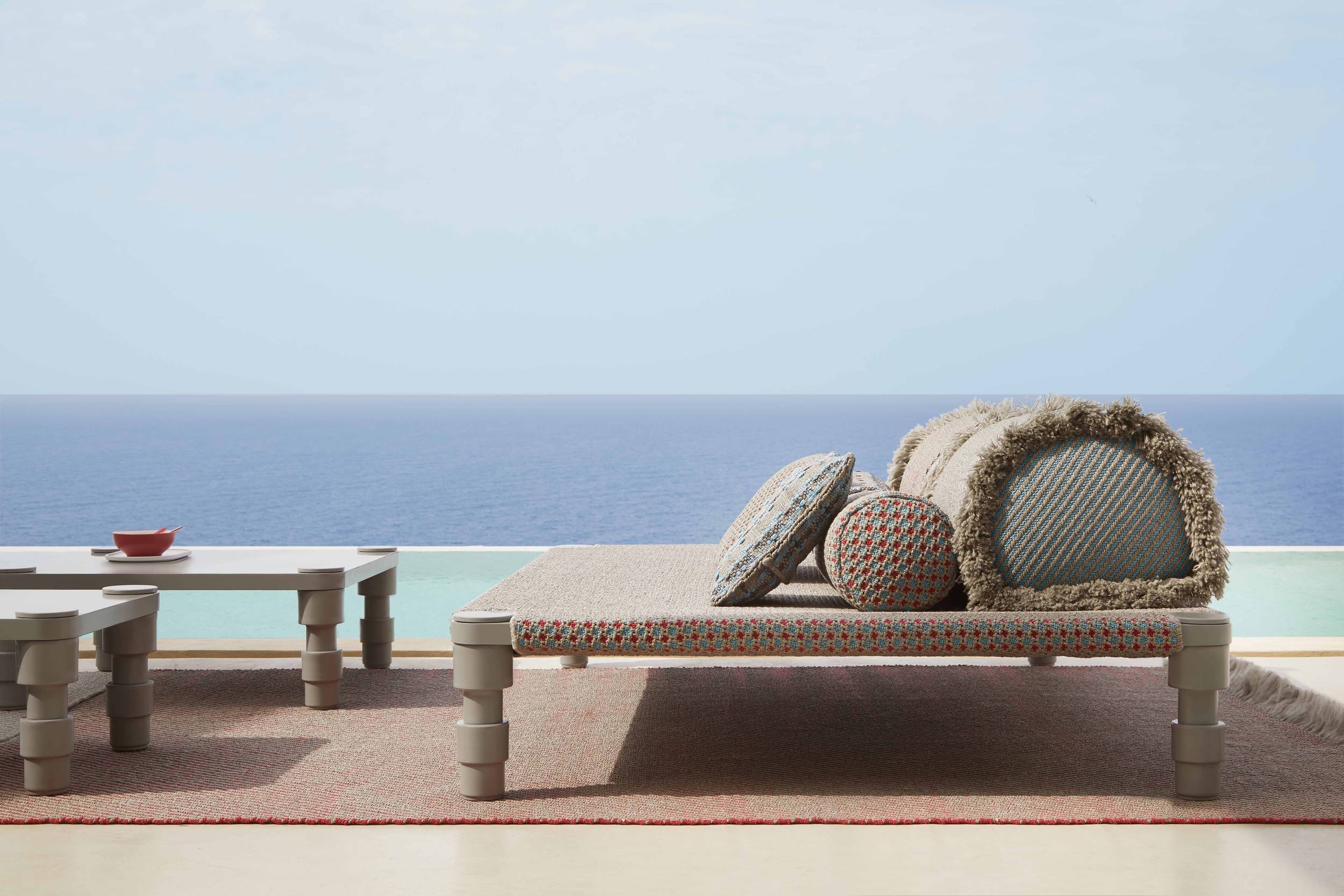 The Garden Layers collection, designed by Patricia Urquiola and inspired by Mughal architecture and culture, includes a wide range of carpets, mattresses, side tables, daybeds, rolls and cushions. Its innovative fabrics and fillings are designed specifically for outdoor use, while maintaining the comfort typical of indoor spaces.