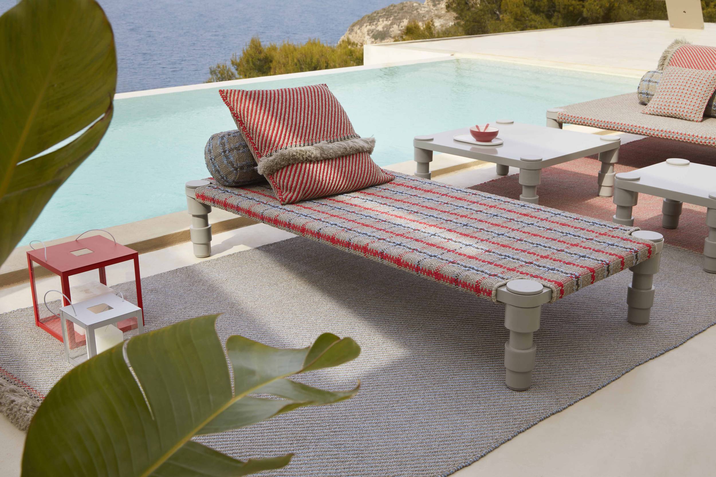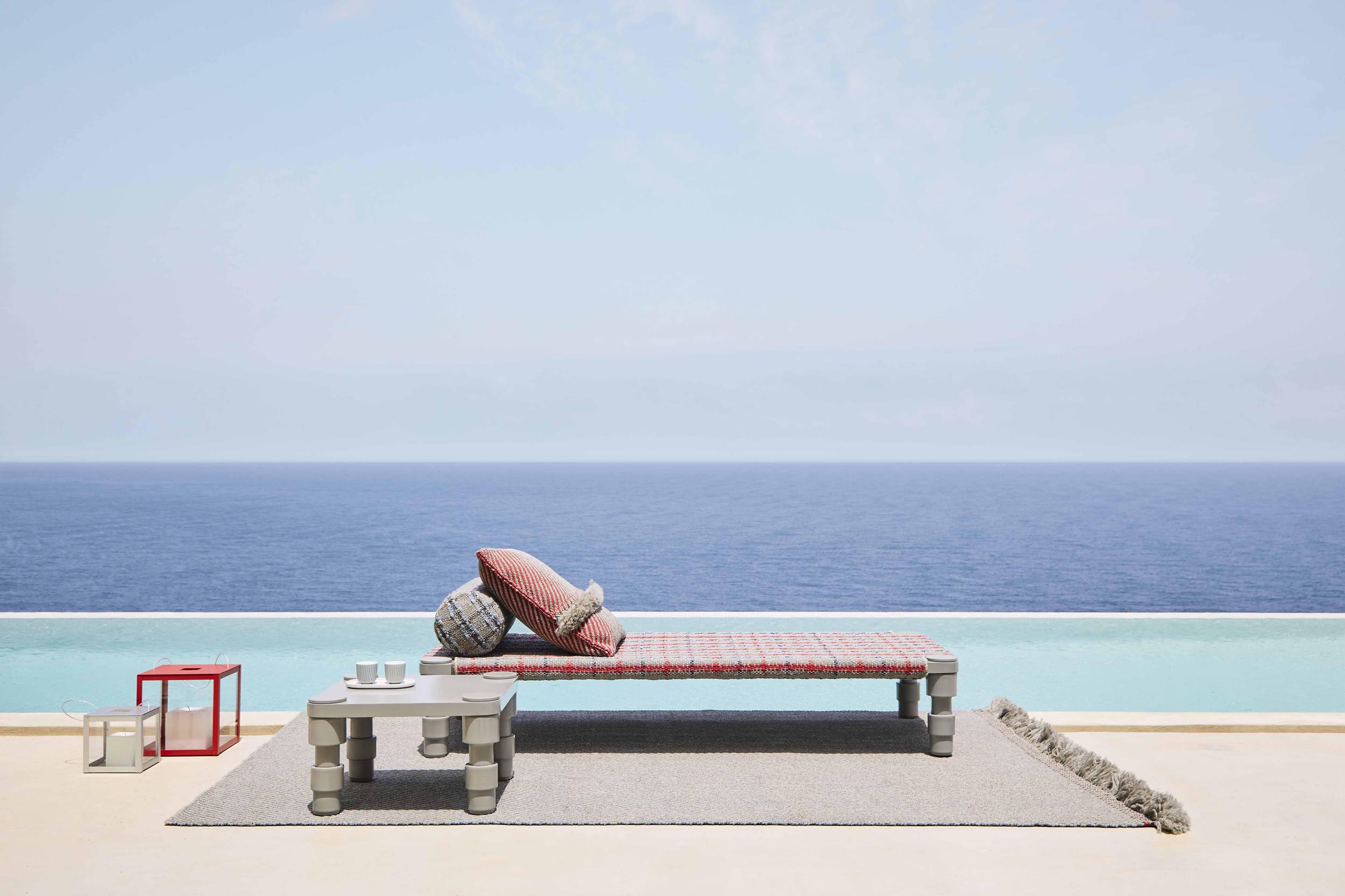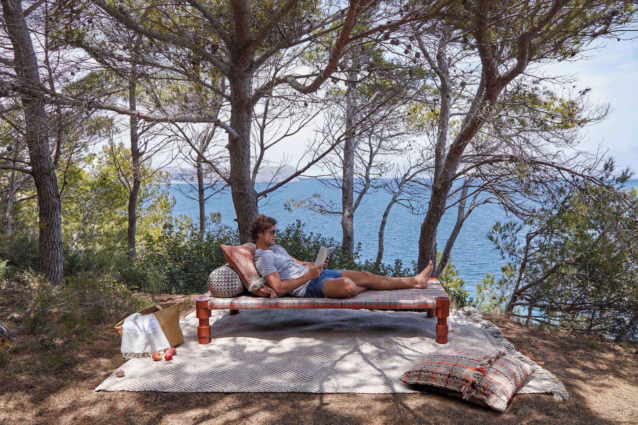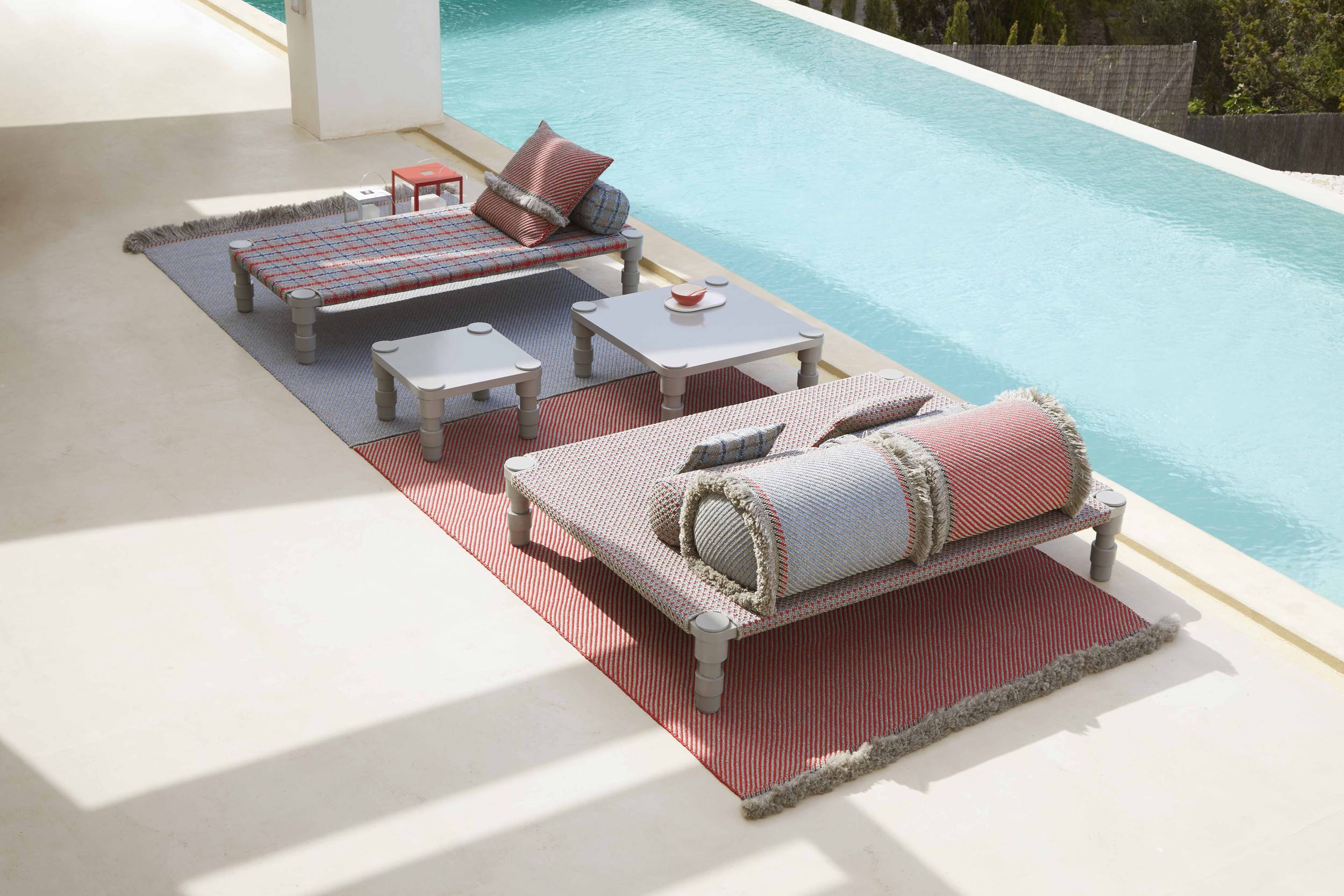 The Garden Layers collection, designed by Patricia Urquiola and inspired by Mughal architecture and culture, includes a wide range of carpets, mattresses, side tables, daybeds, rolls and cushions. Its innovative fabrics and fillings are designed specifically for outdoor use, while maintaining the comfort typical of indoor spaces.