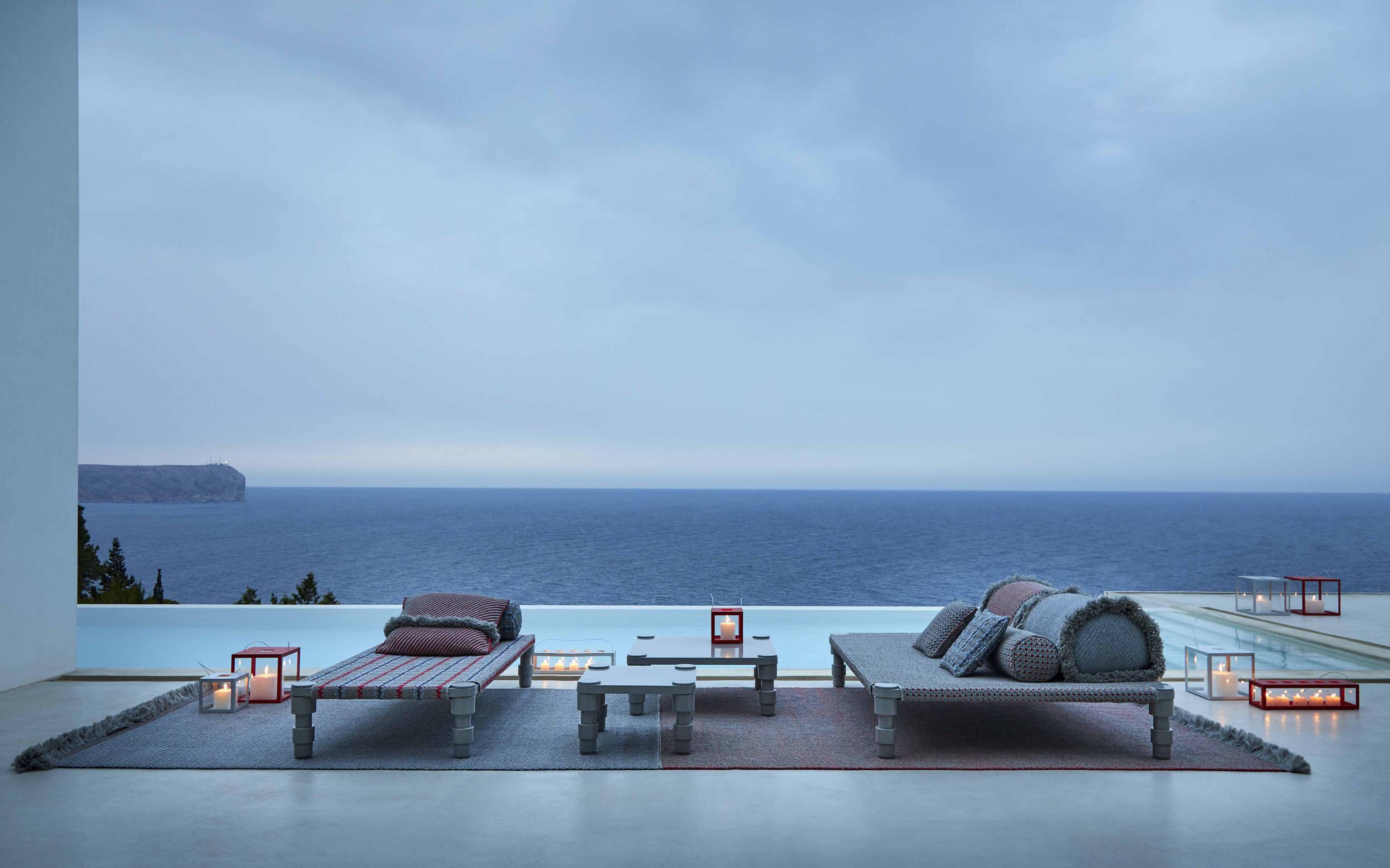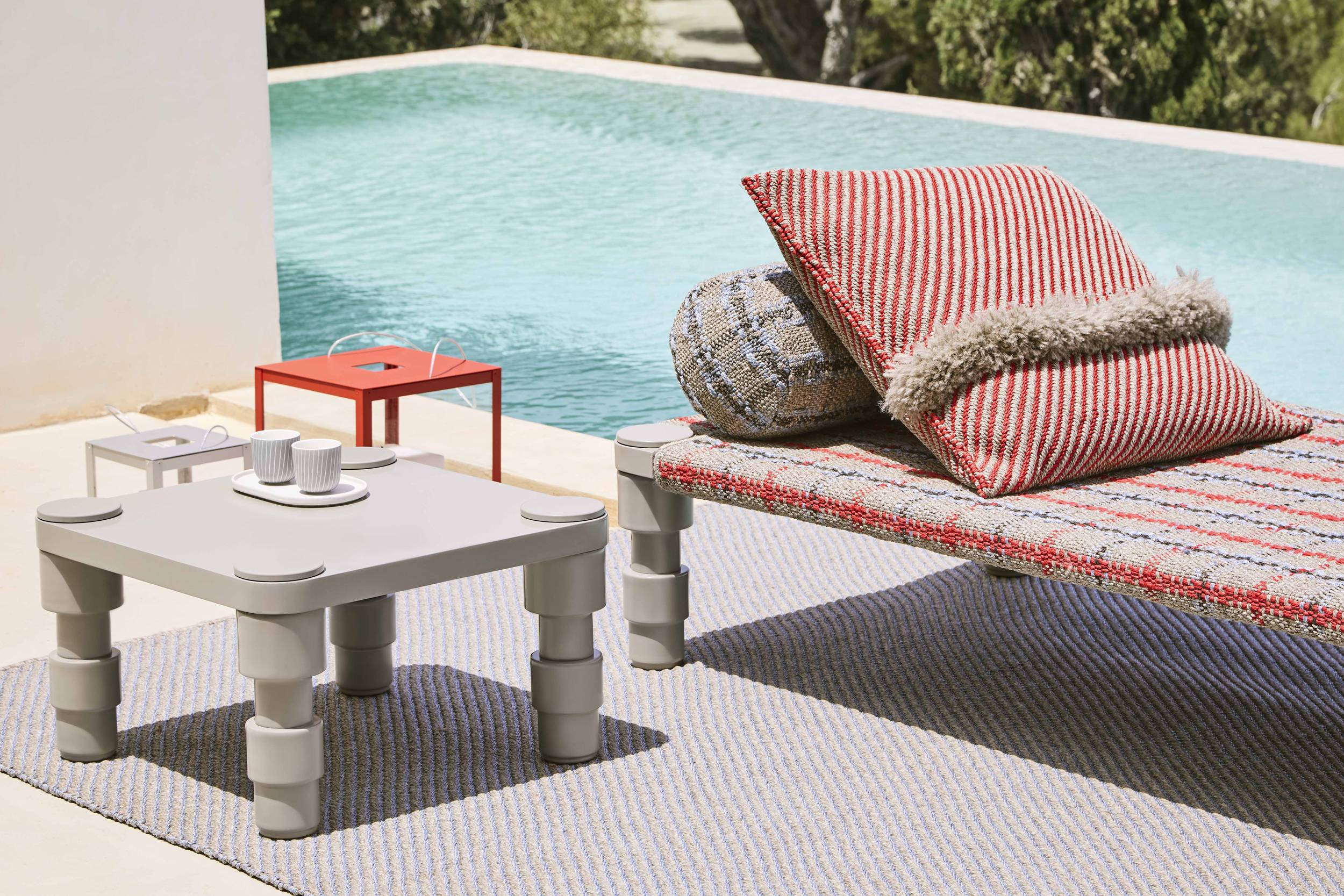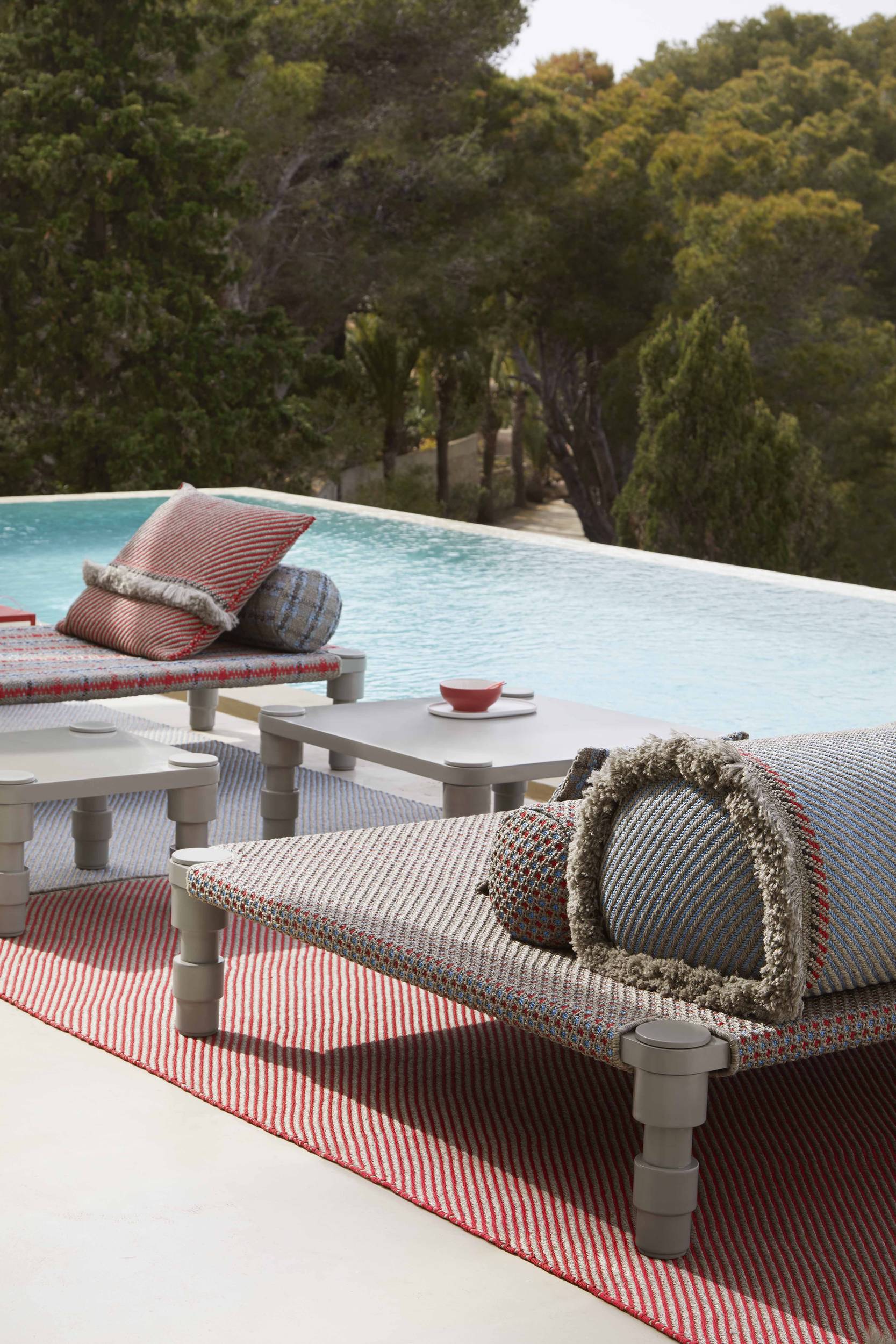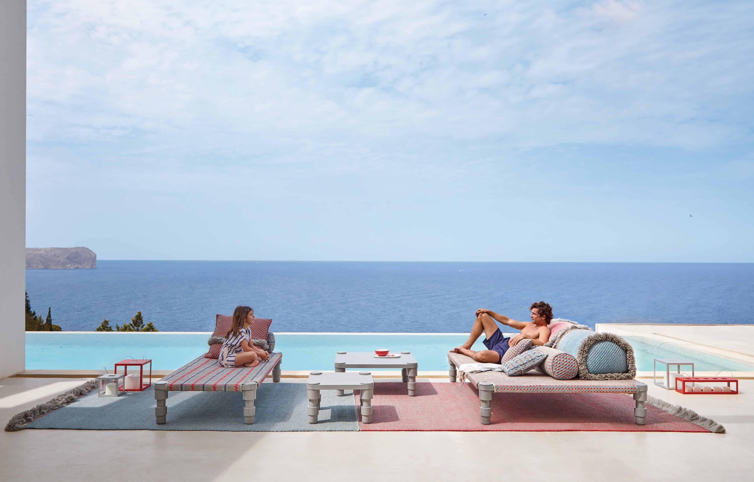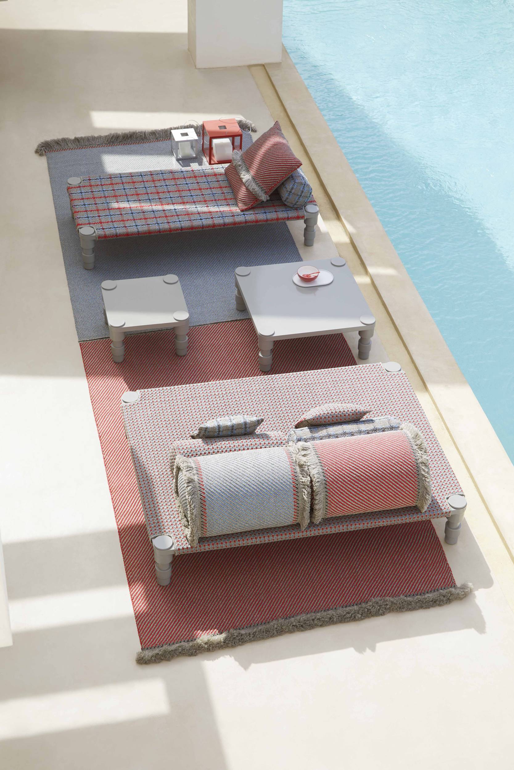 The Garden Layers collection, designed by Patricia Urquiola and inspired by Mughal architecture and culture, includes a wide range of carpets, mattresses, side tables, daybeds, rolls and cushions. Its innovative fabrics and fillings are designed specifically for outdoor use, while maintaining the comfort typical of indoor spaces.