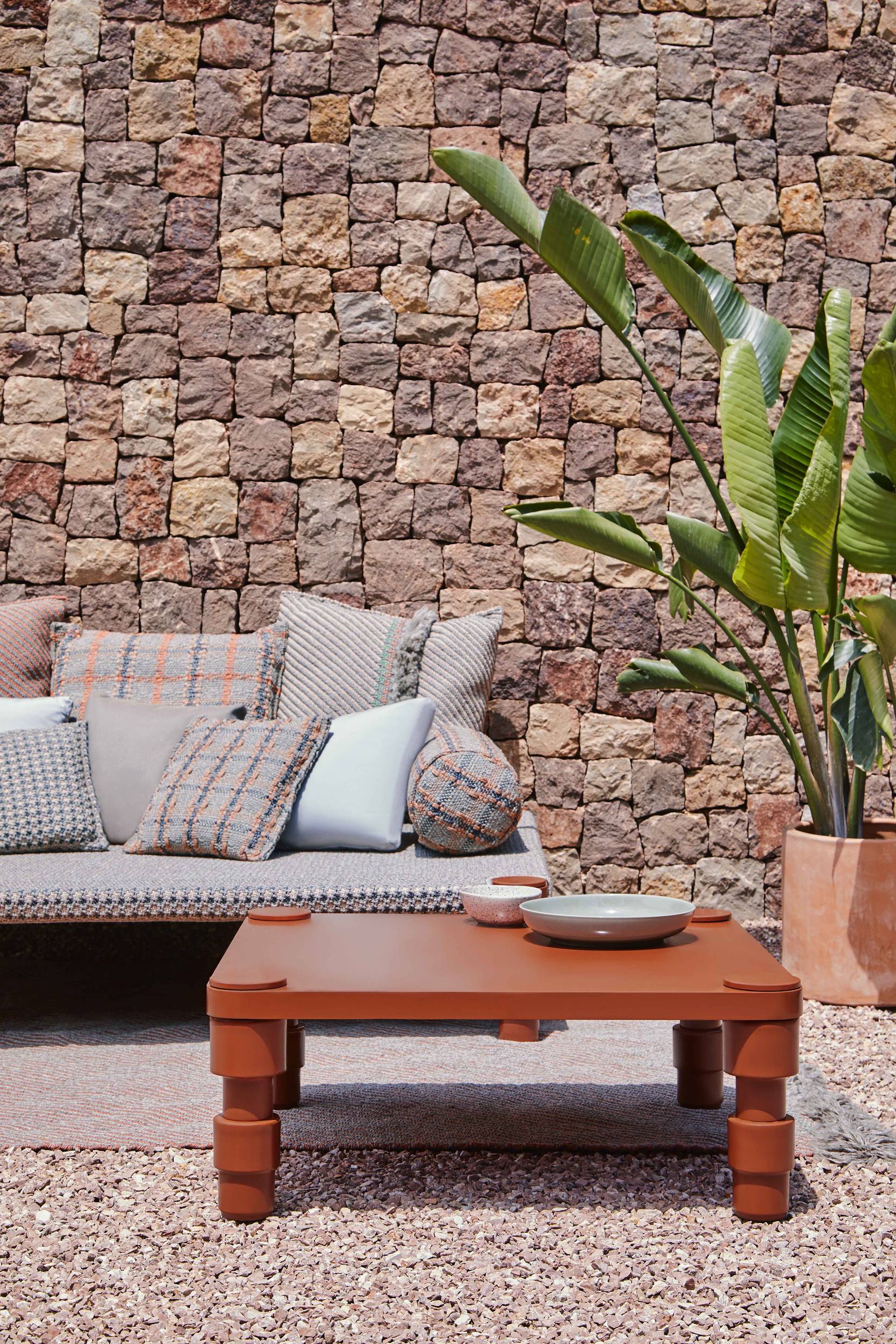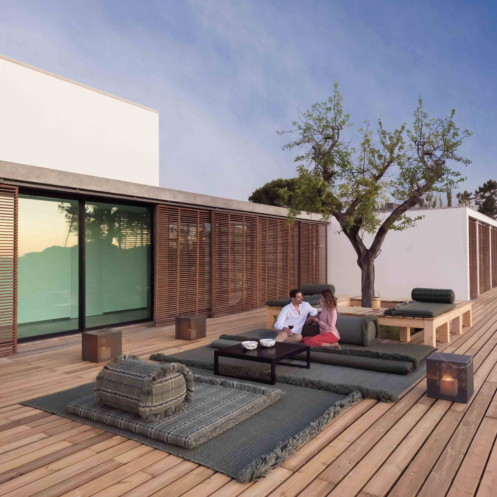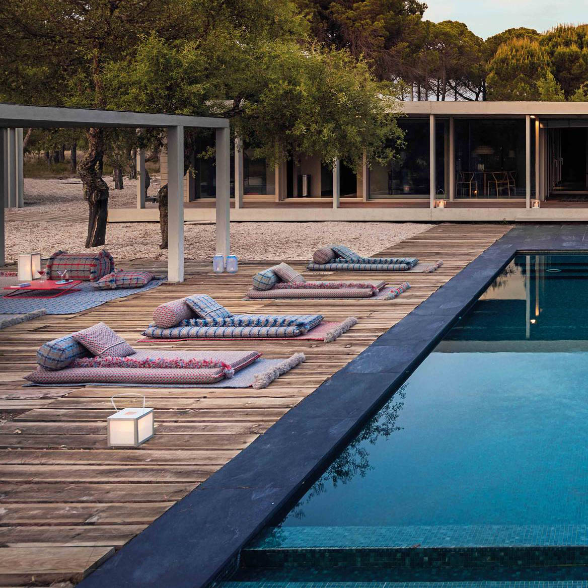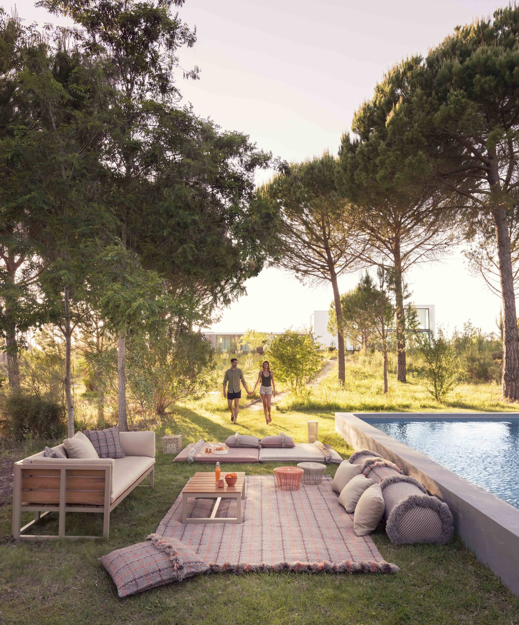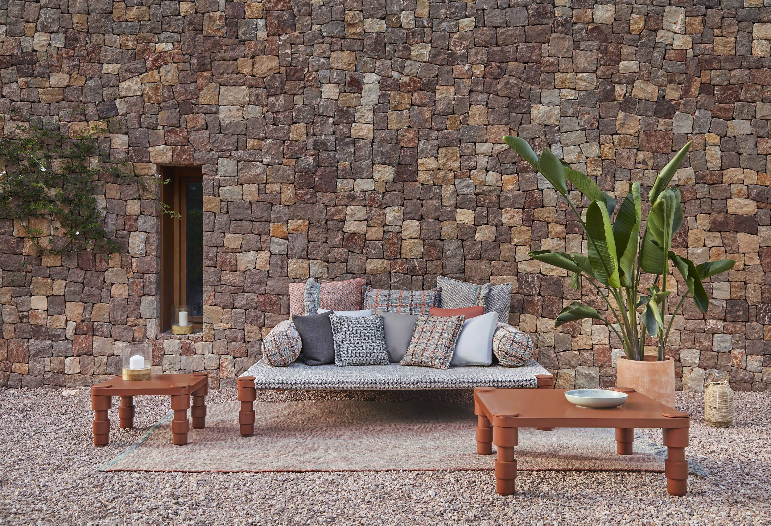 The Garden Layers collection, designed by Patricia Urquiola and inspired by Mughal architecture and culture, includes a wide range of carpets, mattresses, side tables, daybeds, rolls and cushions. Its innovative fabrics and fillings are designed specifically for outdoor use, while maintaining the comfort typical of indoor spaces.