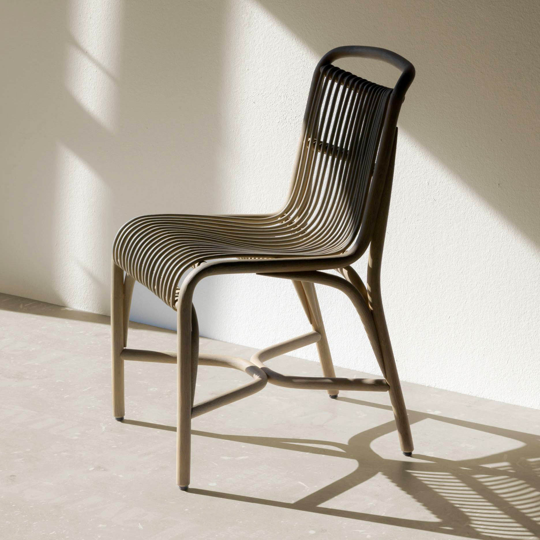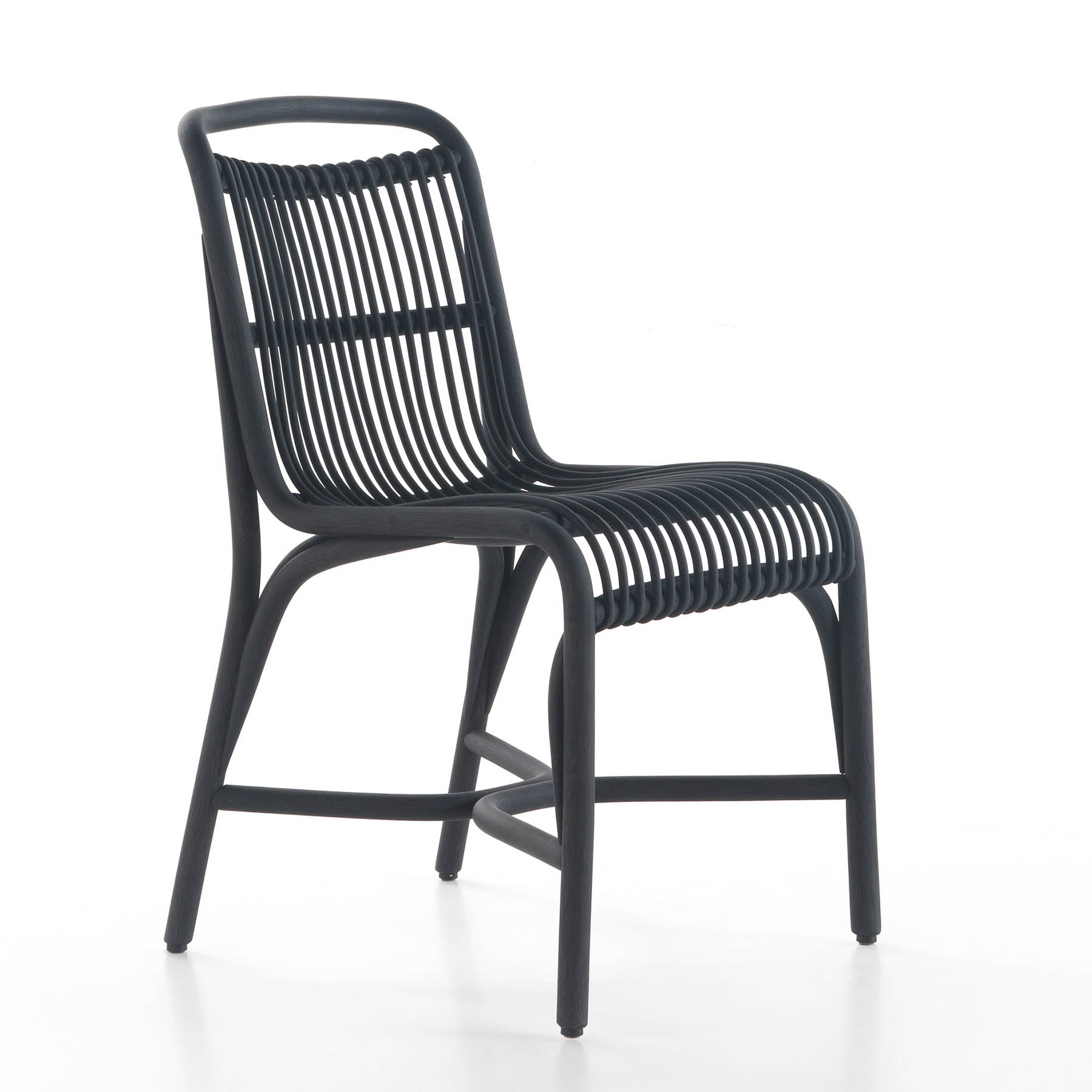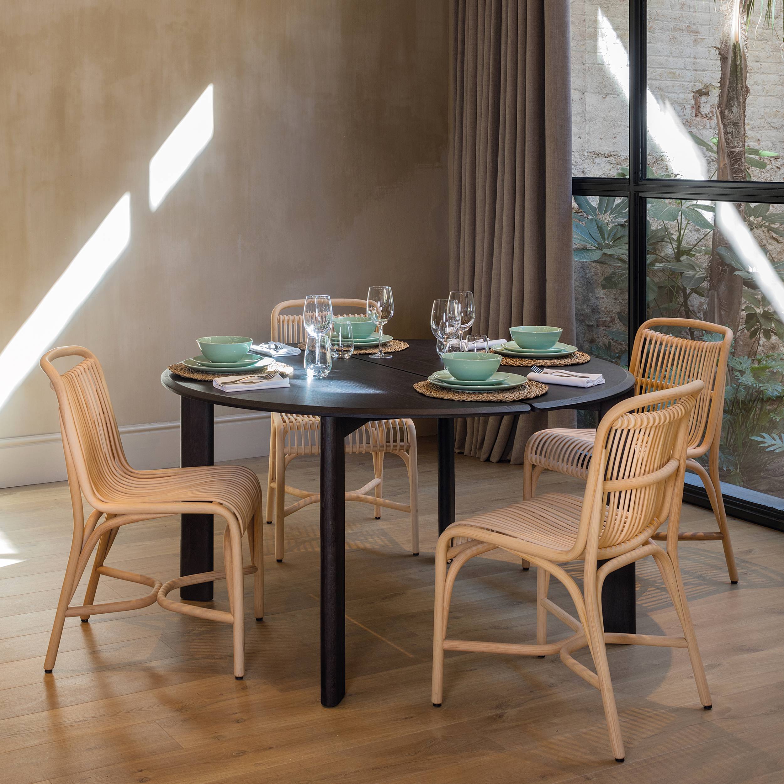 Chair with structure made of peeled natural rattan 28 mm/1.1” in diameter. Seat and backrest manufactured with peeled natural rattan 10 mm/0.4” in diameter. Finished with a three step coating (dye, base coat and top coat) highly resistant to solar radiation thanks to UV filters. Optional cushion with upholstery available in: natural or faux leather, virgin wool fabrics, velvet and polypropylene. Protective caps with removable plastic-felt inserts.