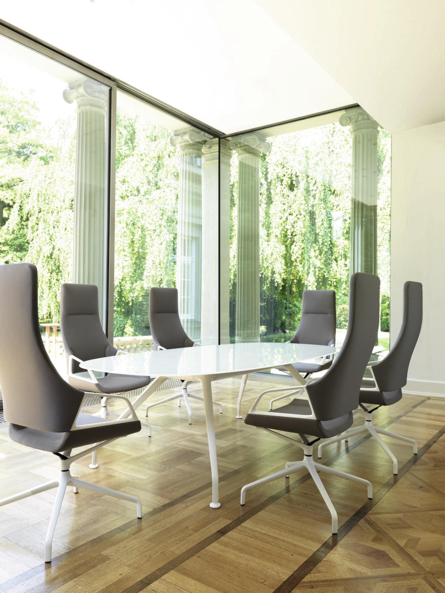 The choice of premium-design conference chairs has remained virtually unchanged for decades, so Graph is a welcome newcomer. Because the graphical quality of its cuttingedge shape stands out at first glance. Graph’s distinctive design also offers superlative comfort – despite its slender shape. The steel seat and backrest frames feature wave springs, padding and additional cushioning. All of which adds up to upholstery in a class of its own. And what’s more, without any mechanics, the leaf spring in the seat’s three-point support ensures three-dimensional flexibility to keep body and mind active.