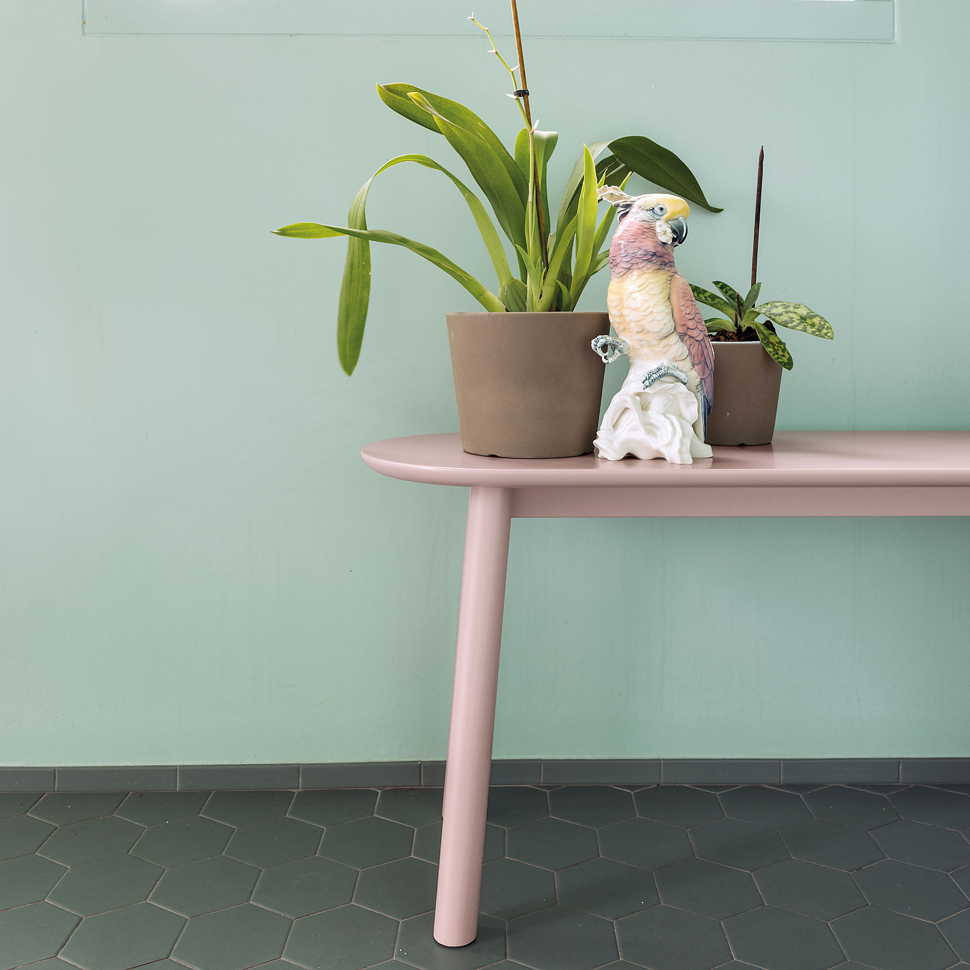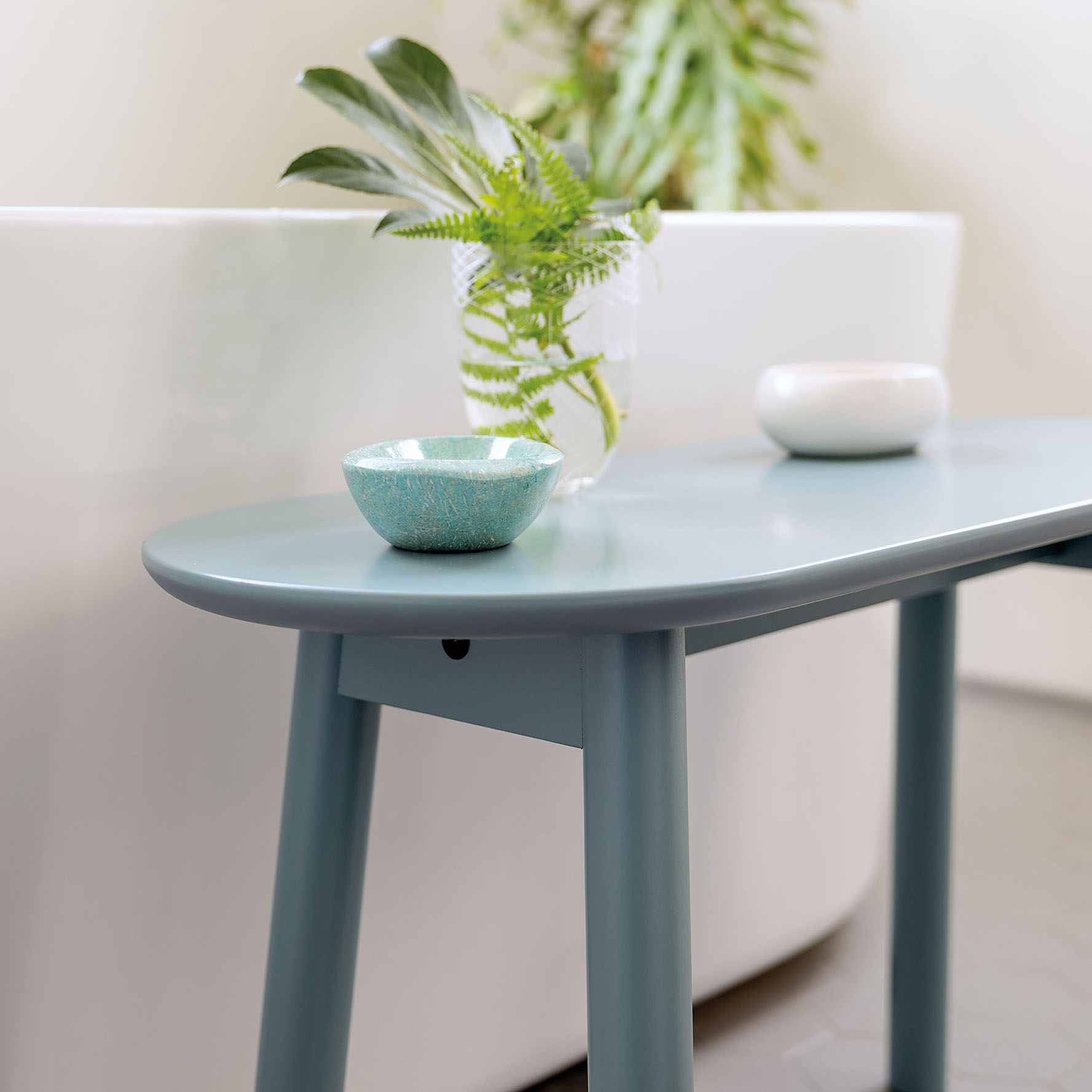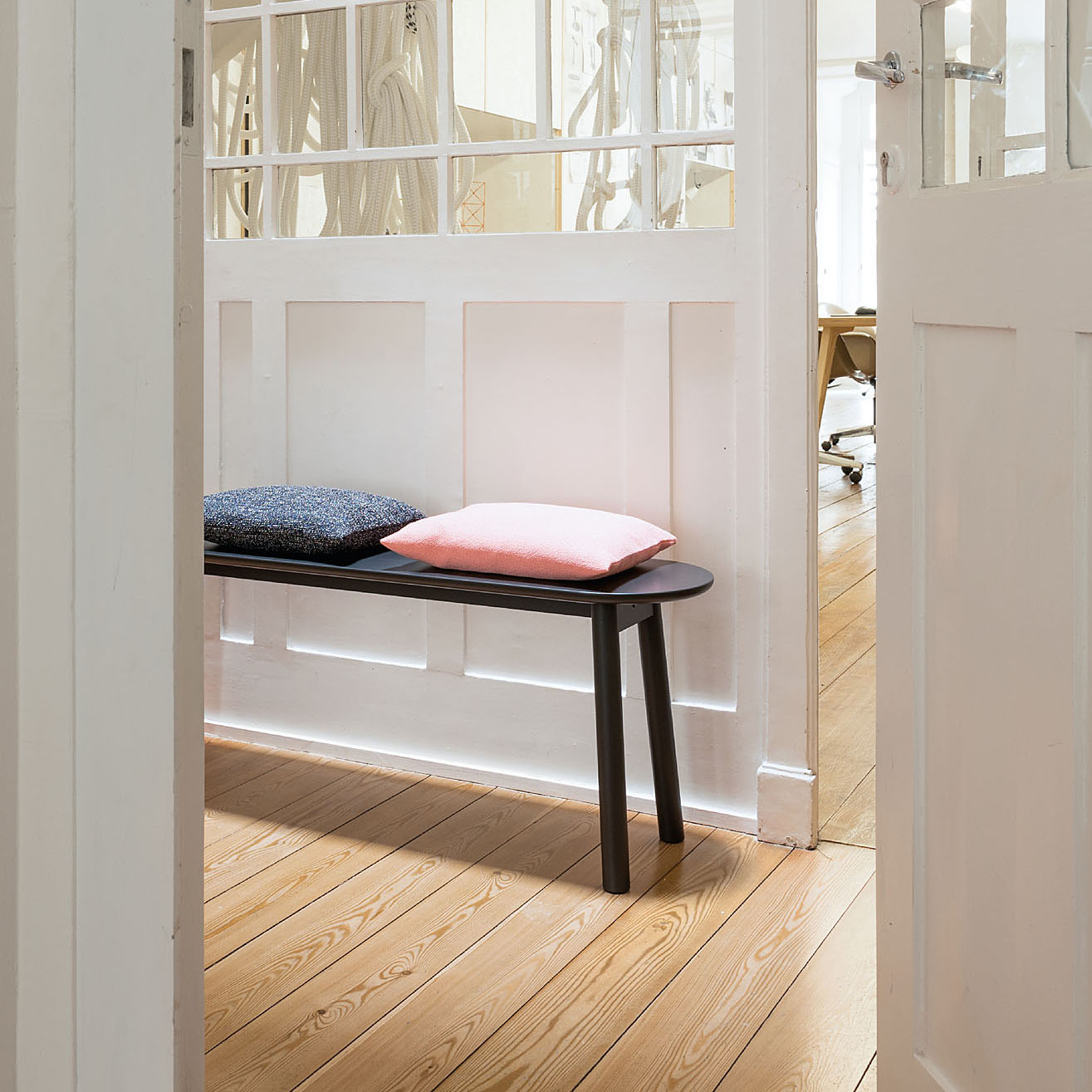 The MALA bench offers a winning combination of clear functionality and curved lines. Minimalist in form, it is compatible with any interior style. It comes in a choice of two sizes and an array of matt lacquer finishes. The frame is made of solid beech. The top can be finished with a special, resilient nano coating that makes it highly suitable for commercial settings. MALA is also available in oiled, natural walnut and bleached, matt maple. The tops and frames of both are made of solid wood. MALA is highly versatile, ideal as a storage solution or a showcase for creative arrangements, but also as a seat. A multi-tasker in any space, it is a team player and the perfect complement for the BUREAU table and console. Absolutely timeless.