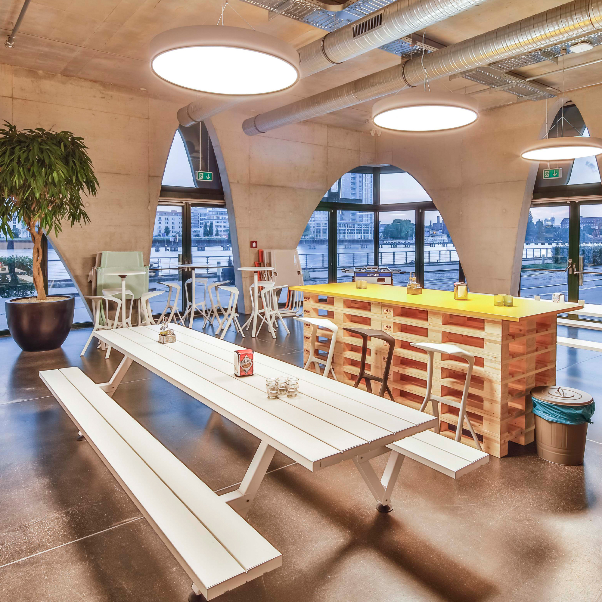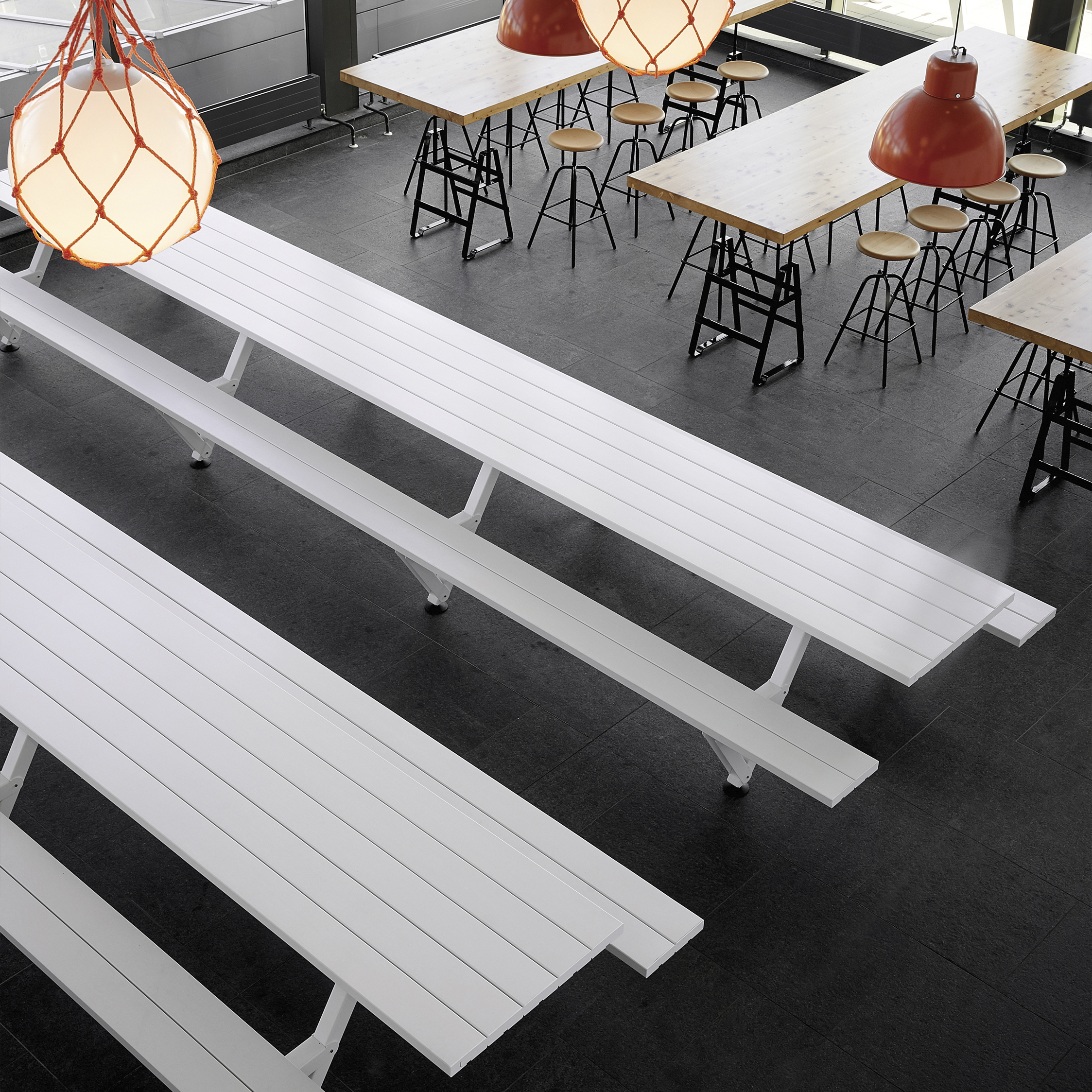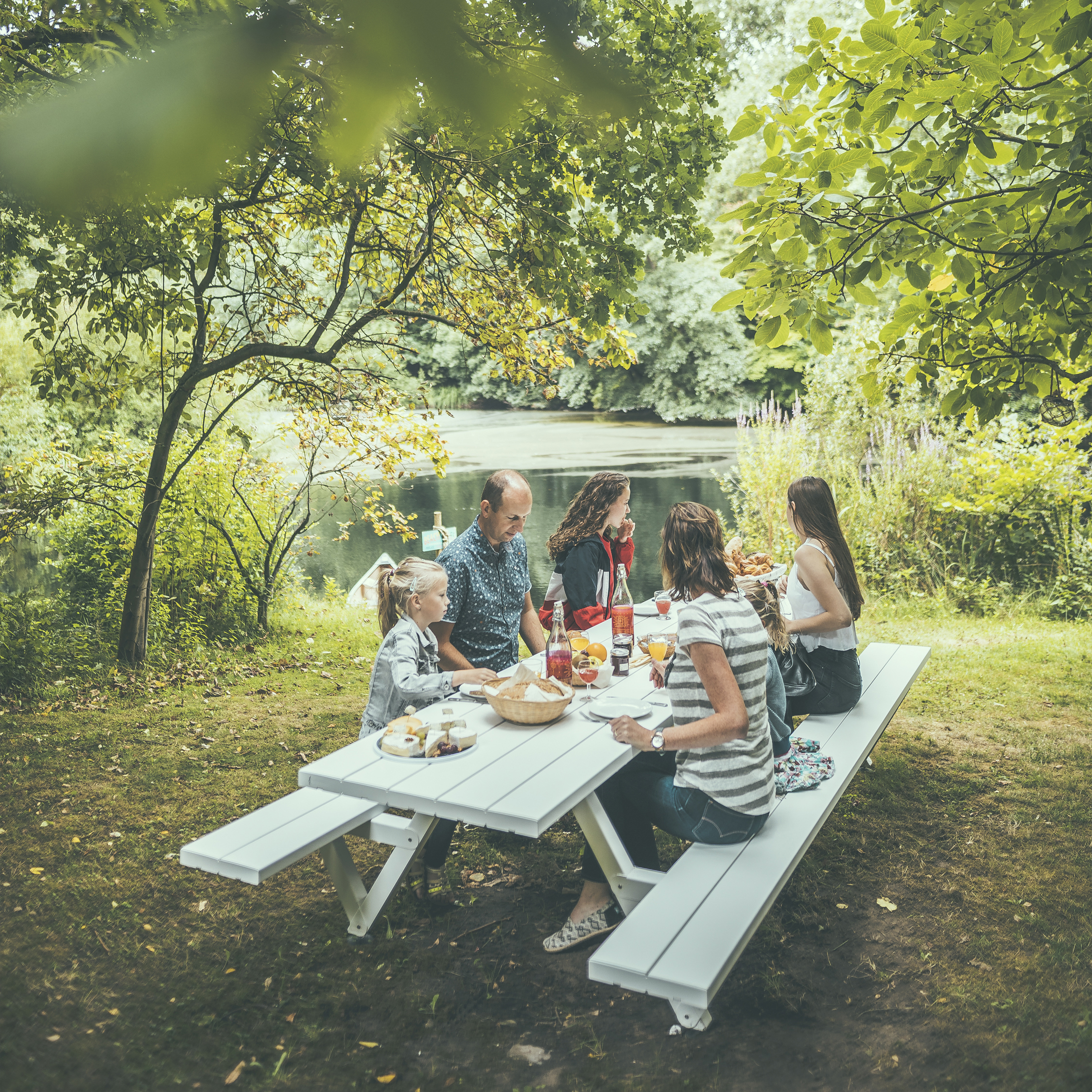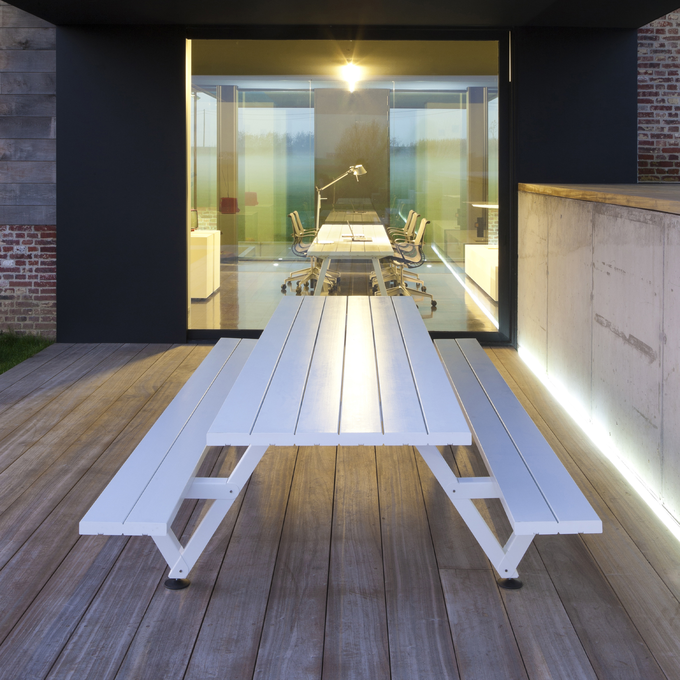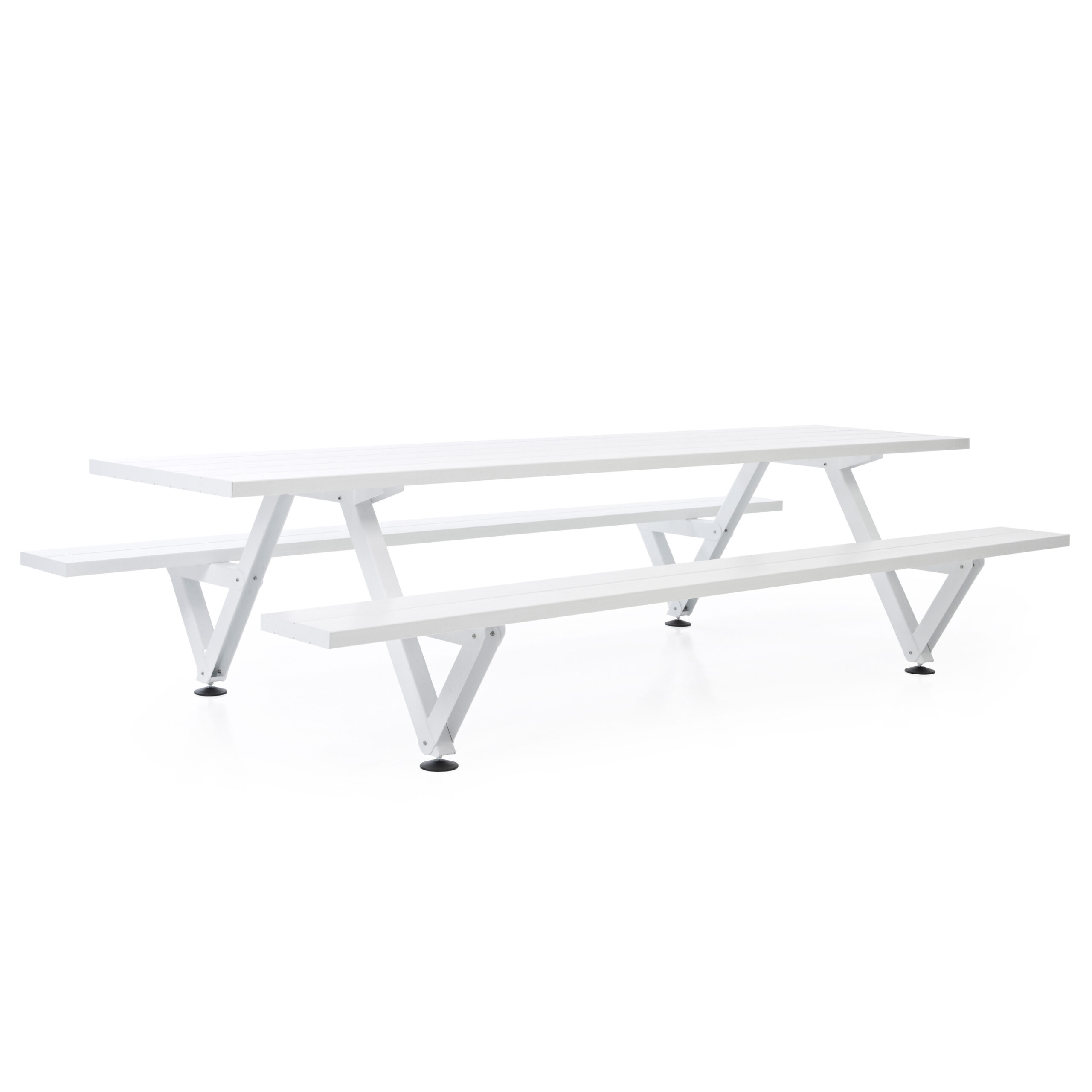 The marvel of the Marina picnic design is that the tabletop is one seamless piece, creating a calm and uninterrupted aesthetic. With benches on both sides, this piece is a perfect example of the Extremis ‘Tools for Togetherness’ philosophy, bringing up to 40 people together at standard lengths of up to 12 meters. If the length of the table exceeds 6m, special transport surcharges might be applicable.