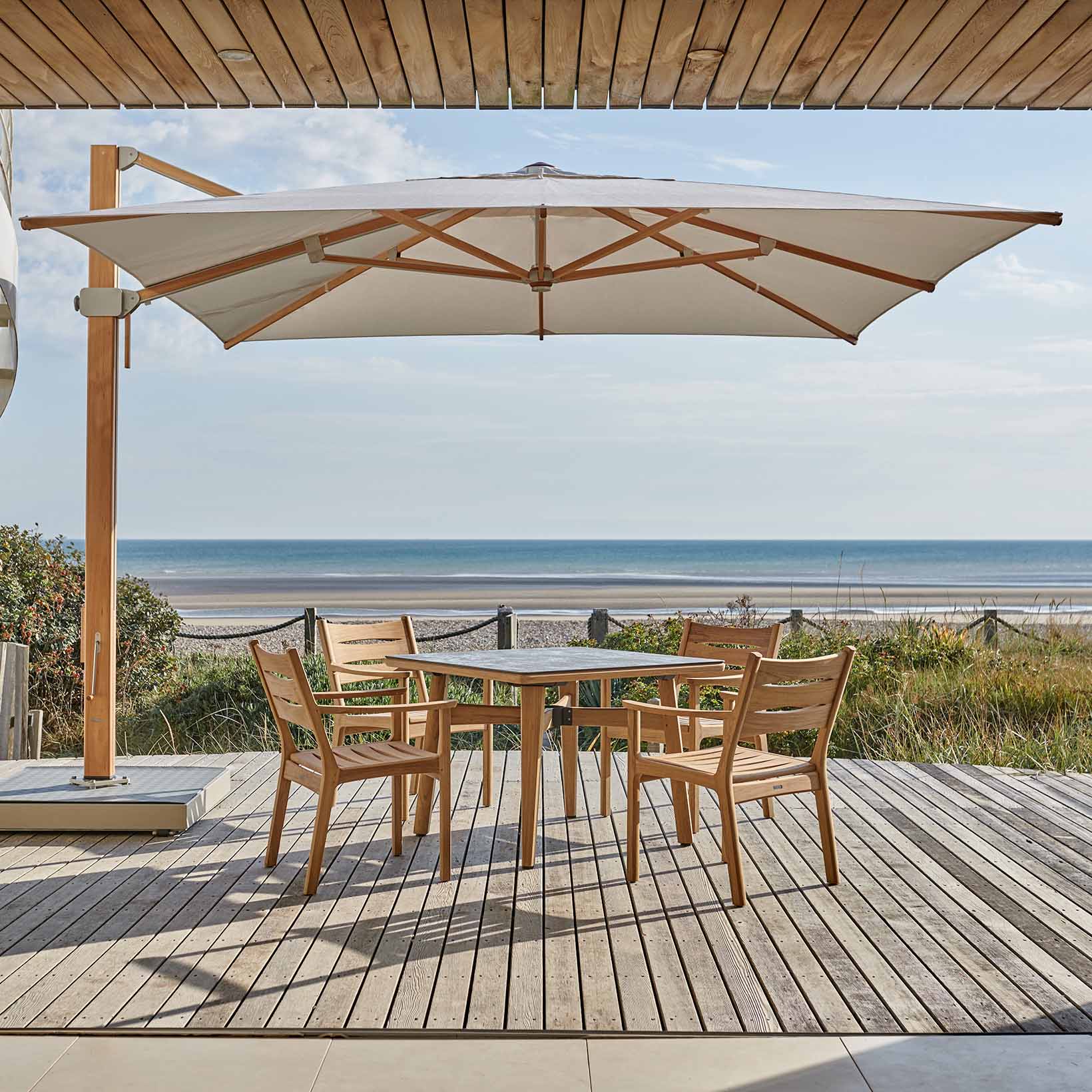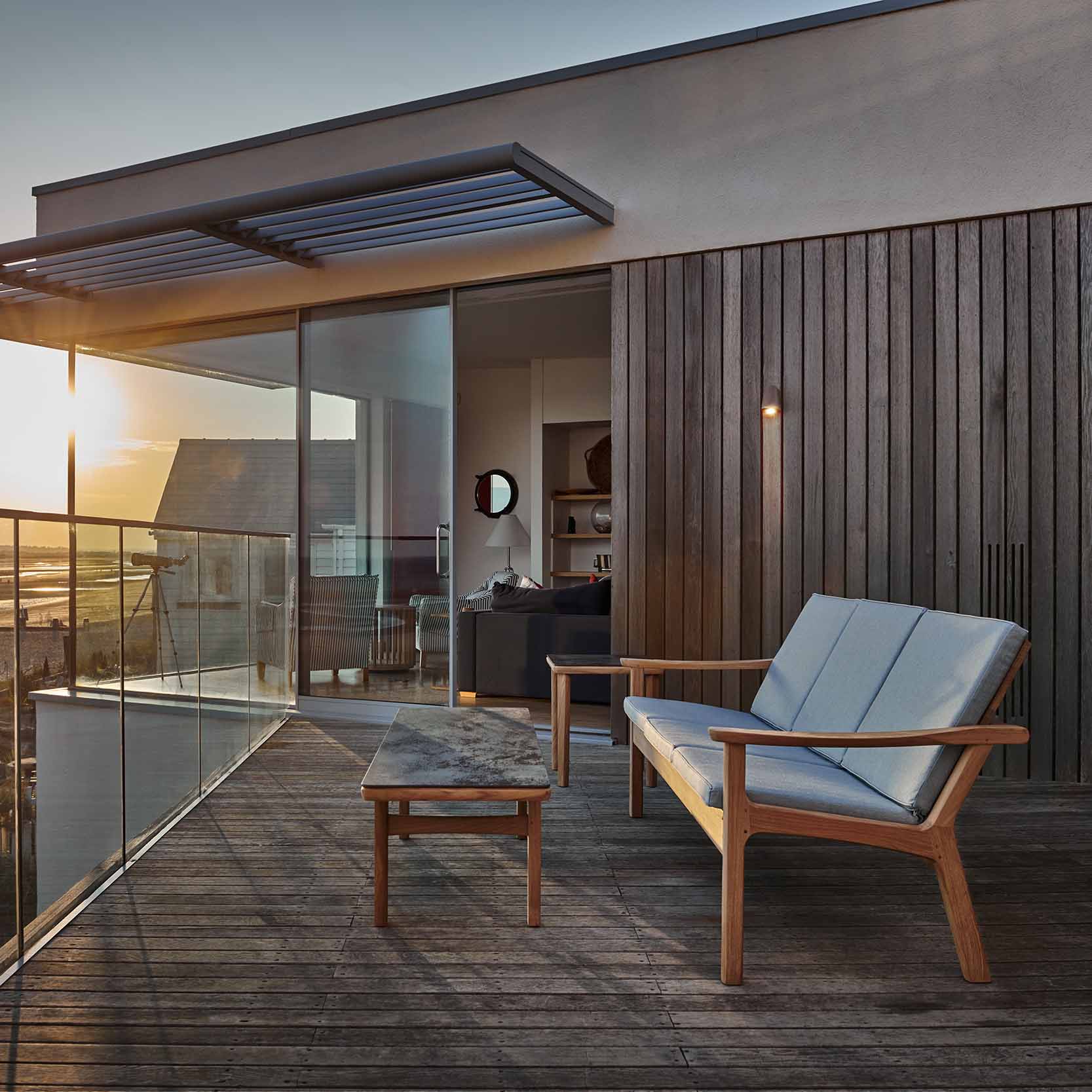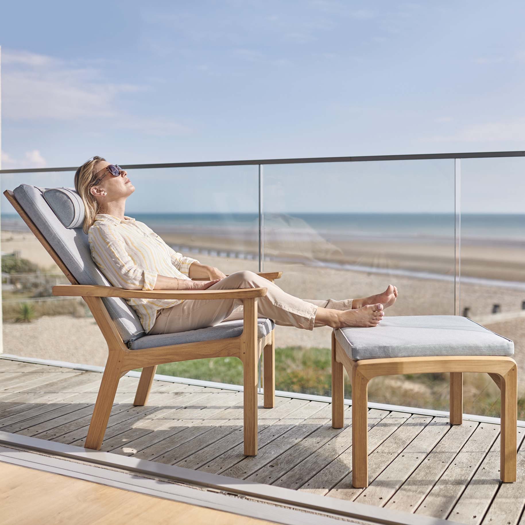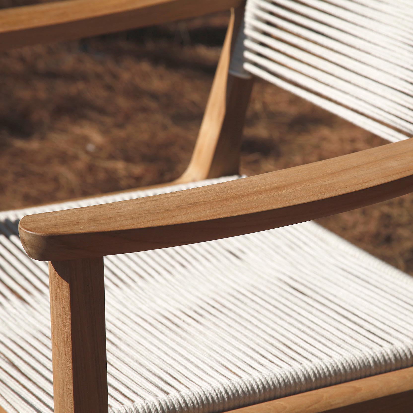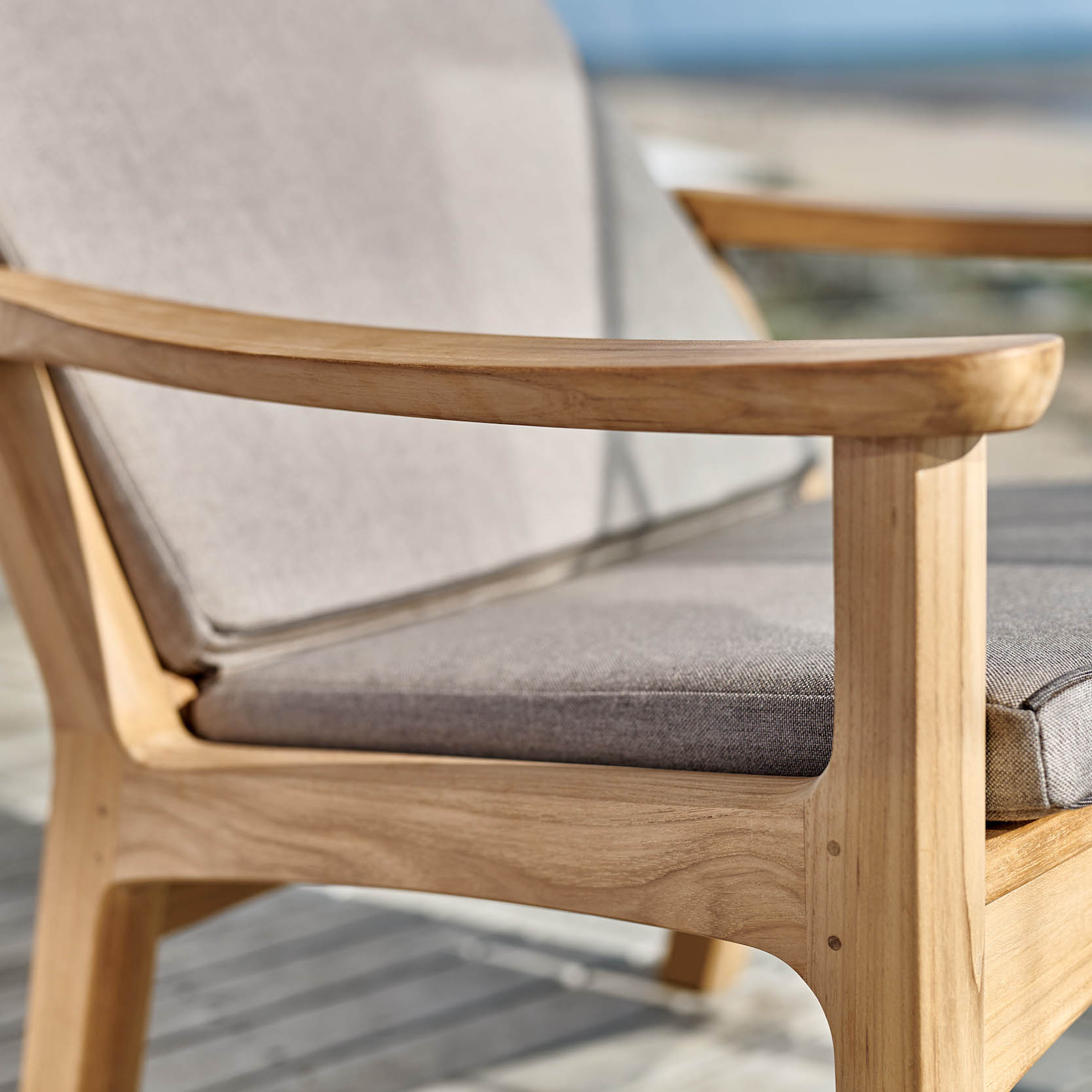 The slatted teak design is a take on the successful rope armchair from the award-winning range. Optional cushions, in a wide range of colours and made from durable, all-weather Sunbrella® fabric can be selected to further improve comfort and your own unique style.