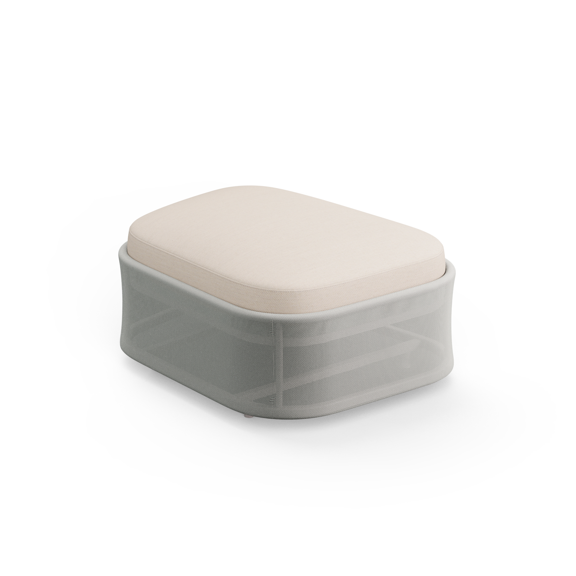 Considered as the substitute piece of the family in line with the plan of flexible use together with the single armchair and three-seat sofa models with large seatings, the pouf is designed in a way that it can also be used as a side table.