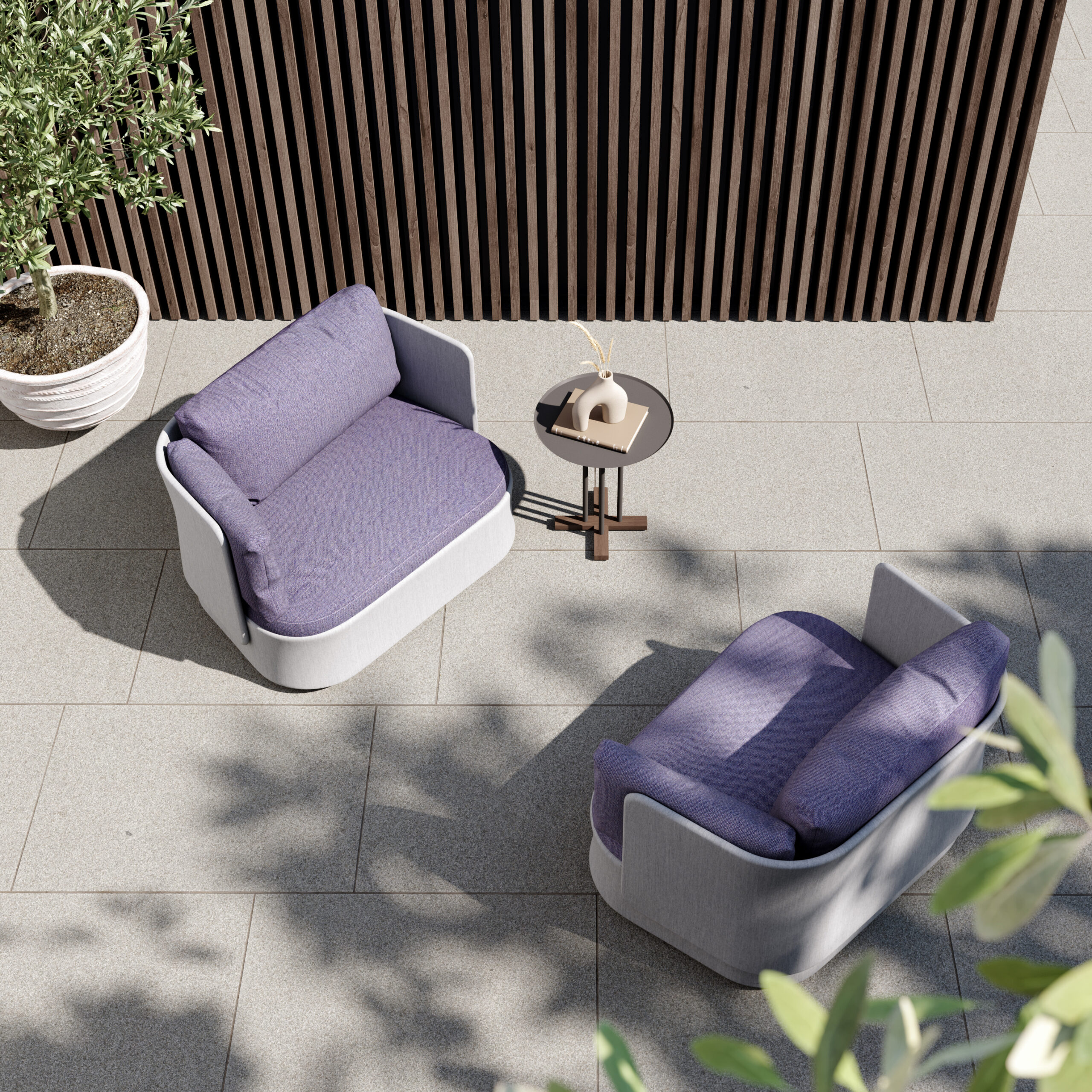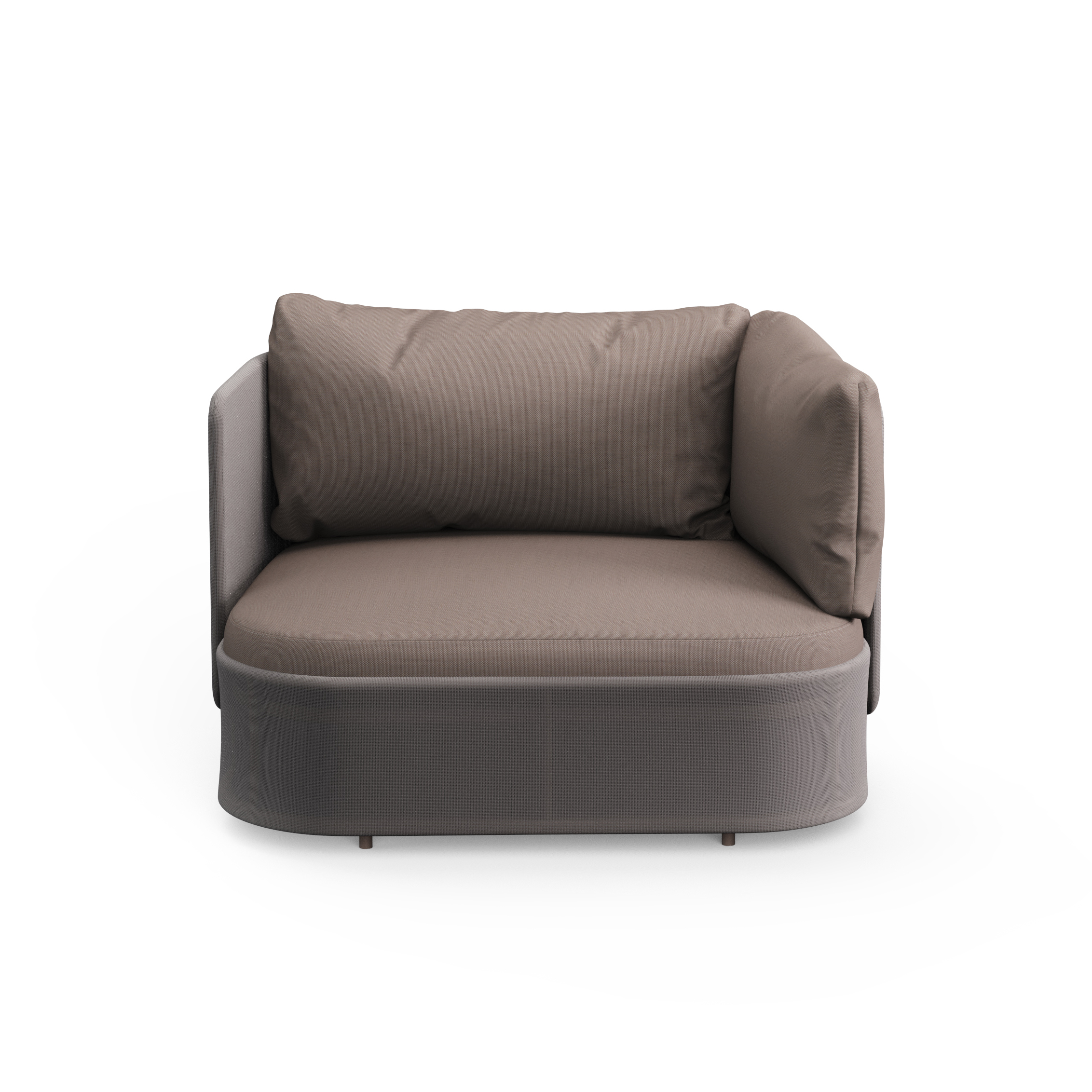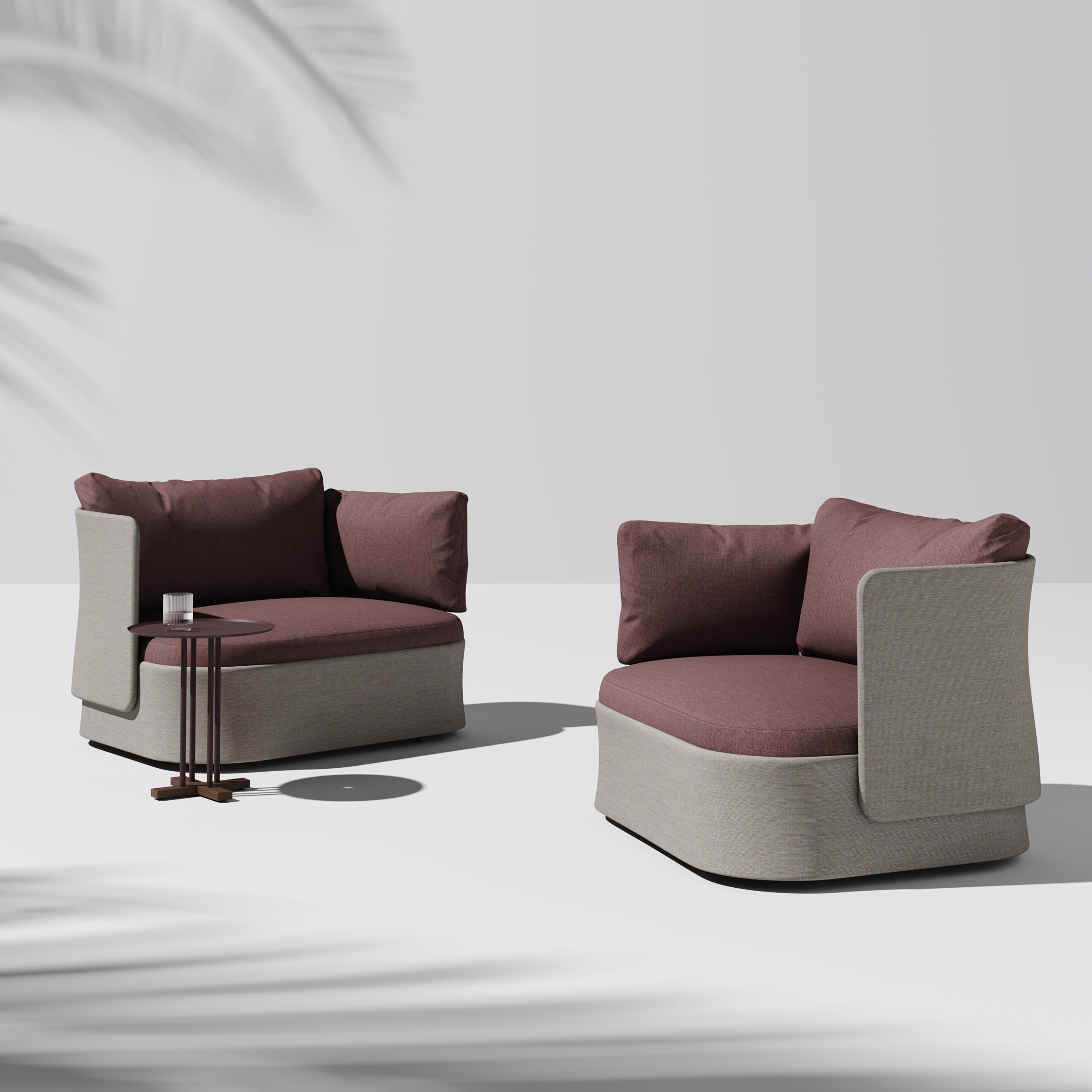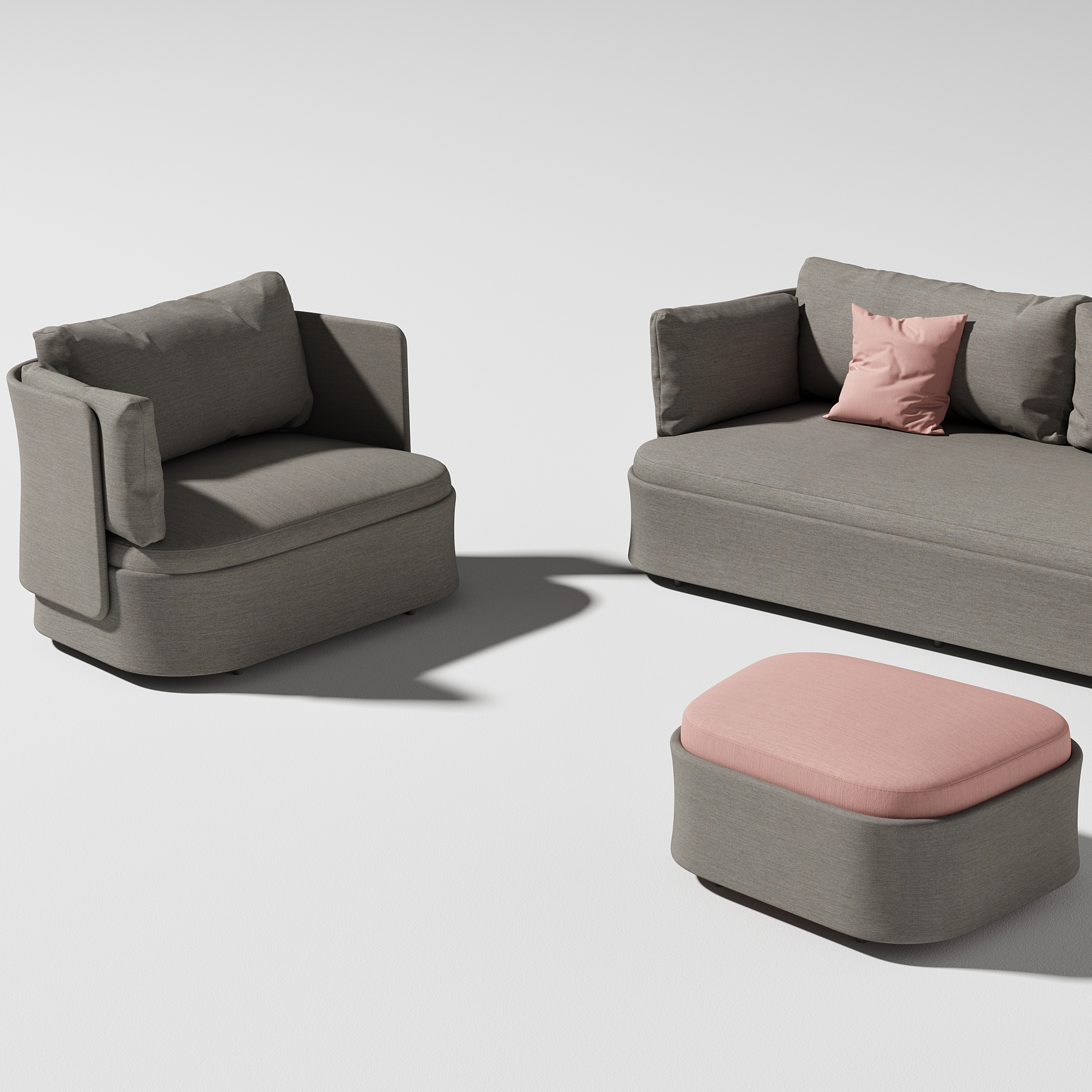 Lightweight and easy to move thanks to its aluminum inner frame structure behind its monumental look, the GRAPA family facilitates a stylish world. Combining simplicity and comfort in a refined aesthetic style, GRAPA provides a comfortable seating by rendering the vertical back rotations framing the asymmetric form suitable to ergonomics with the cylindrical-formed secret inner and outer cushions.