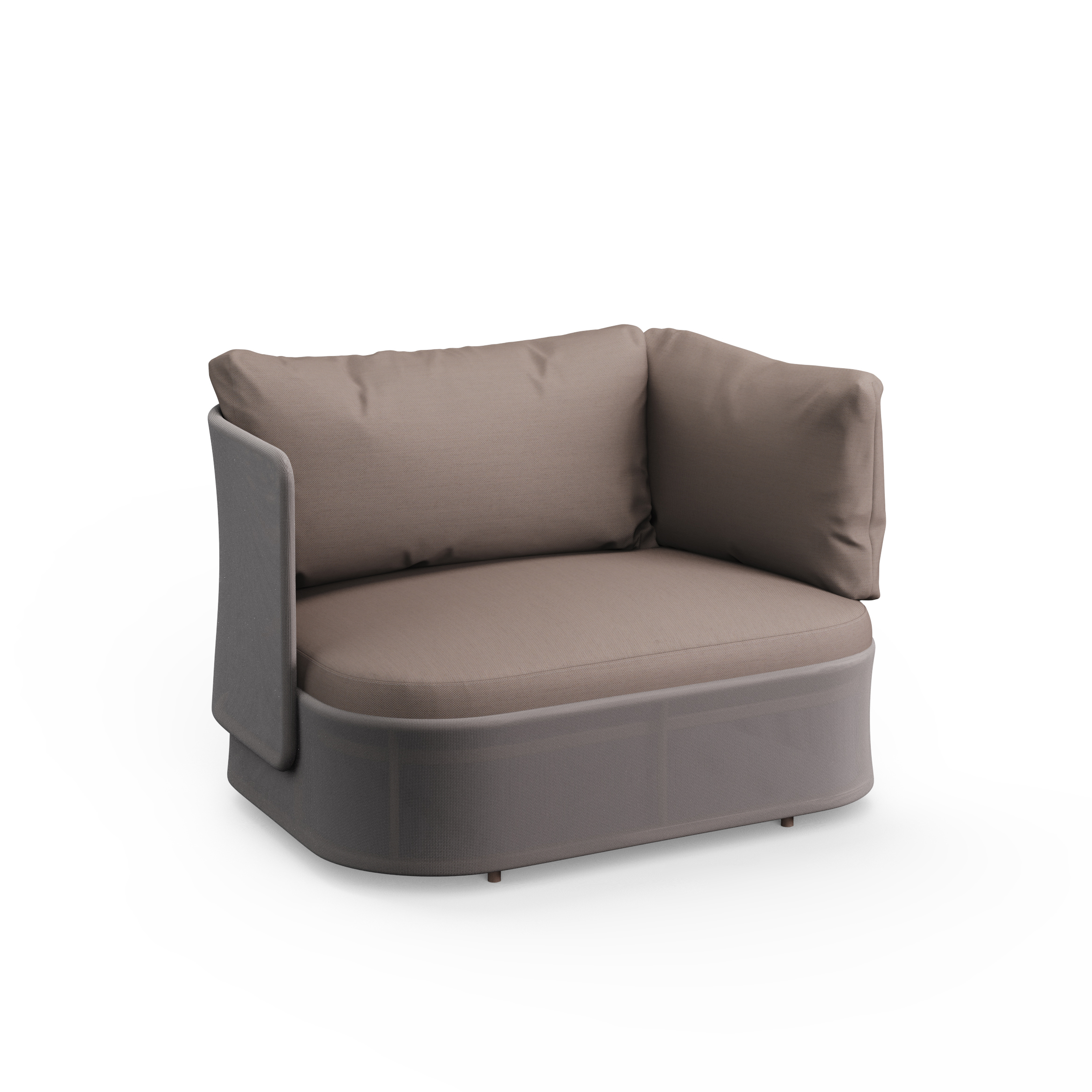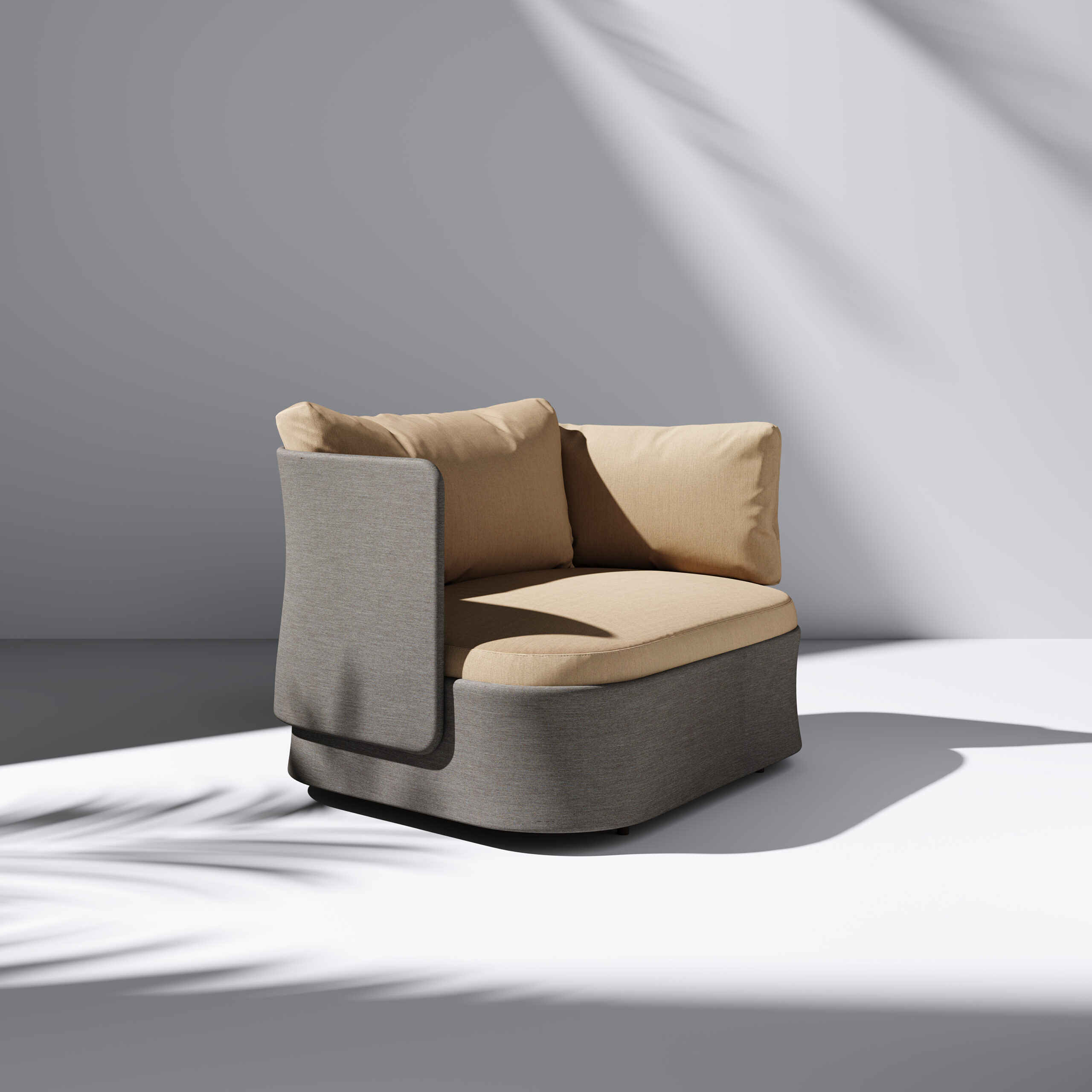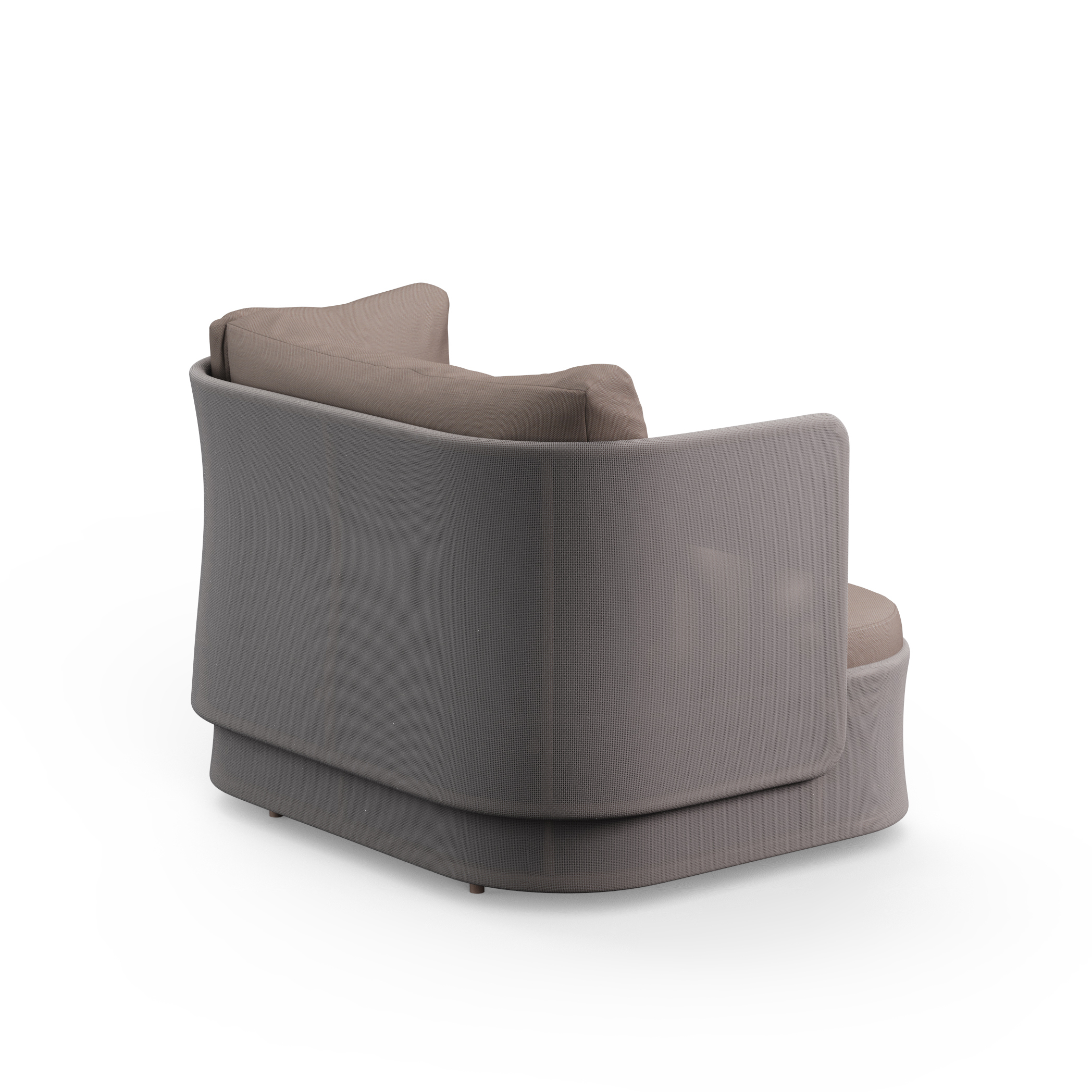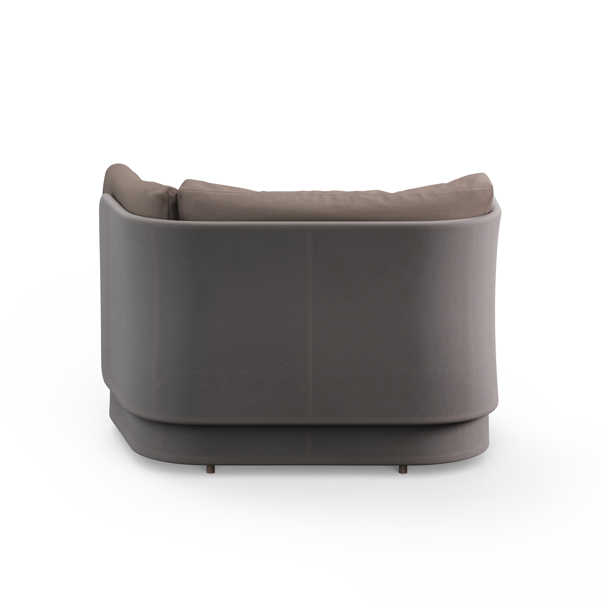 Lightweight and easy to move thanks to its aluminum inner frame structure behind its monumental look, the GRAPA family facilitates a stylish world. Combining simplicity and comfort in a refined aesthetic style, GRAPA provides a comfortable seating by rendering the vertical back rotations framing the asymmetric form suitable to ergonomics with the cylindrical-formed secret inner and outer cushions.
