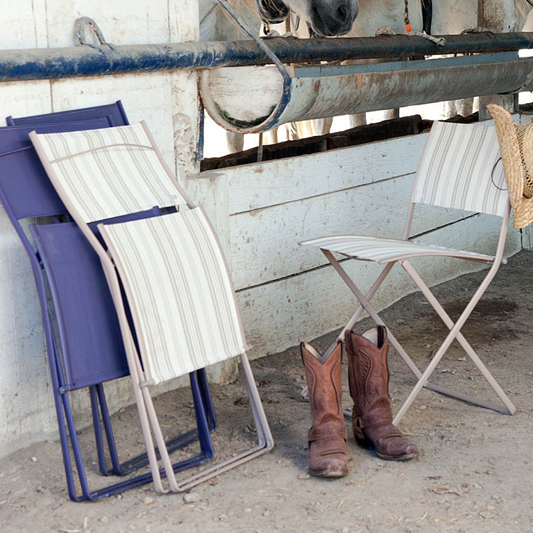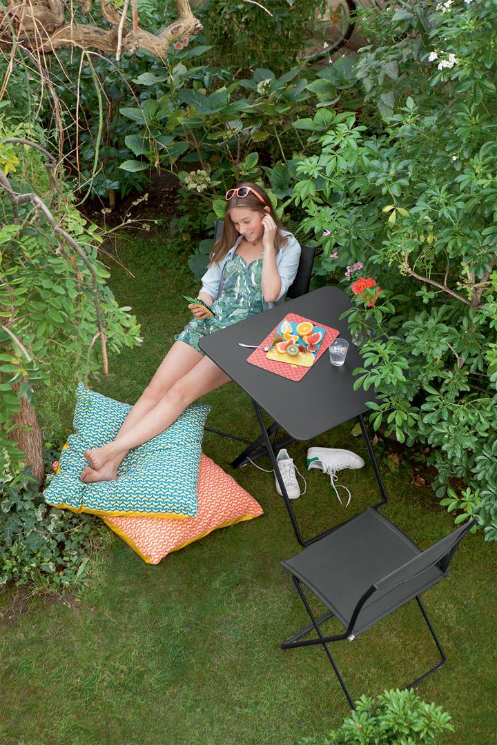 When Pascal Mourgue designed Plein Air, he had in mind furniture that would be conducive to well-being and perfect for enjoying the fresh air… whether in the town or the country… on the patio or in the garden. The combination of fabric and a tubular steel frame, the functionality of folding furniture, and the fluidity and modernity of clean, crisp lines – these are all characteristics that make Plein Air a paragon of simplicity, lightness and mobility that is completely compatible with new lifestyles!