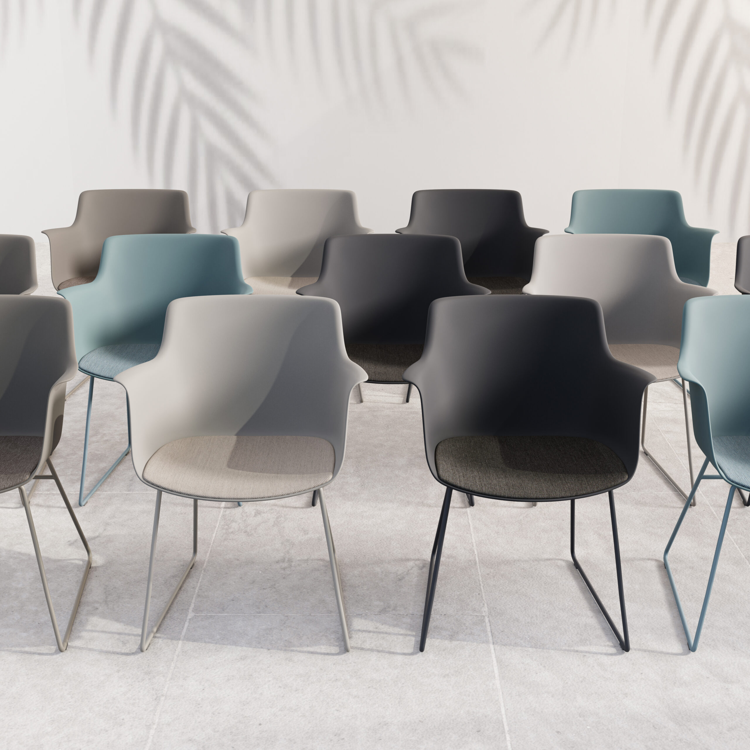 REGULA GO offers a customized and free use with its seven different leg alternatives, with completely upholstered or only upholstered seating options and its colour alternatives.