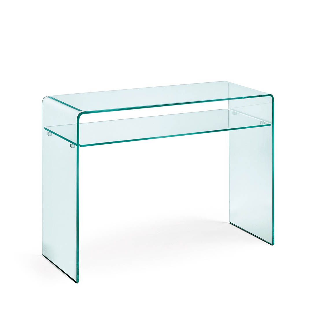 Console in 12 mm-thick curved glass. Also available with 10 mm-thick glass shelf. Also available in the full custom version.