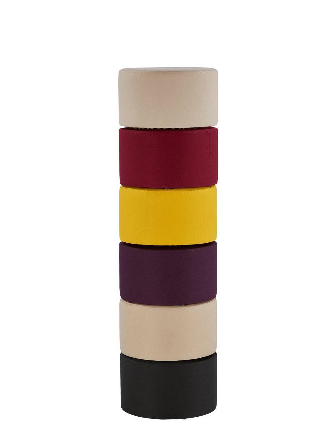40 cm height allows for modular use. Roller, which is easy to stack, helps save space. Top part and bottom part are usually ordered in different colors, this duel color preference makes Roll a fun design. Solid wood structure of this stool padded on the top with commercial grade HR foam.