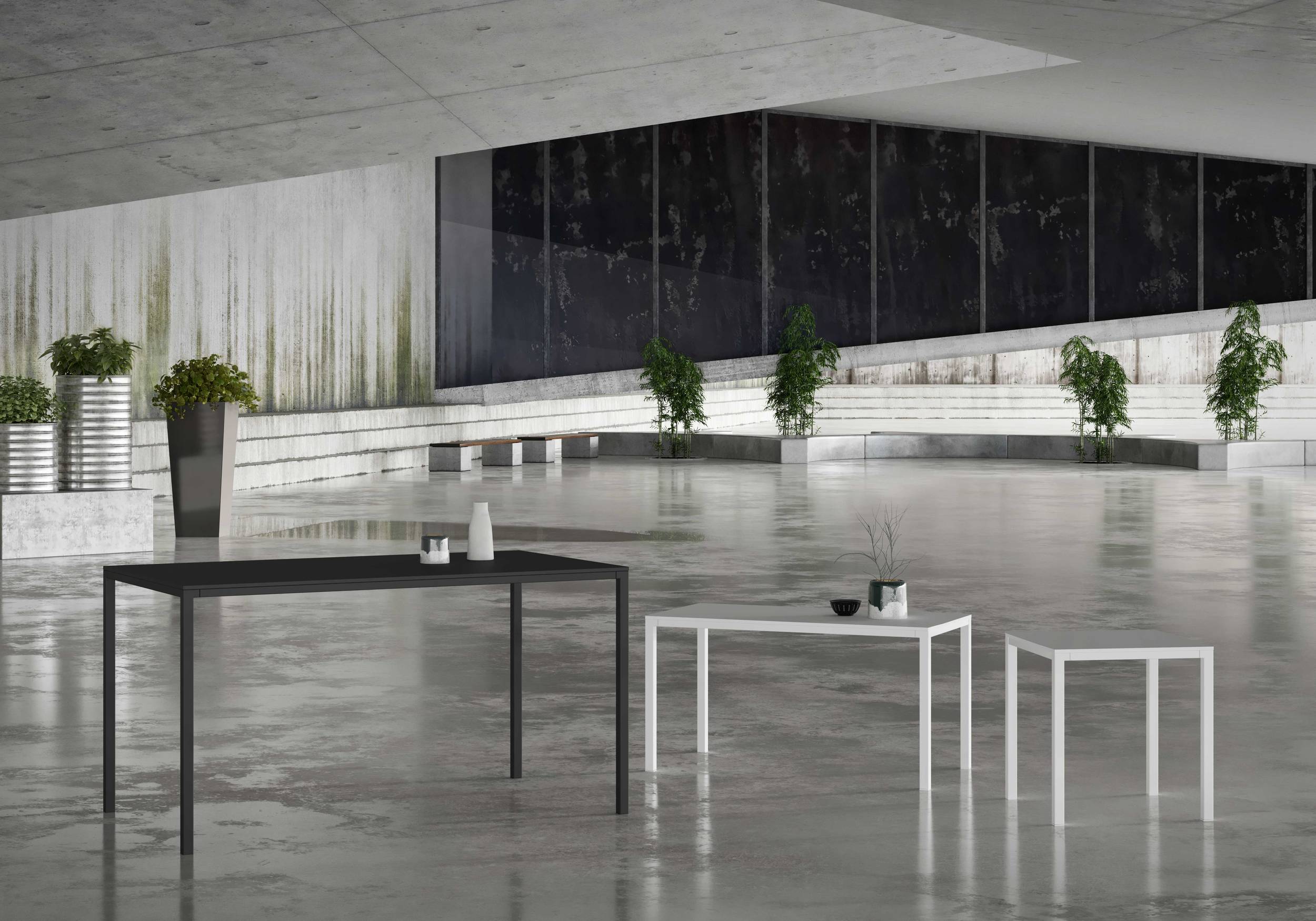 There lightness, elegance and simplicity come together. Clean lines in its slim frame and top materials and harmonious shapes are expressed in a sharming design. Suitable for indoor and outdoor.