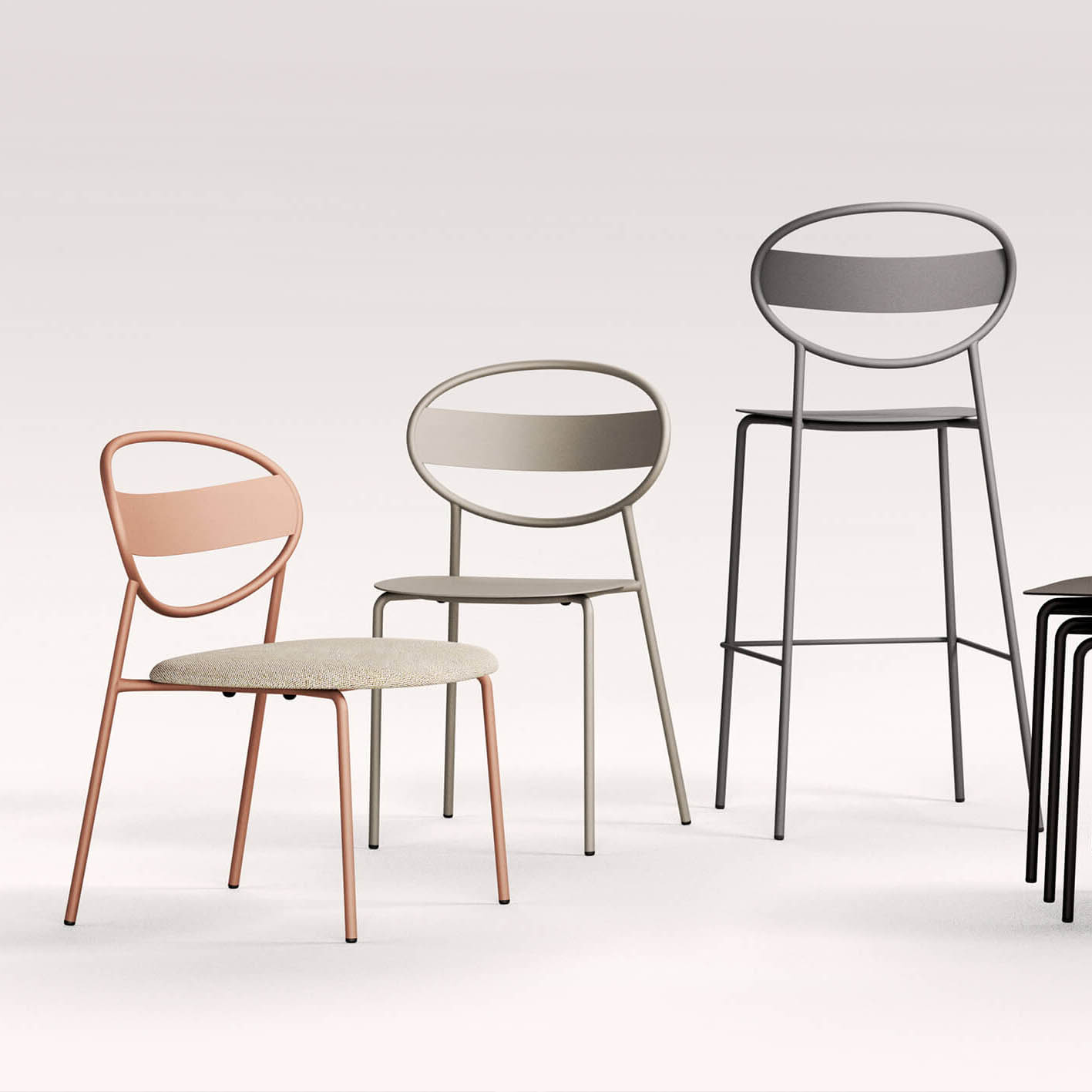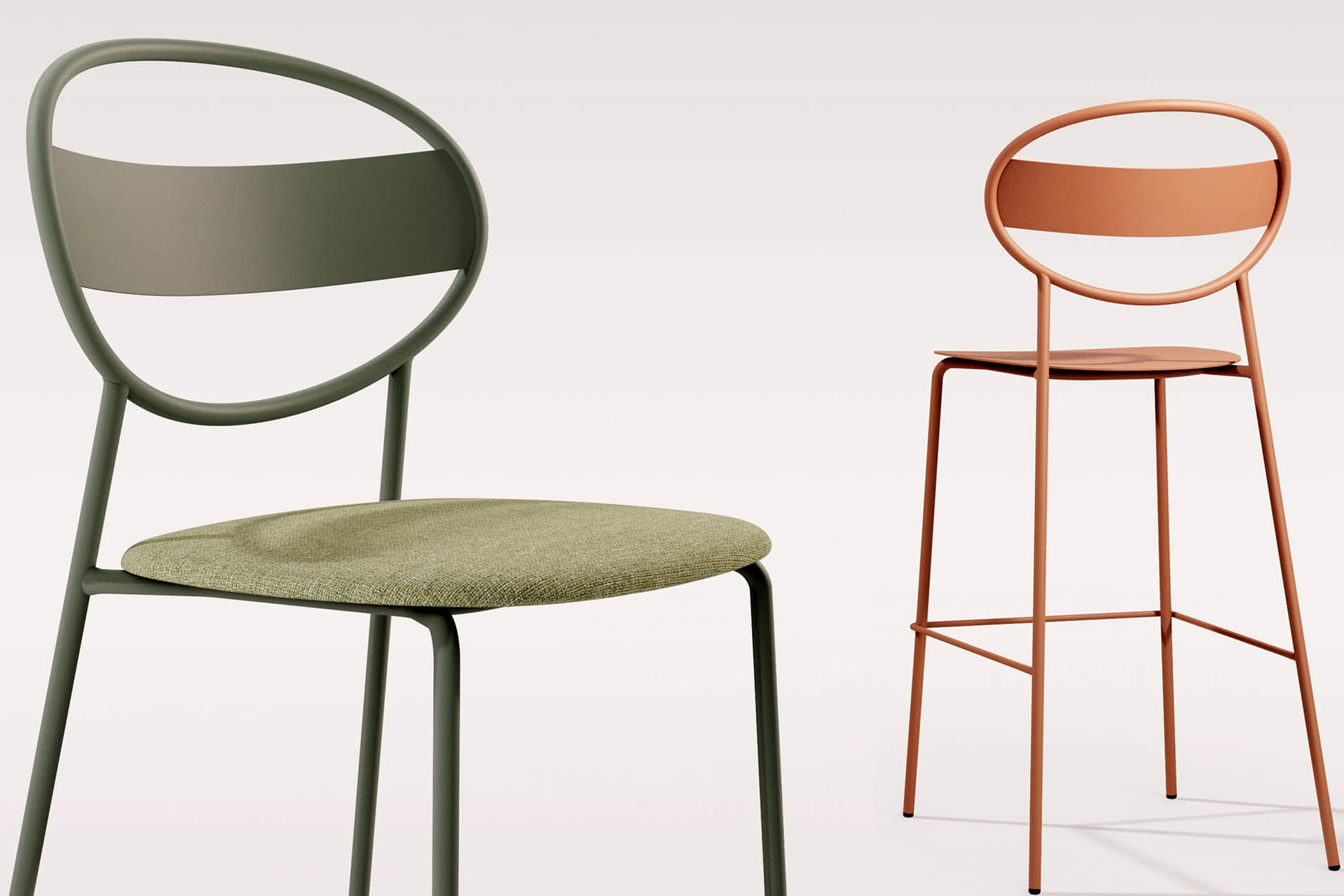 chair, bar chair- which are both suitable for indoor and outdoor spaces, the series makes room for extraordinary choices with different combinations of striking colours on demand, instead of