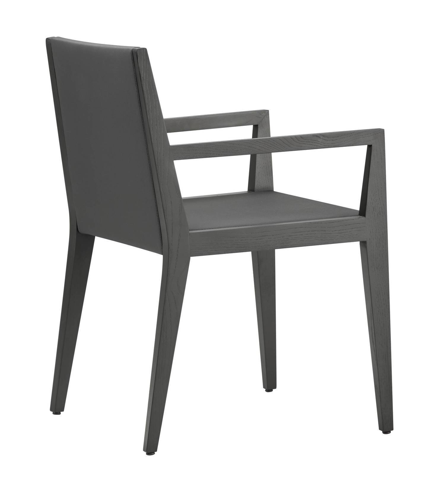 It may be used in high concept restaurant and cafes. Around any dining tables in modern but warmly designed dining rooms. Or in design-oriented office break-out rooms. There are with or without arm versions available. Wood part can be designed in desired color wood stain.