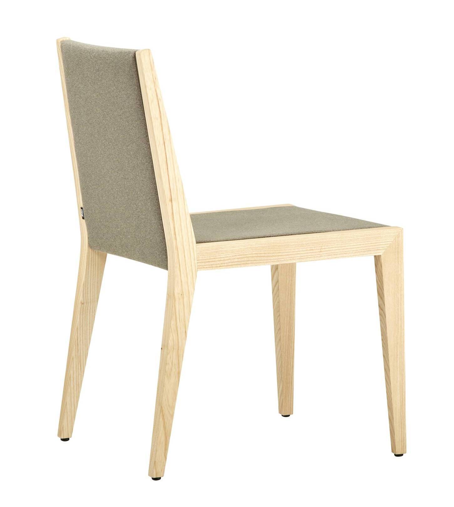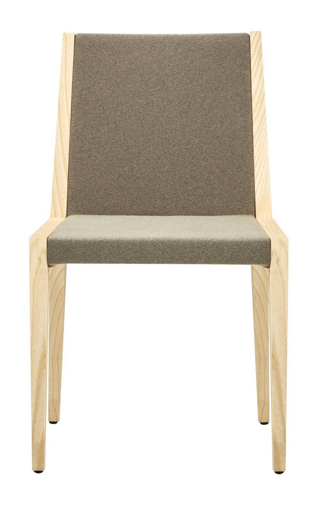 For the wood part, solid beech or ash is used by standard unless different wood specified. It has very unique manufacturing method especially on the edges where the wood frame and upholstered part meet. Upholstered backrest and seat parts inserted into channel opened on the wood frame. This technique ensures perfect seamless upholstery work.