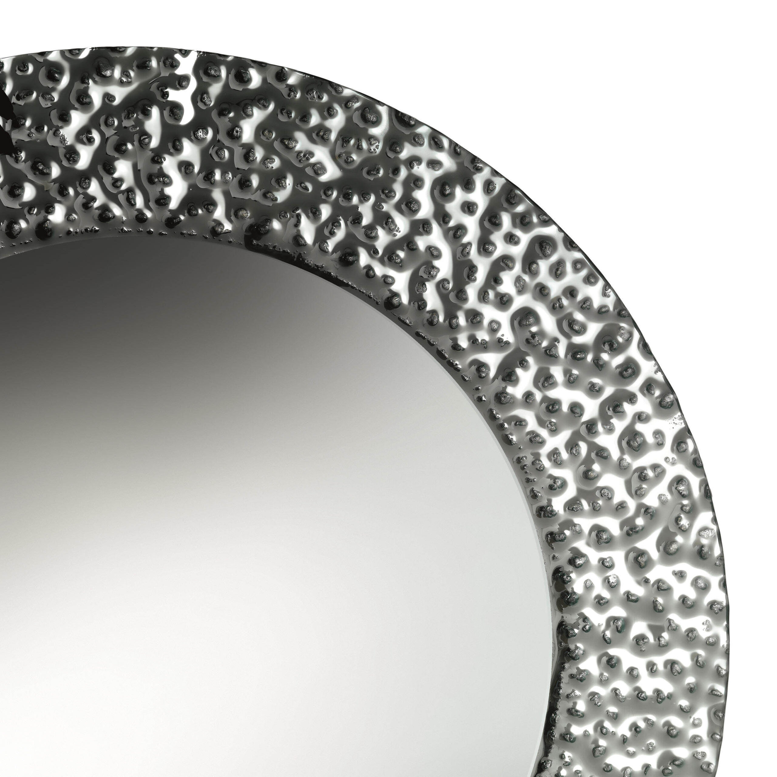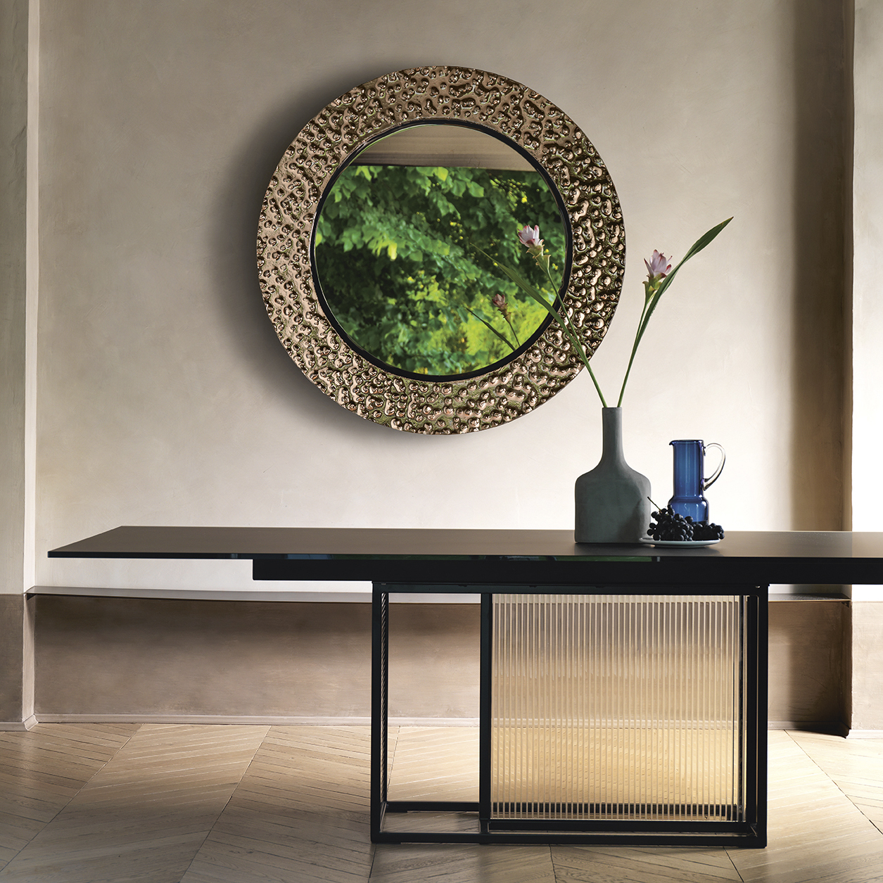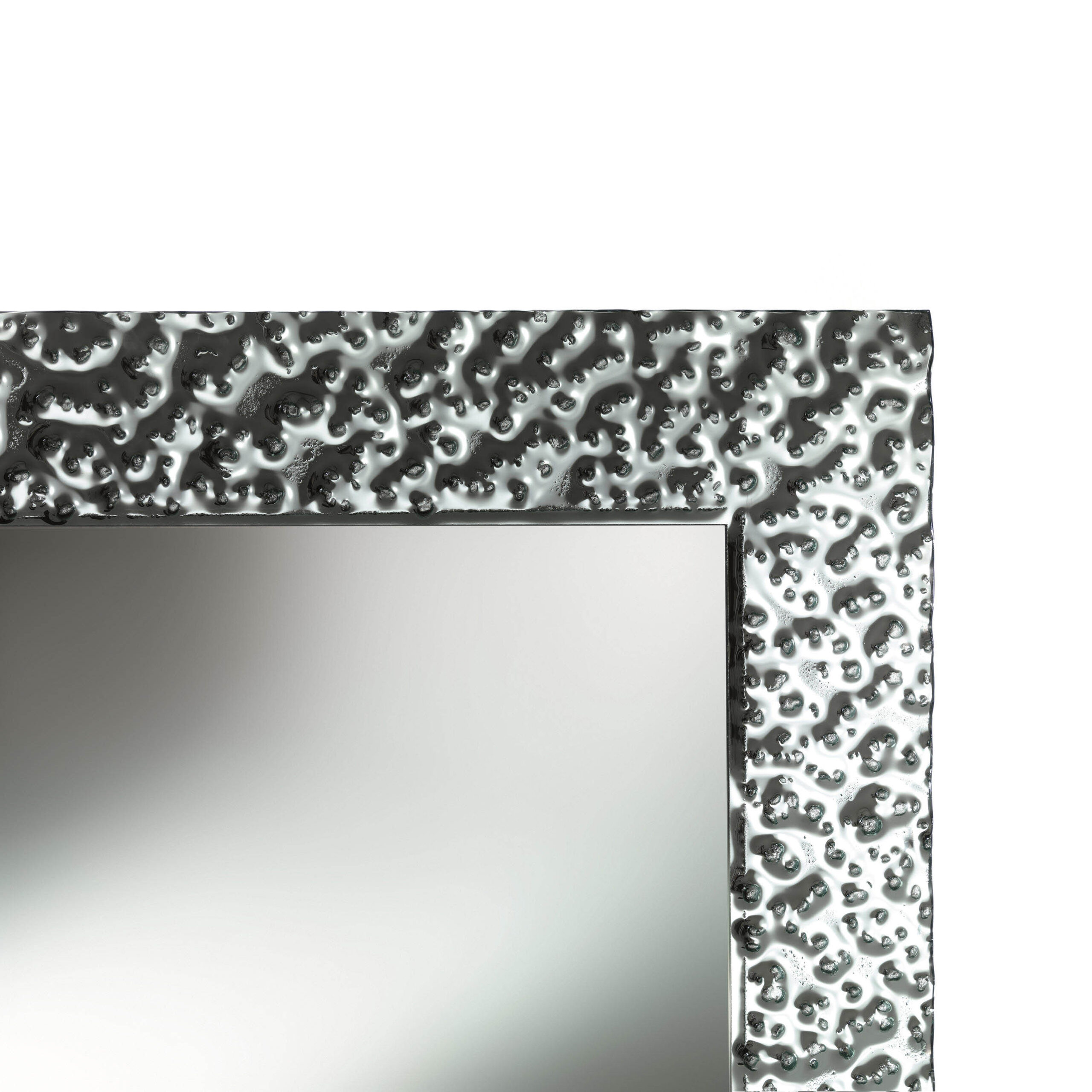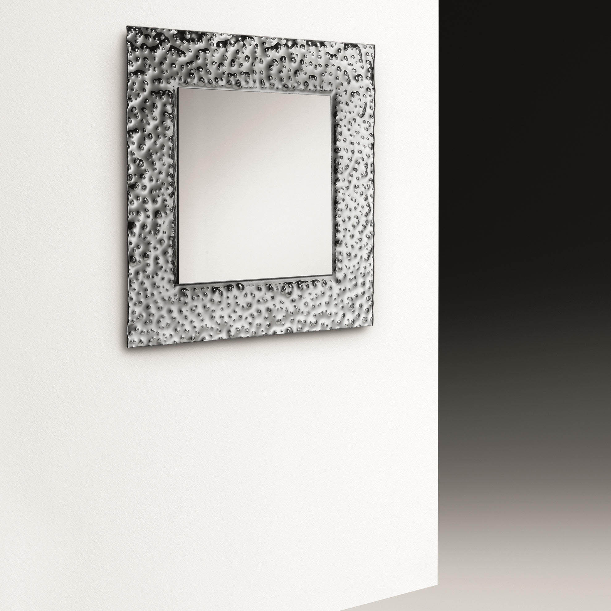 Collection of mirrors in 8 mm-thick high-temperature fused glass with back-silvered. Relief ornamentation on frame, flat mirror 5 mm-thick, painted metal rear frame. It can be hung horizontally or vertically.