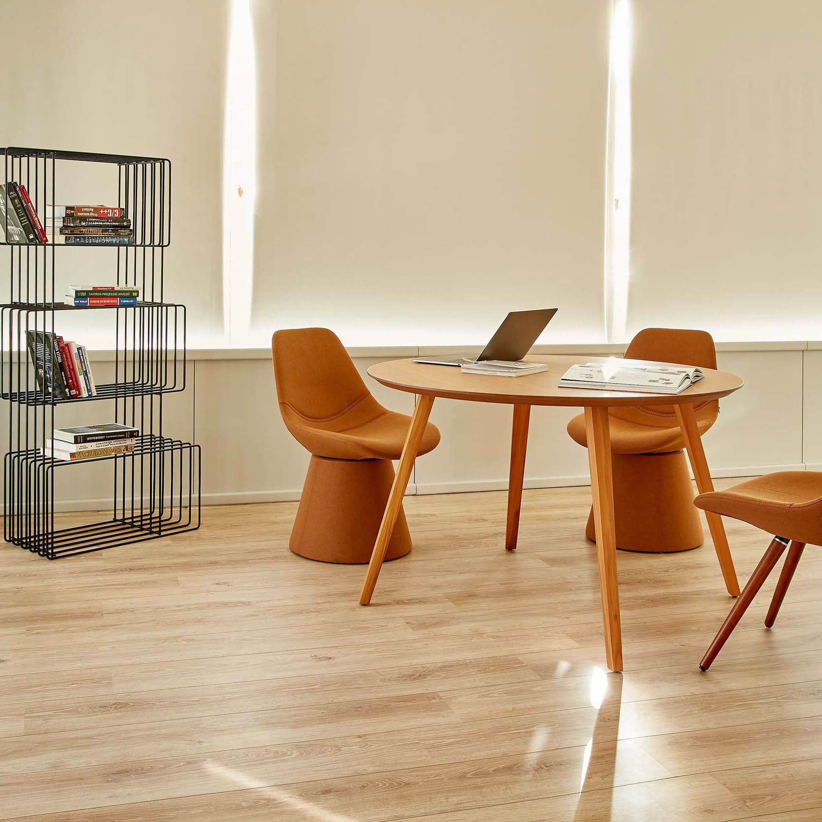 With different top options and different legs you can find coffee table, end table, side table for any entertainment area. While offering variety of materials and surfaces, with wood leg options, table WOO provides any space with innovative combinations and style.