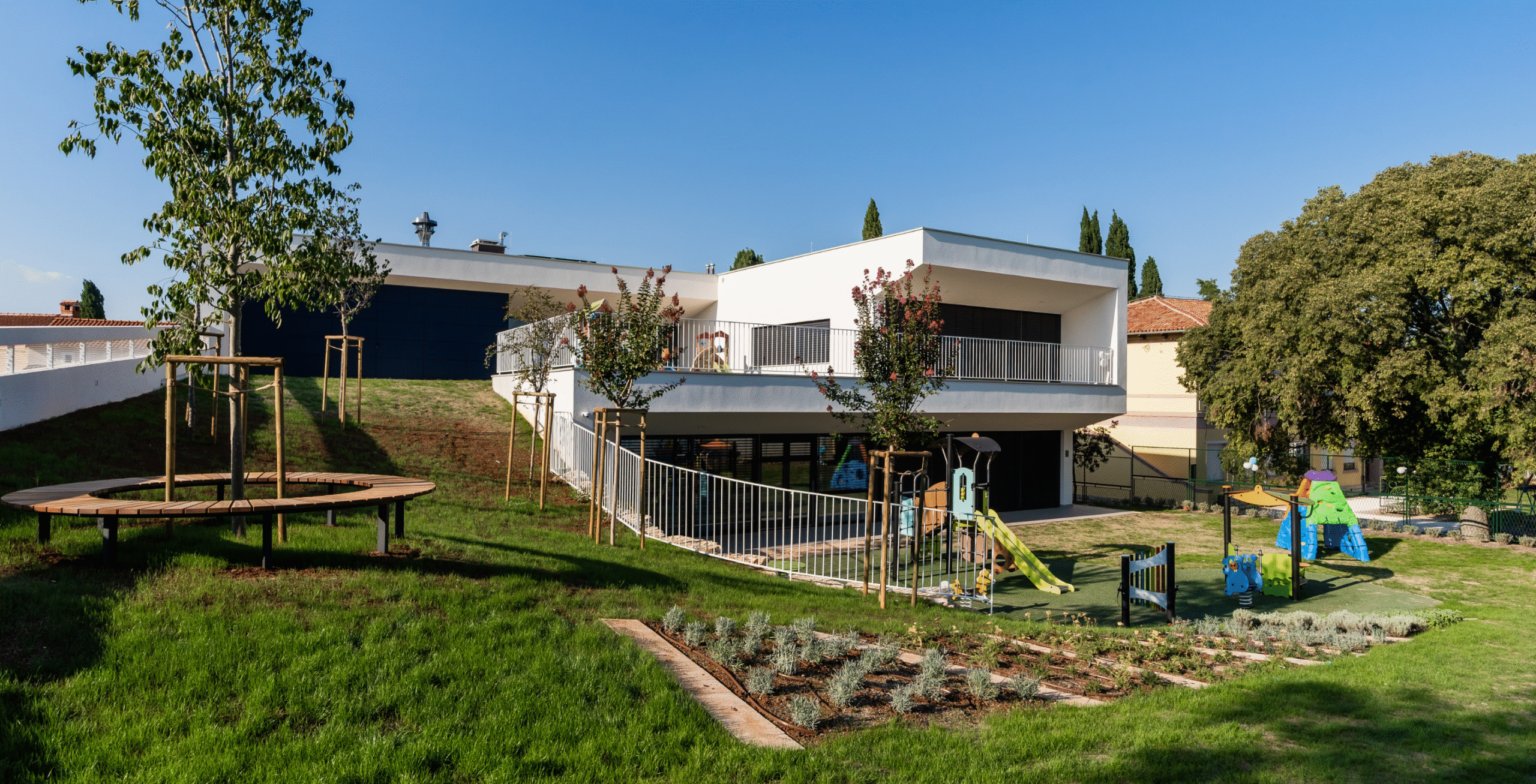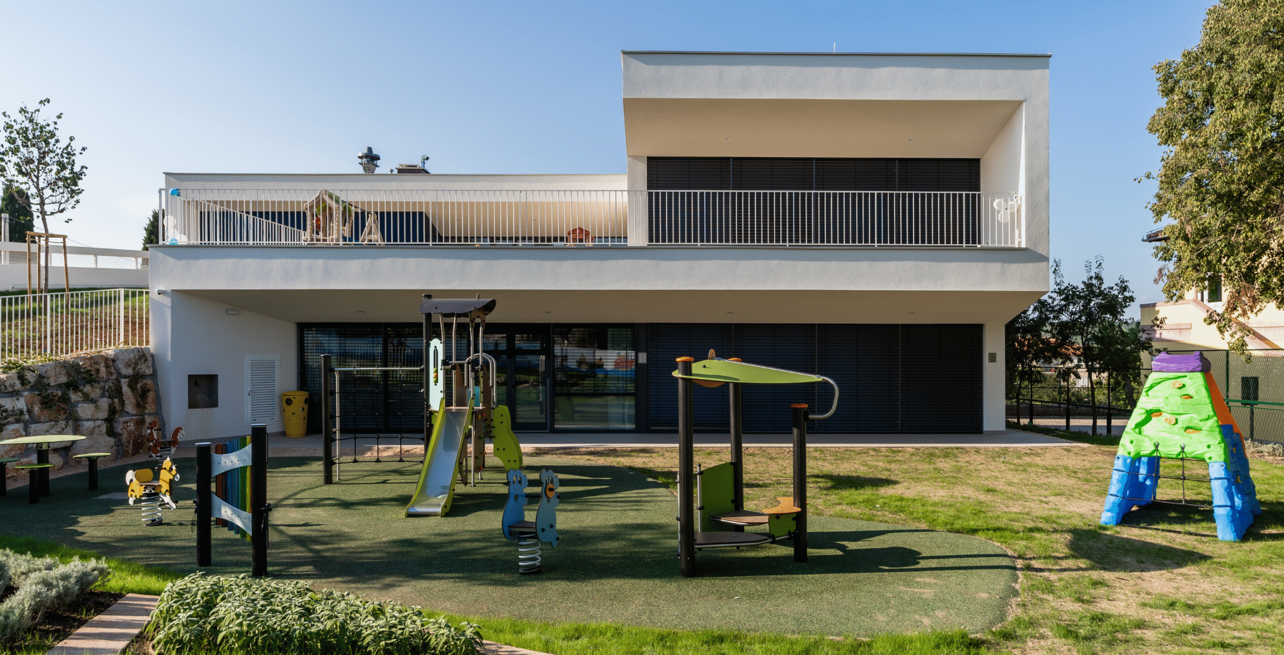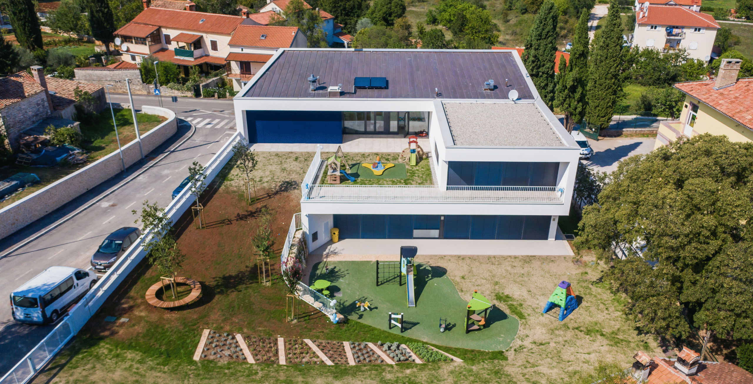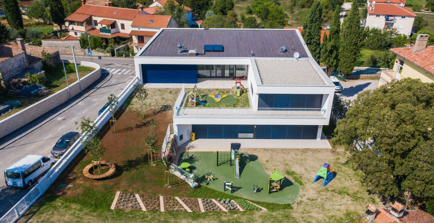 Glavni izazov projekta predstavljala je relativno mala površina čestice i loša orjentacija, zadane Urbanističkim planom uređenja. Te dvije premise bile su od presudnog utjrecaja na koncept projekta i zbog toga je “pala” odluka da se projektira zgrada u dvije etaže. U prizemlju se tako smještaju dvije vrtićke jedinice, višenamjenska dvorana, kuhinja, strojarnica i prateći sadržaji, a na katu se smješta jedna jaslička jedinica, uprava i prateći sadržaji. Vertikalna komunikacija do jasličke grupe na katu olakšana je dizalom.