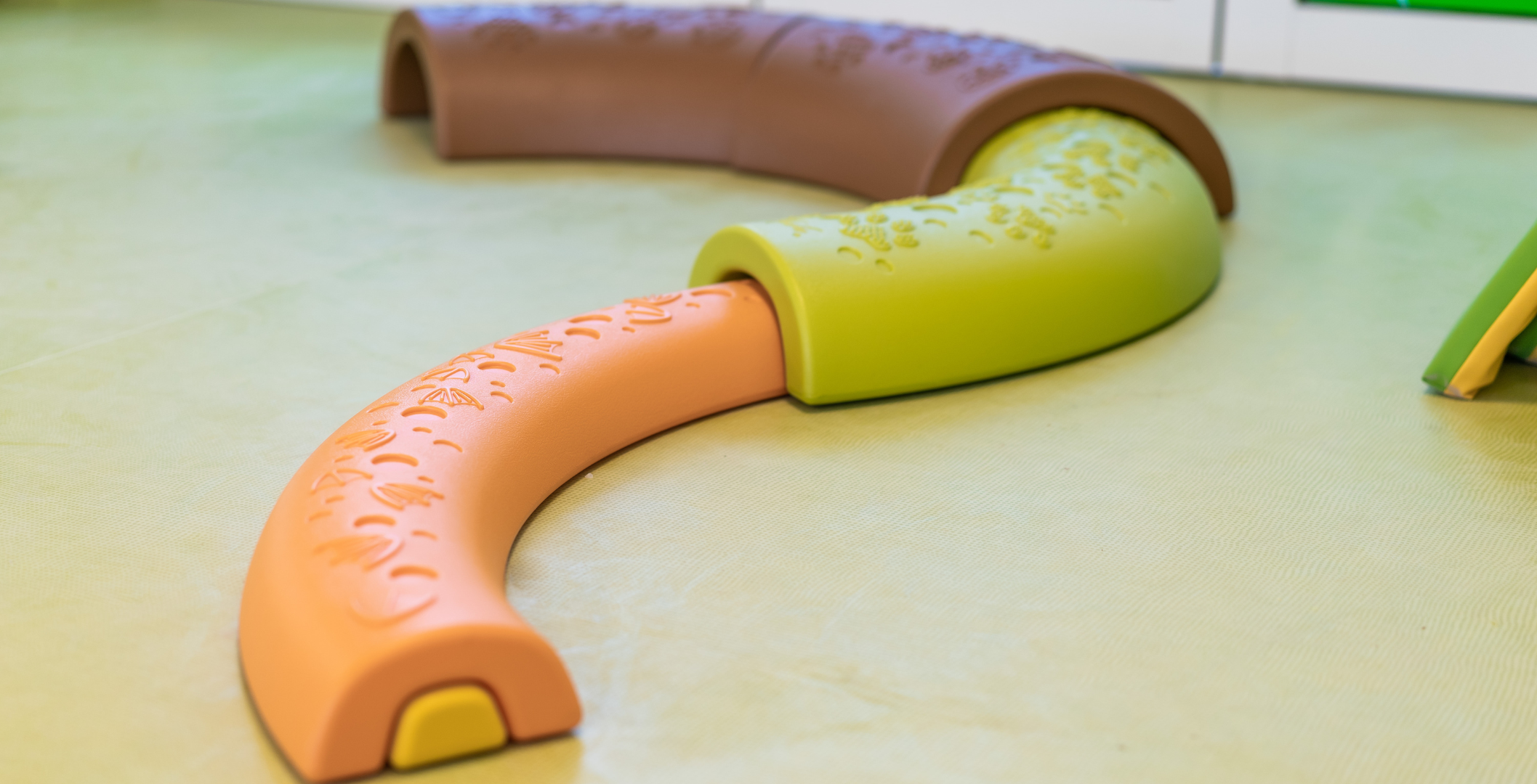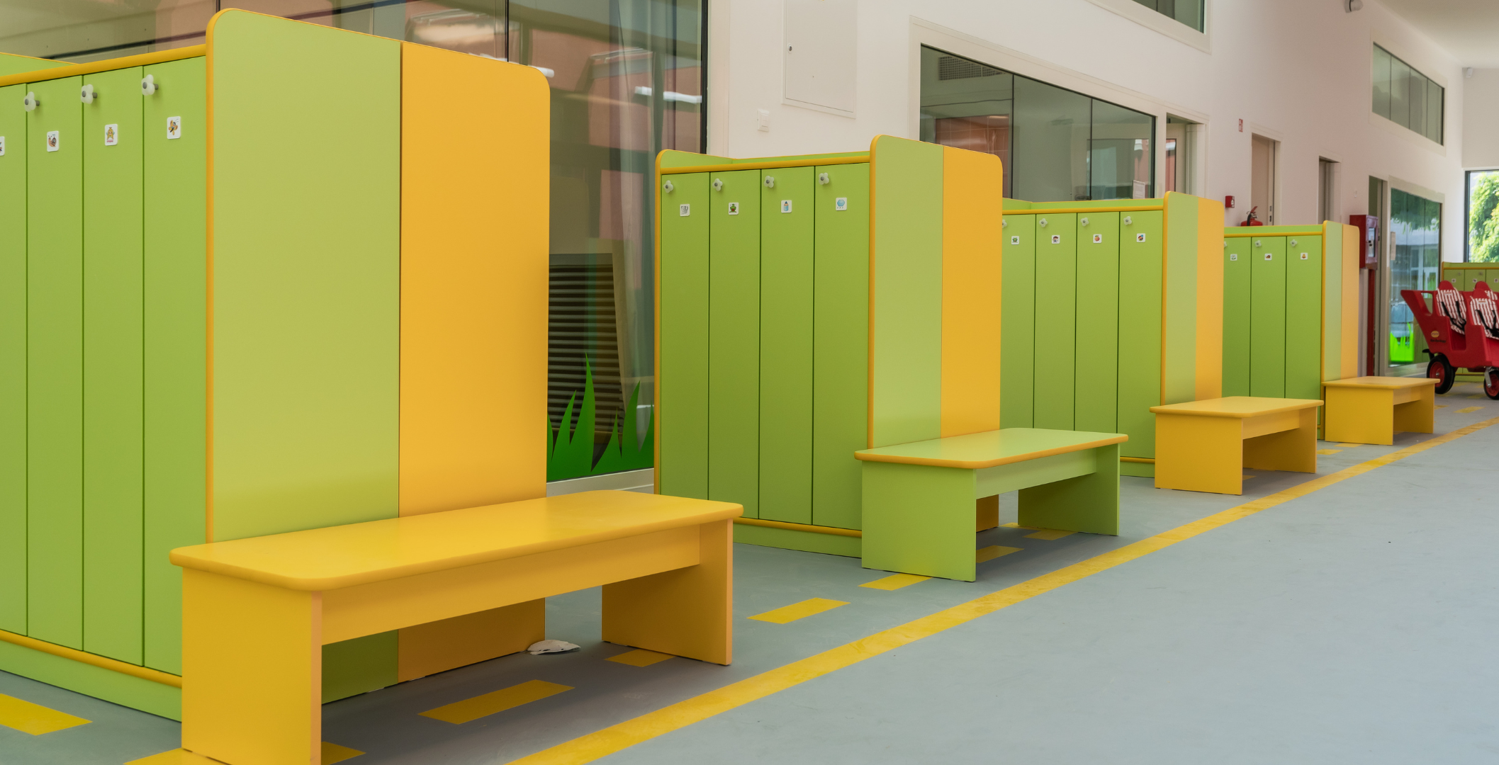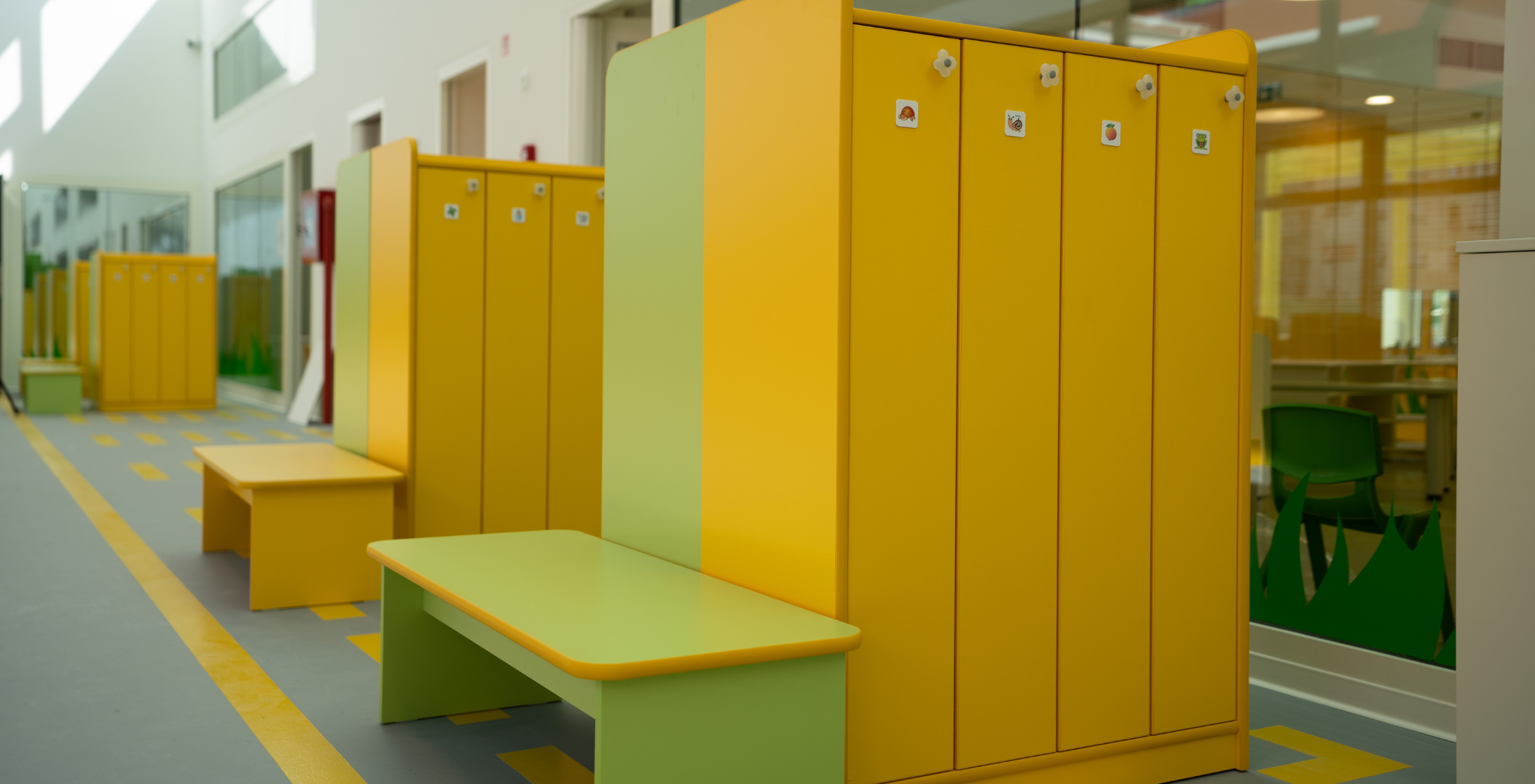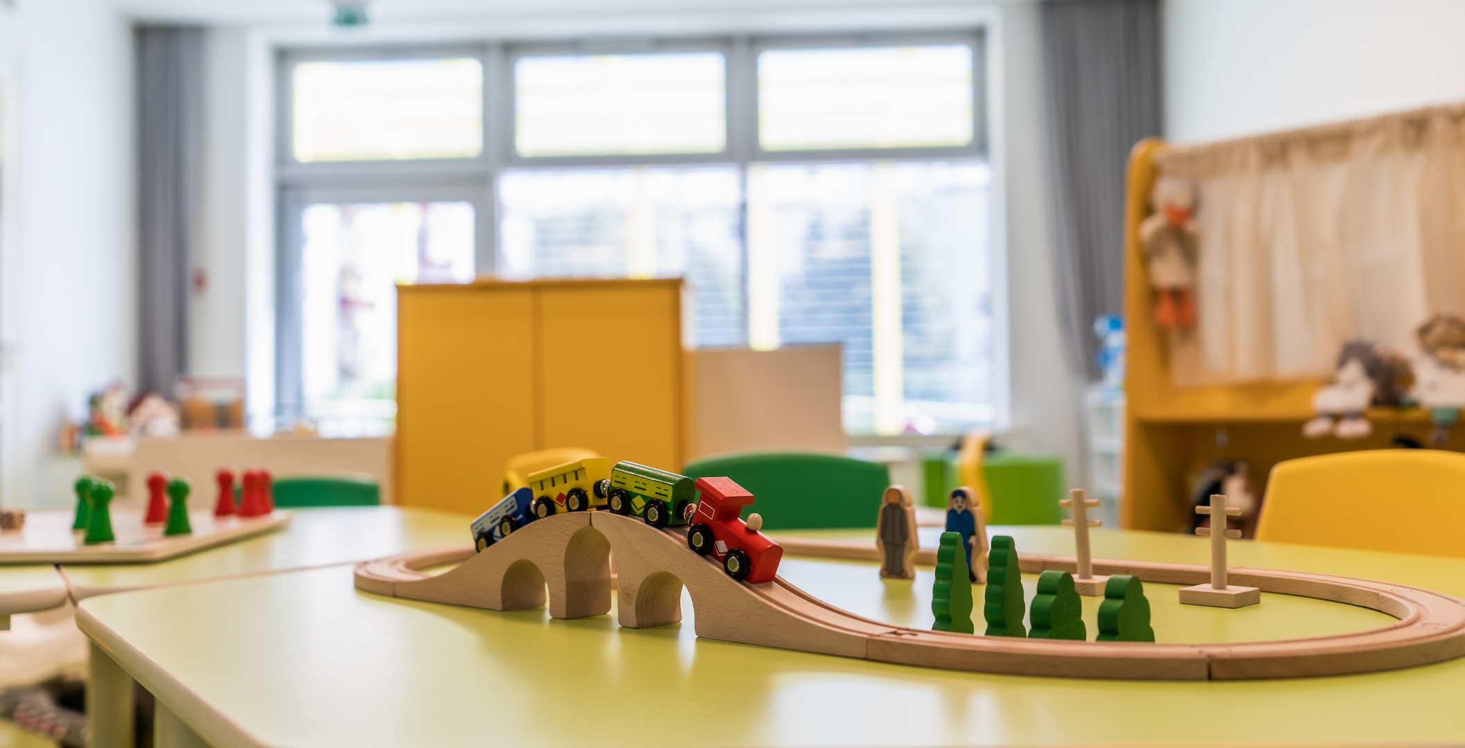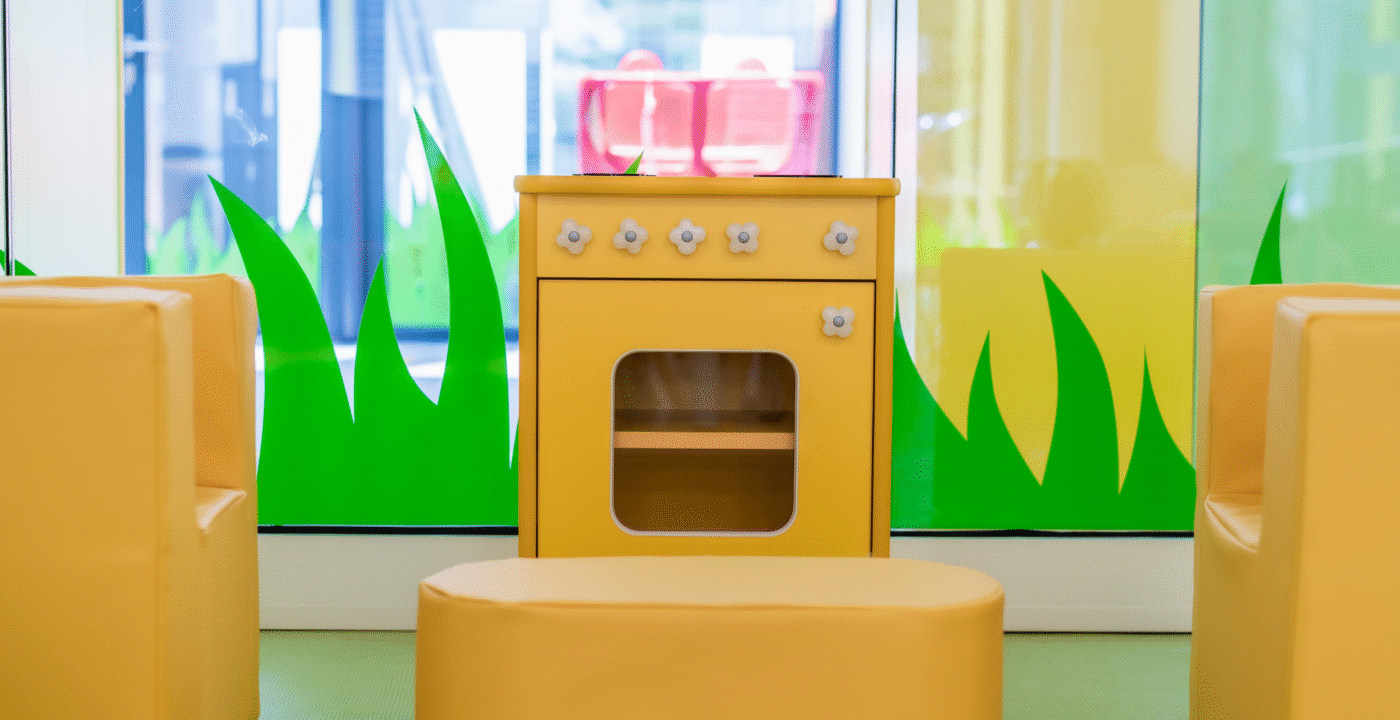 Zgrada vrtića je prizemnica dimenzija 90 x 24 metra u zelenom tonu kako bi se uklopila u prostor okružen visokim stambenim zgradama. Prema projektnom zadatku predviđeno je 12 odgojnih skupina za oko 200 djece.