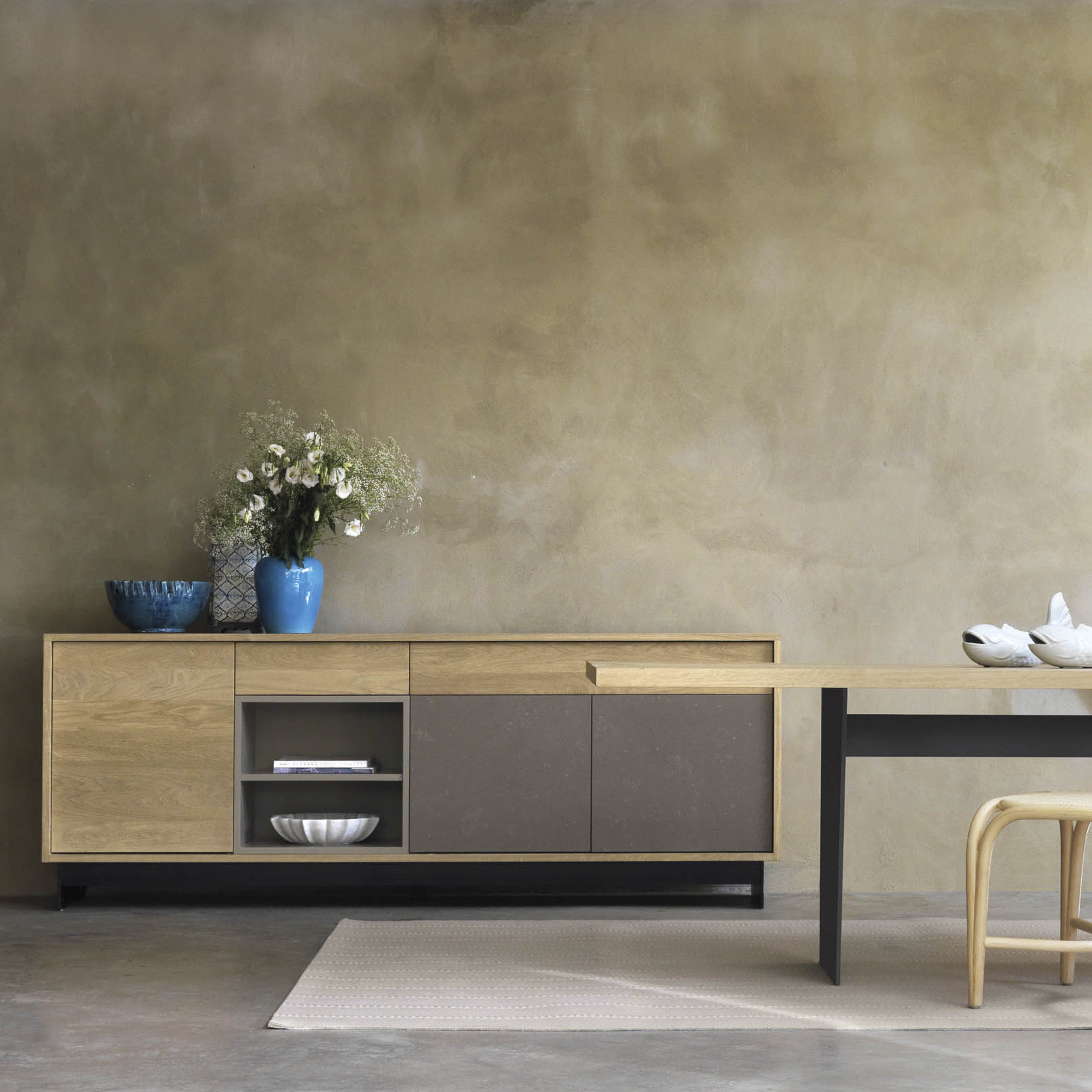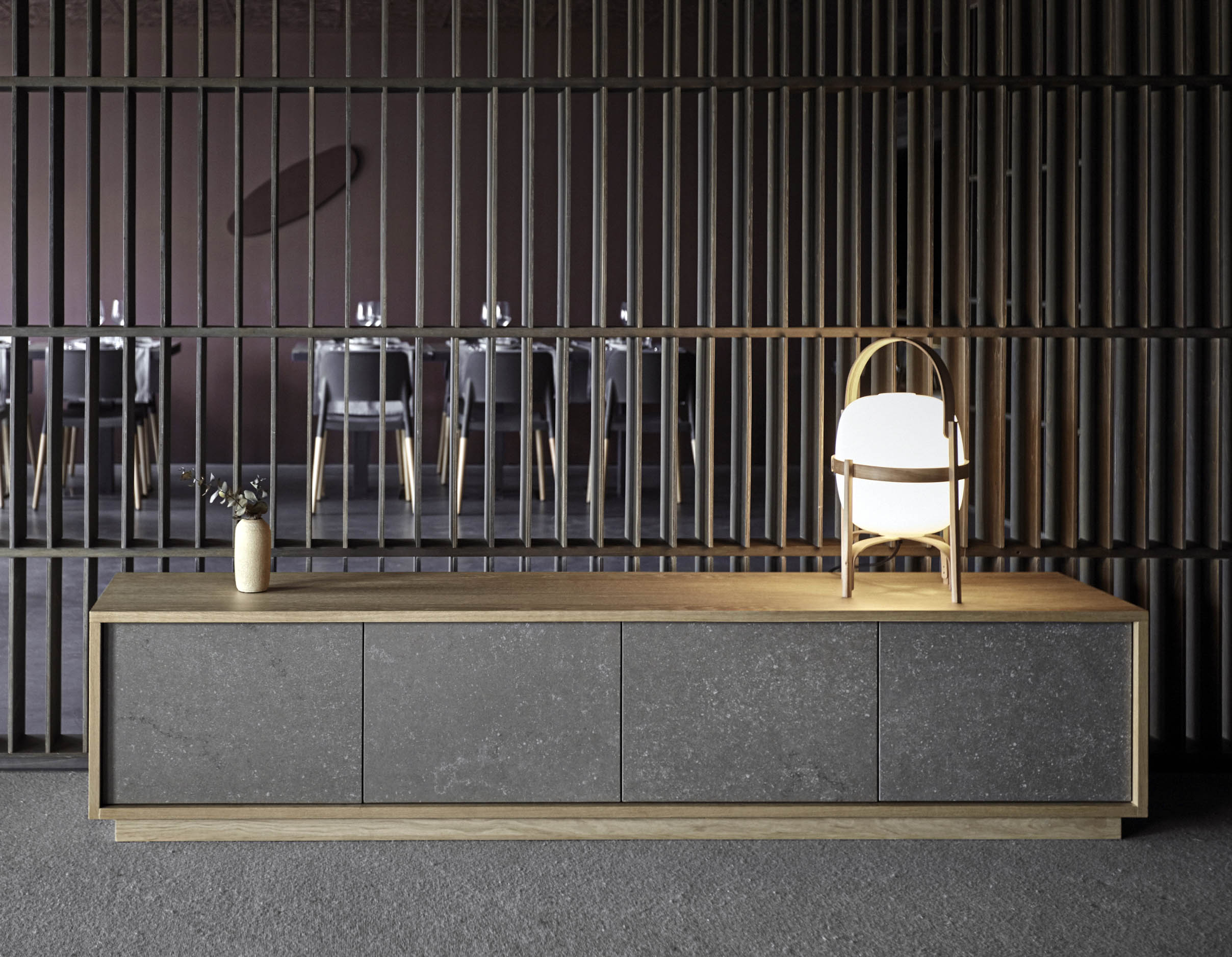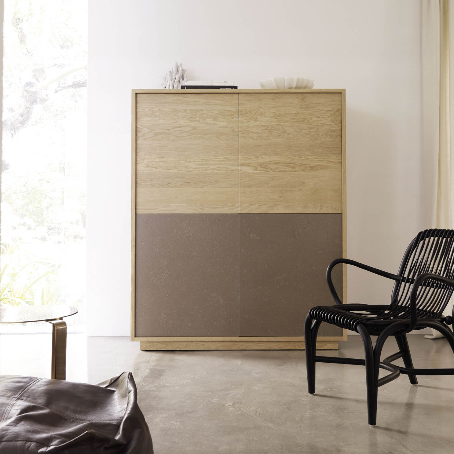 Sve površine „Basic“ obitelji izrađene su od punog drveta europskog hrasta često korištenog kod opremanja restorana ili projektiranja kuća. Mogućnost prilagođavanja prednje strane vrata korištenjem tri vrste Kerlite® porculanske završne obrade. Postoje tri opcije za noge: baza od punog drveta, noge od punog drveta i metalne noge. Kolekcija je dostupna i u furniru europskog hrasta dok je unutarnja ladica po izboru.