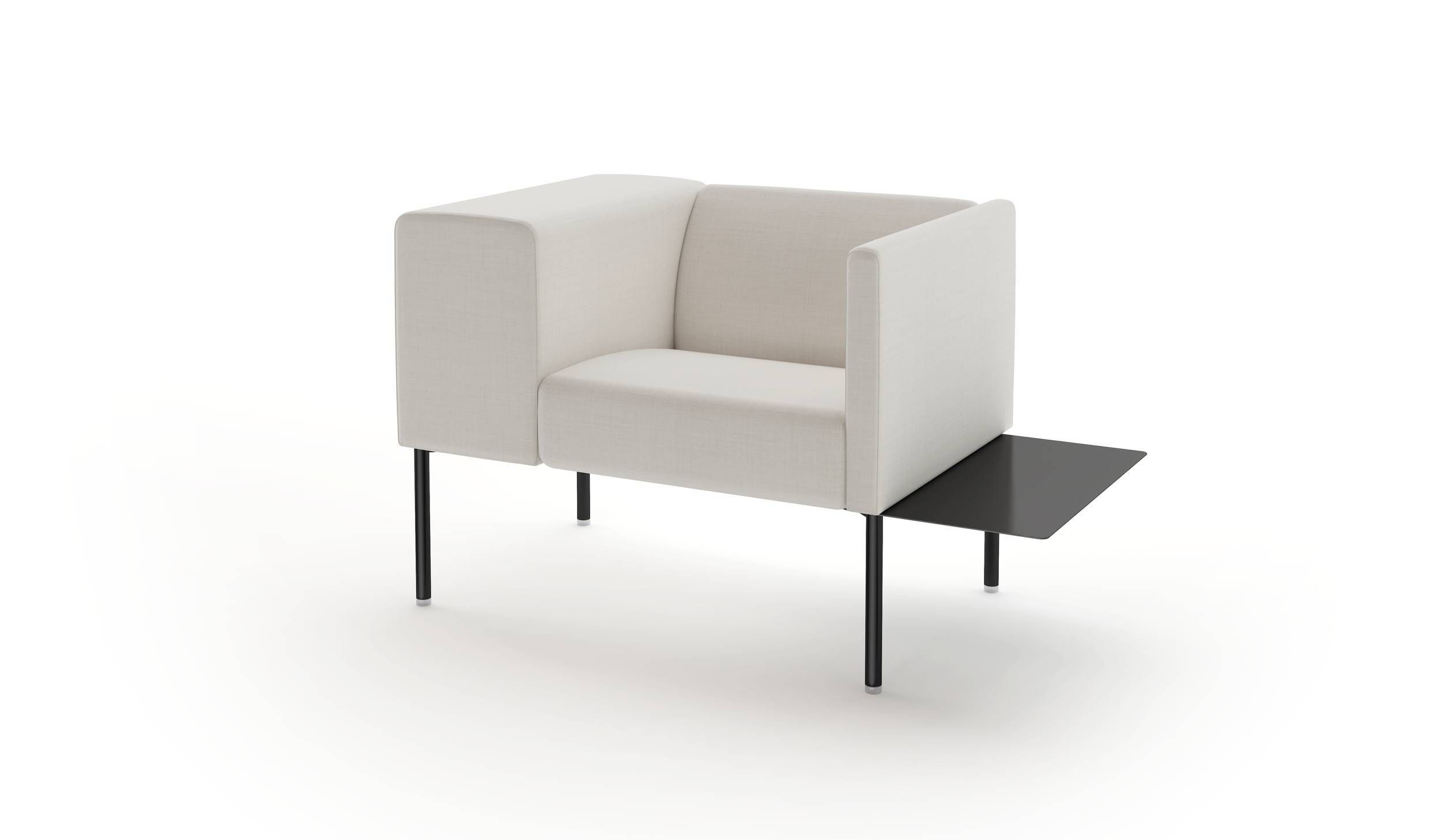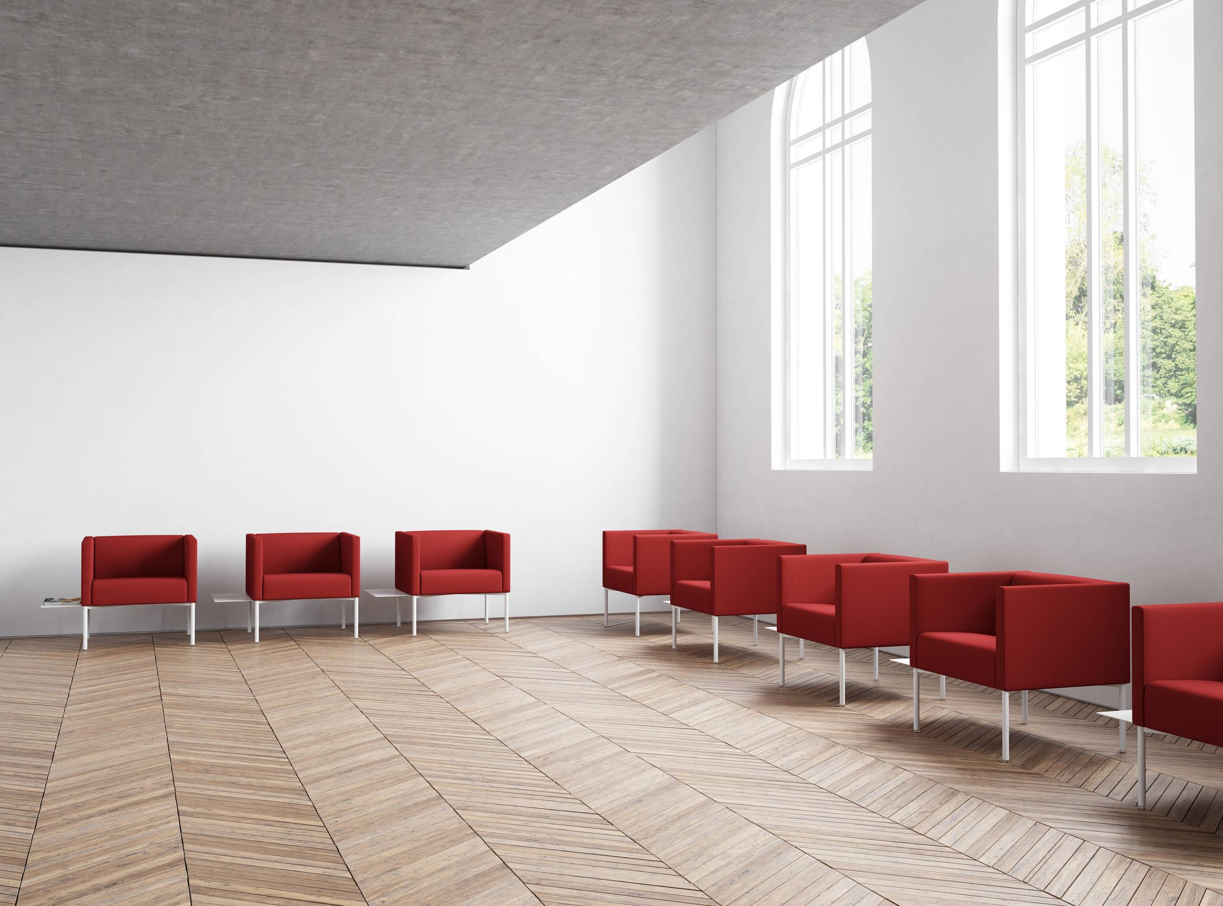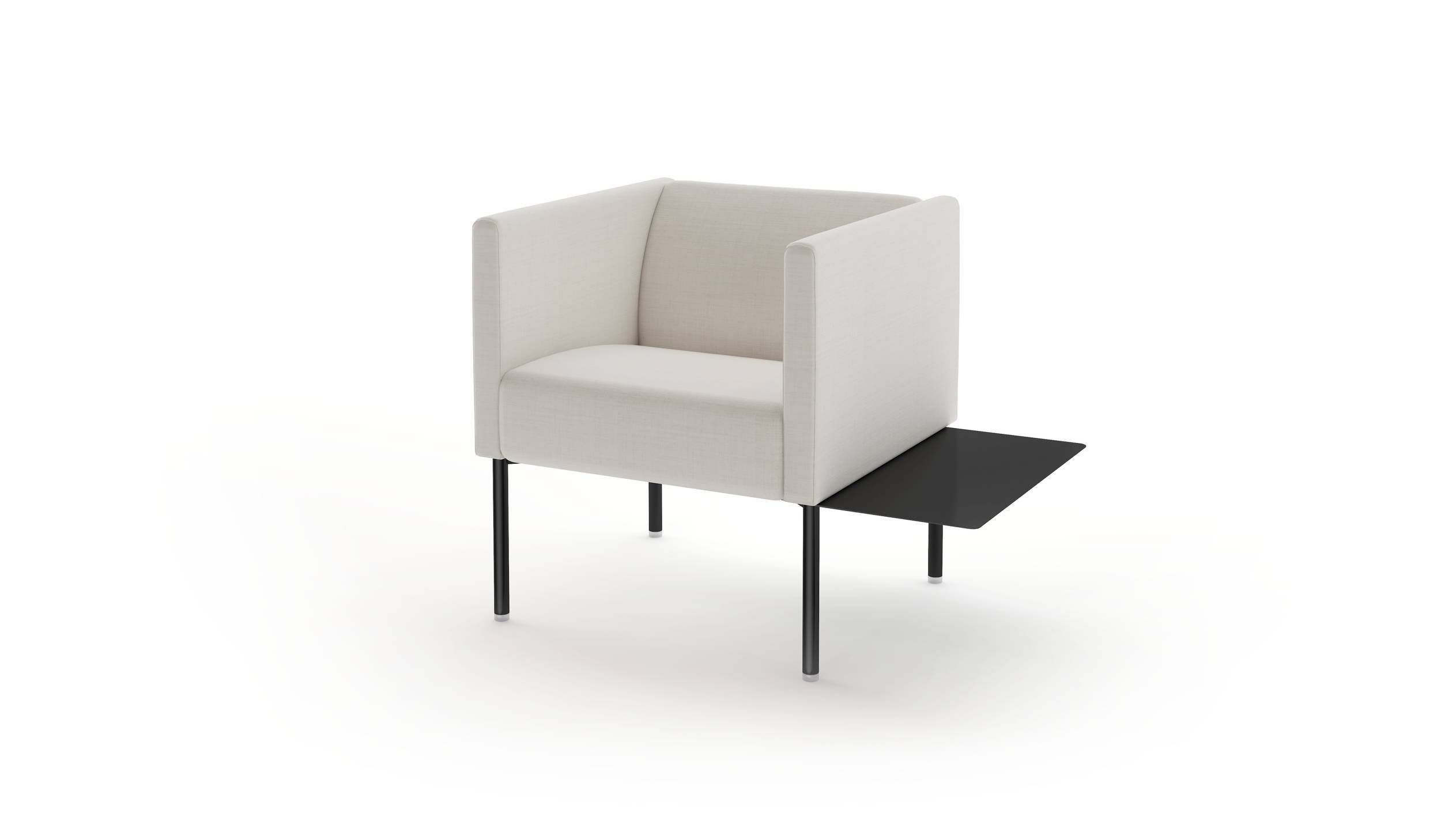 Zahvaljujući svom geometrijskom dizajnu, može se grupirati na razne načine kako bi se stvorila elegantna konfiguracija u zajedničkim prostorima. Kao dodatak dostupan je pomoćni stol. Nova verzija sada je dostupna s dva uska naslona za ruke za manje prostore.