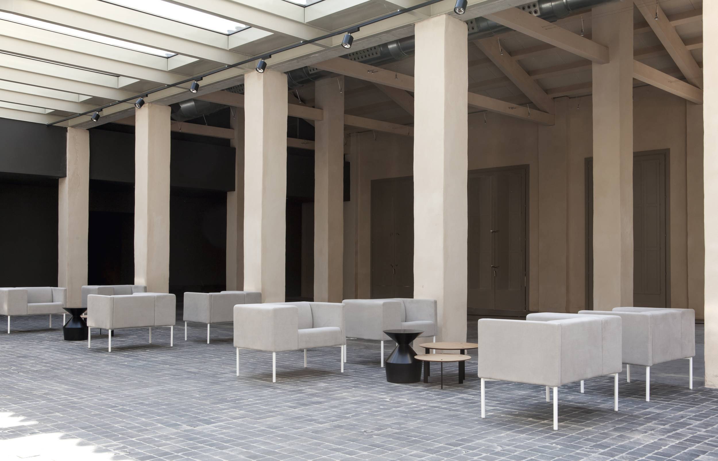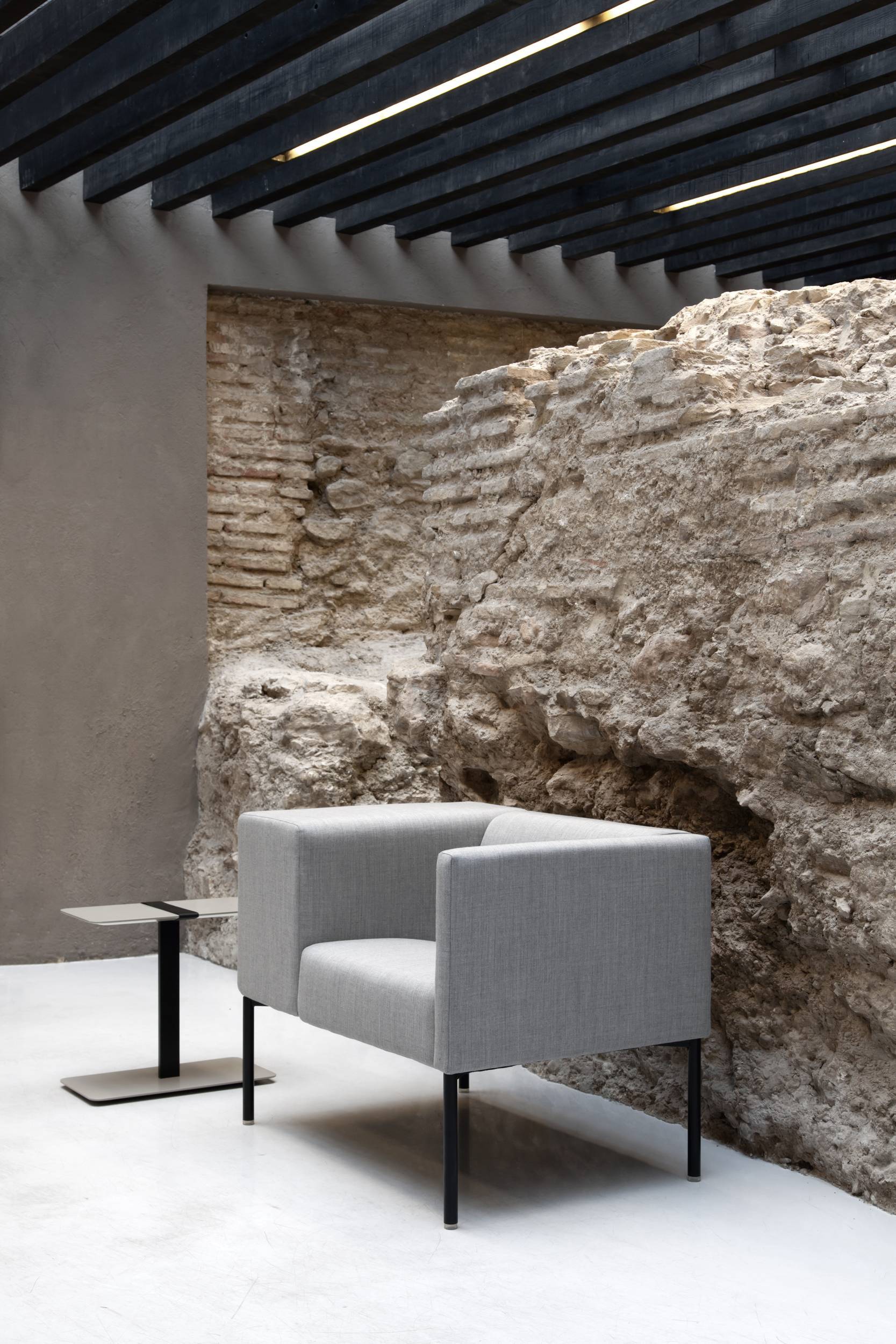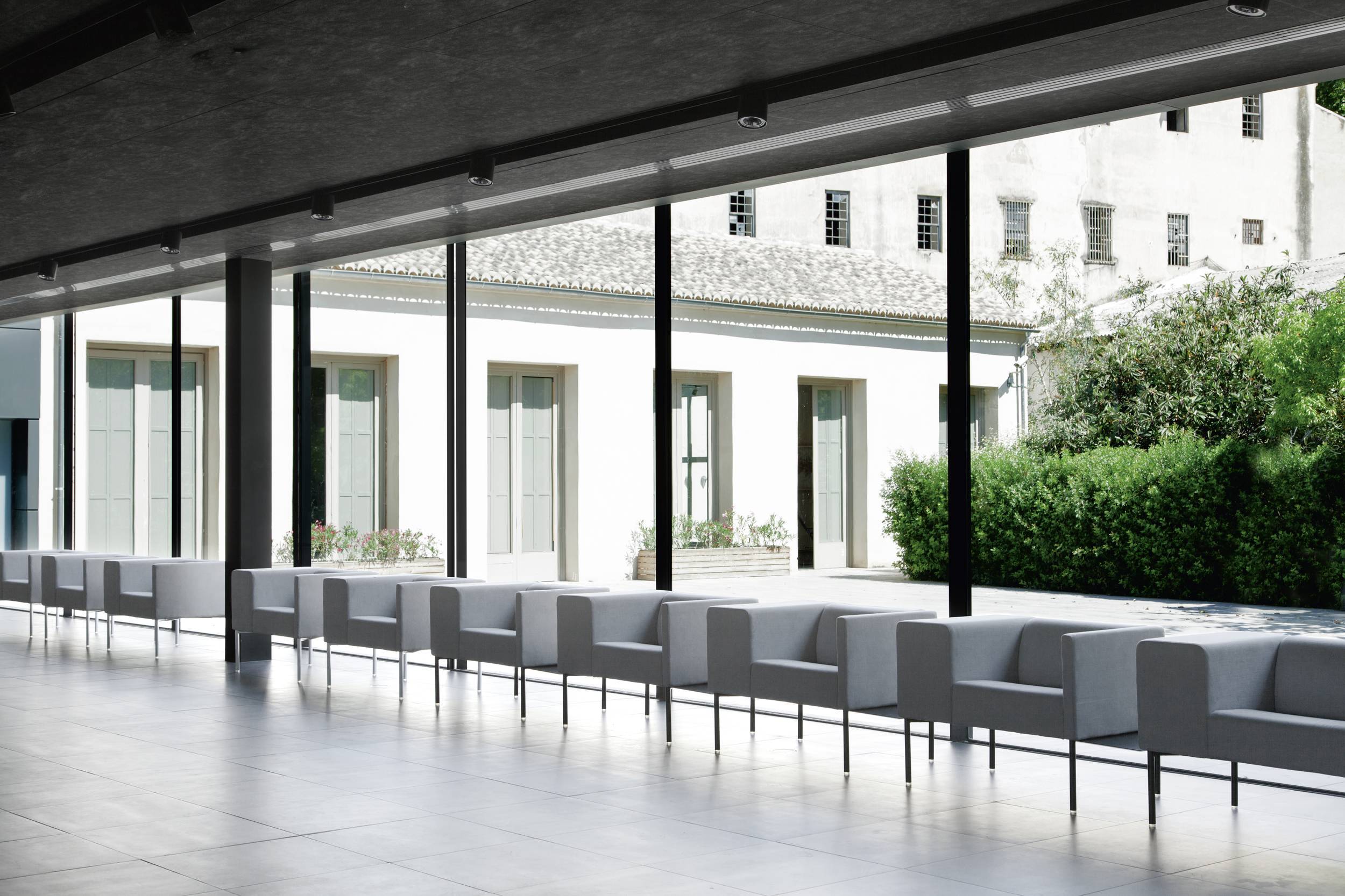 Zahvaljujući svom geometrijskom dizajnu, može se grupirati na razne načine kako bi se stvorila elegantna konfiguracija u zajedničkim prostorima. Kao dodatak dostupan je pomoćni stol. Nova verzija sada je dostupna s dva uska naslona za ruke za manje prostore.