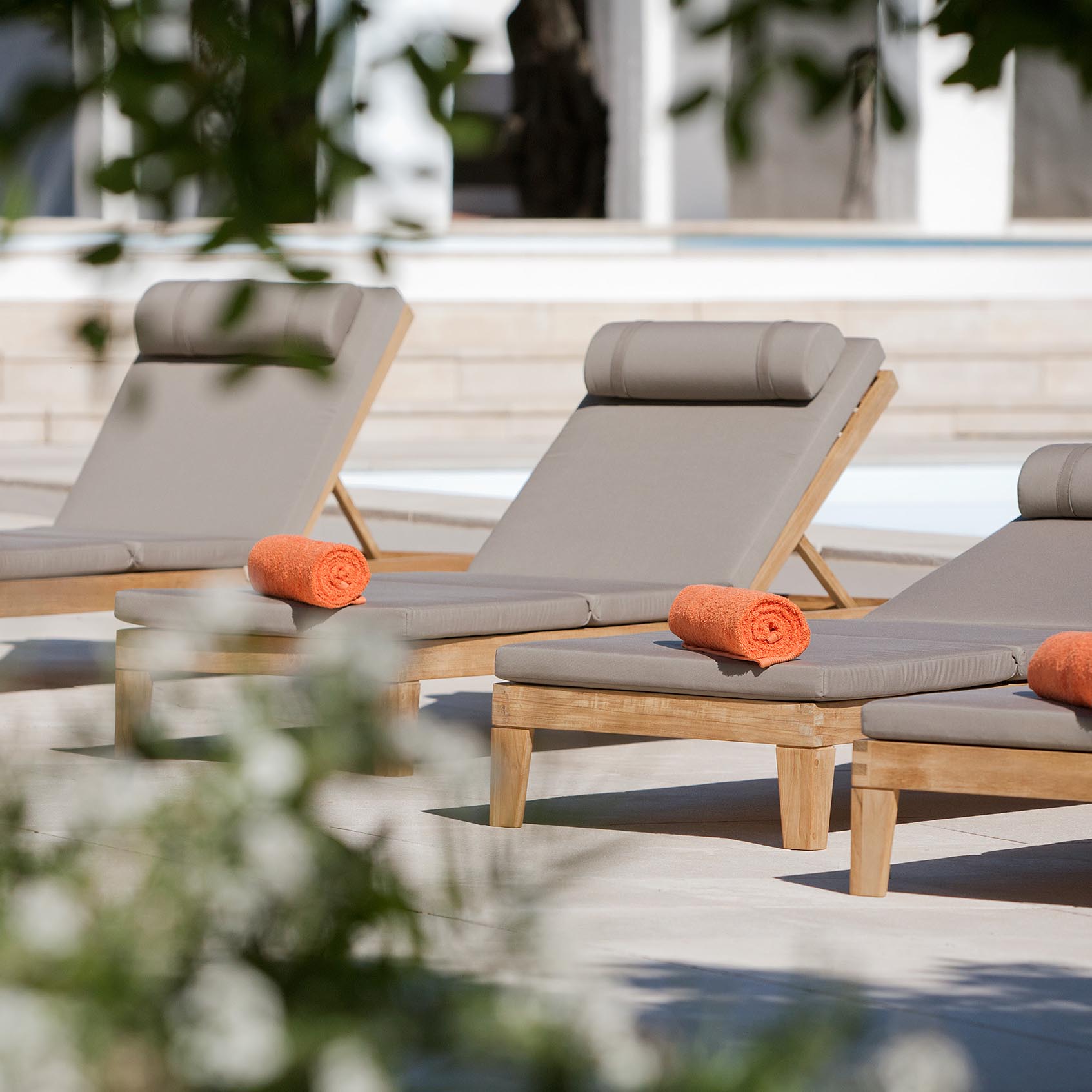 Ležaljka za terasu od tikovine dostupna u nekoliko opcija, od statične baze, koja se može povezati u povišenu platformu bilo koje veličine, koja uključuje sve dodatke kako bi vaše sunčanje bilo što ugodnije.