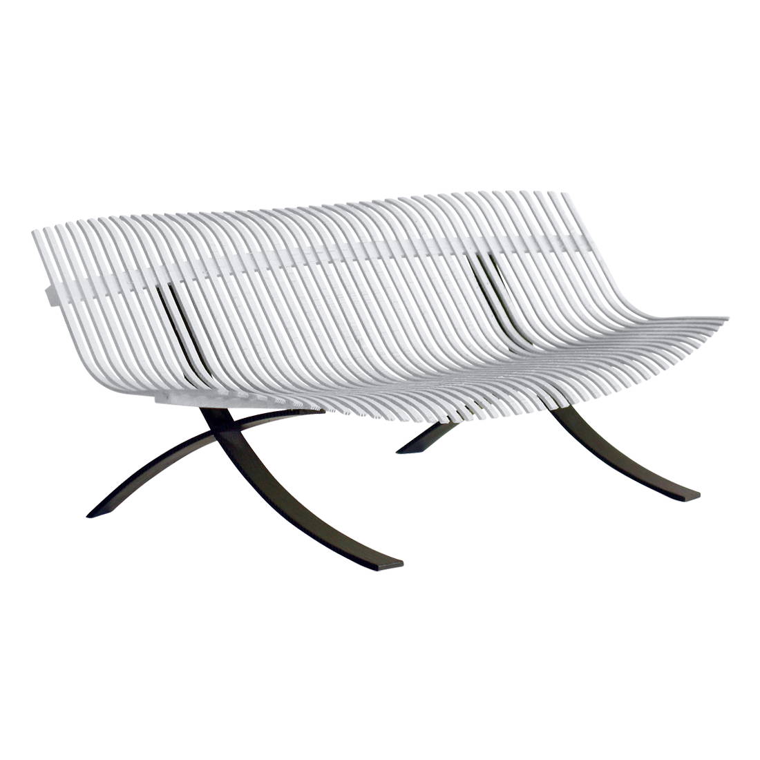 Originalni prototip Juliette Liberman za klupu „Charivari“sadržavao je drveno sjedalo, koristeći isti postupak savijanja parom koji tradicionalno koriste brodograditelji za izradu rebara čamaca. Rezultat je graciozna, velikodušna klupa zapanjujuće laganog izgleda. Namještaj za terasu sa zakrivljenim aluminijskim letvicama koje izgledaju kao tkanina prevučena preko čeličnog okvira, fleksibilna i valovita, kao da je u stalnom pokretu.