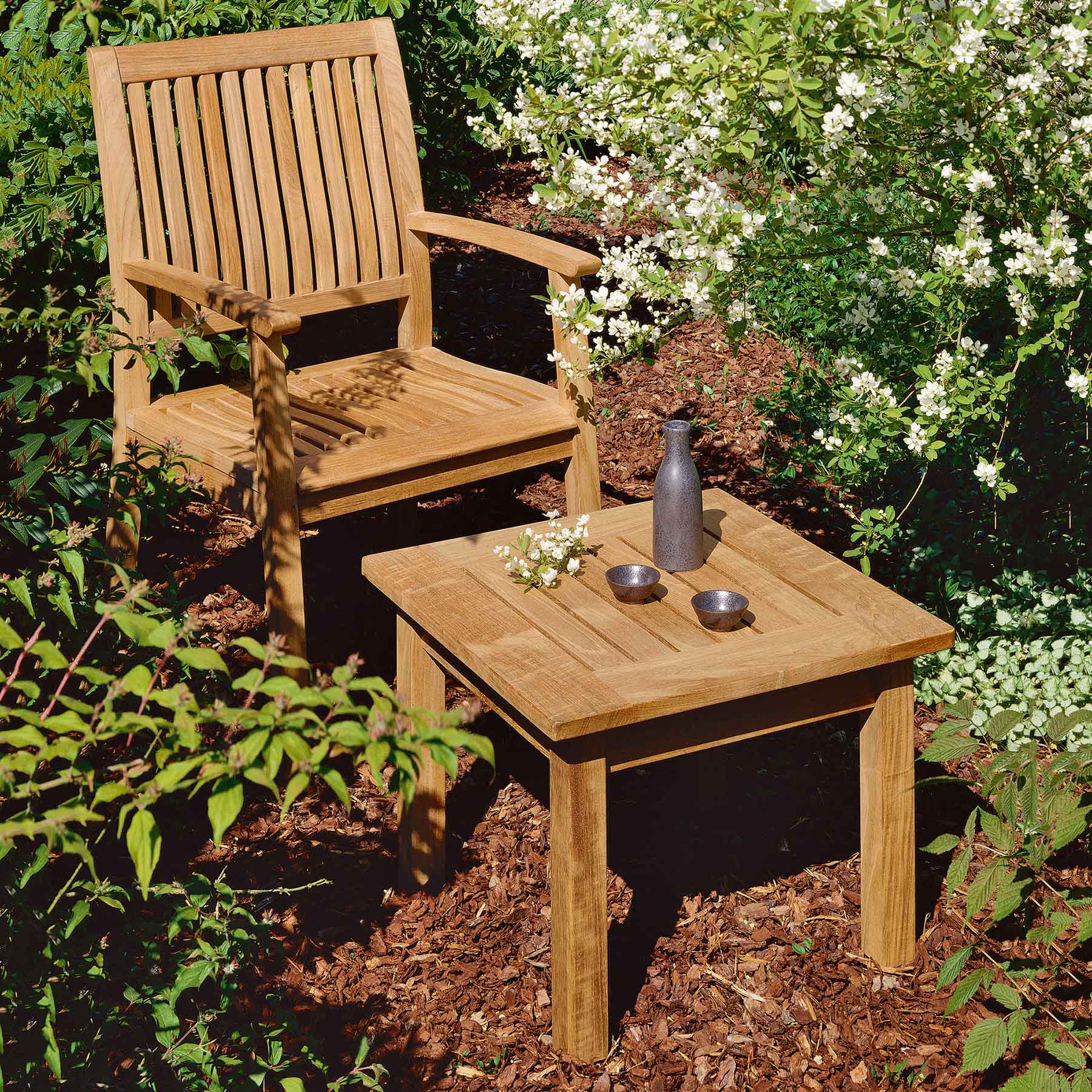Dizajn četvrtastog stolića za kavu nadopunjuje bilo koji tradicionalni vanjski namještaj za terasu.