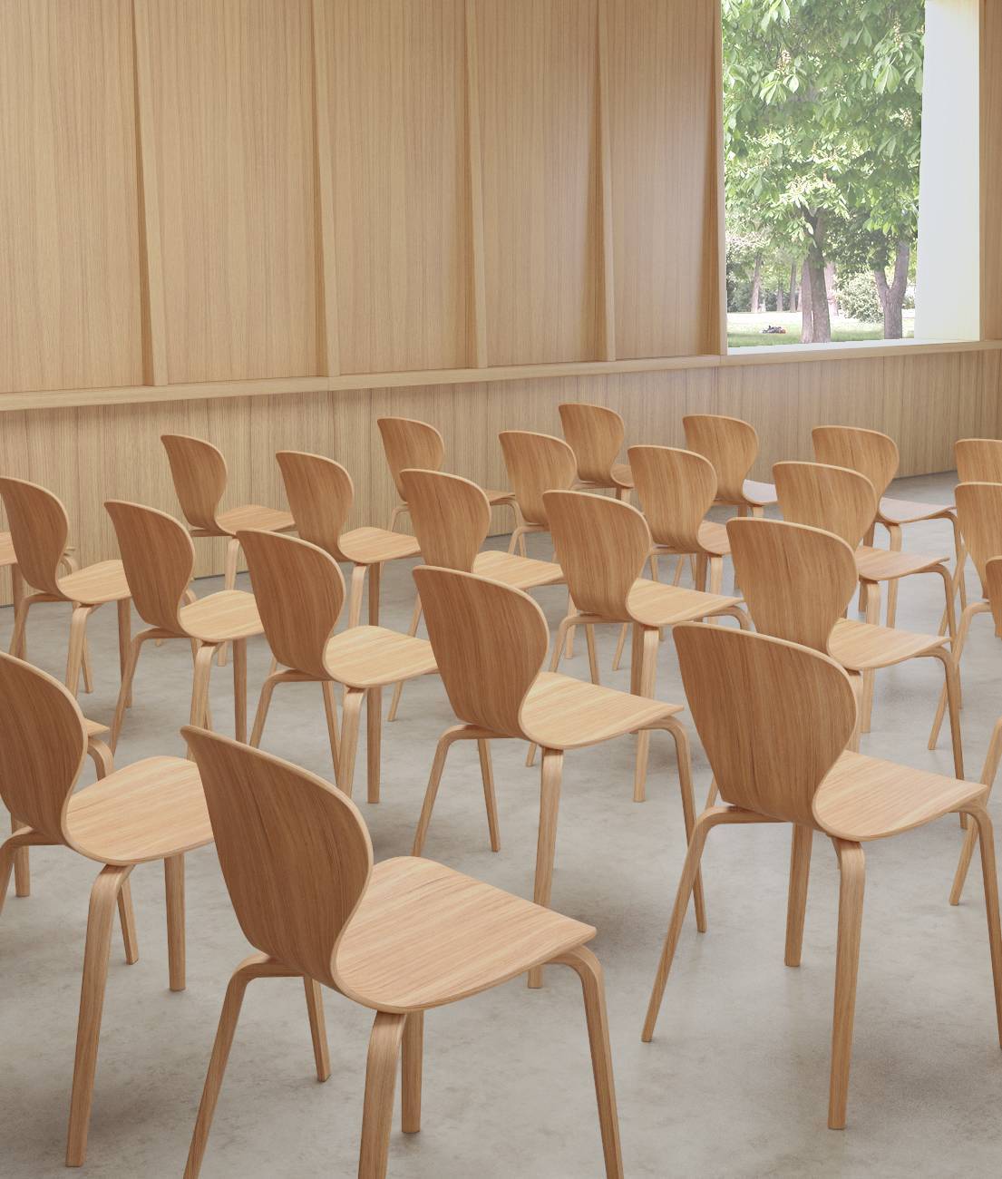 Njena uravnotežena struktura (smanjena koliko i udobna) čini „Ears“ savršenom opcijom za različite kolektivne i privatne prostore: mjesta za sastanke, menze, čekaonice, predavaonice, garderobe, radne prostore u knjižnicama ili salonima. Često se koristi za fakultete ili za opremanje uredskih prostora.