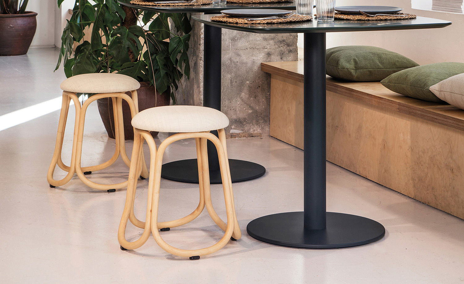 Barske udobne stolice dolaze u dvije visine: u niskoj i visokoj verziji, sa strukturom od guljenog i obojanog prirodnog ratana promjera 26 mm/1,02”. Završene su premazom u tri koraka (boja, osnovni premaz i završni premaz) i vrlo su otporne na sunčevo zračenje zahvaljujući UV filterima. Dostupno je više mogućnosti presvlaka: prirodna ili umjetna koža, djevičanska vunena tkanina, baršun i polipropilen.