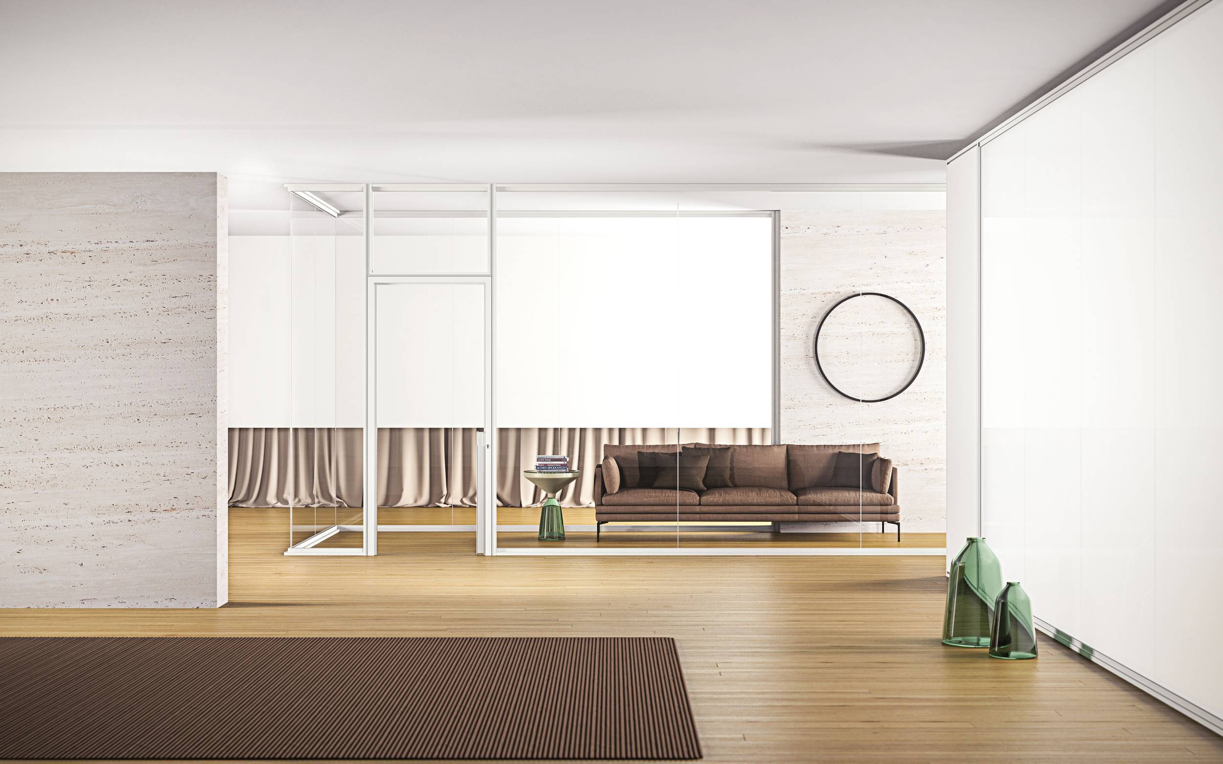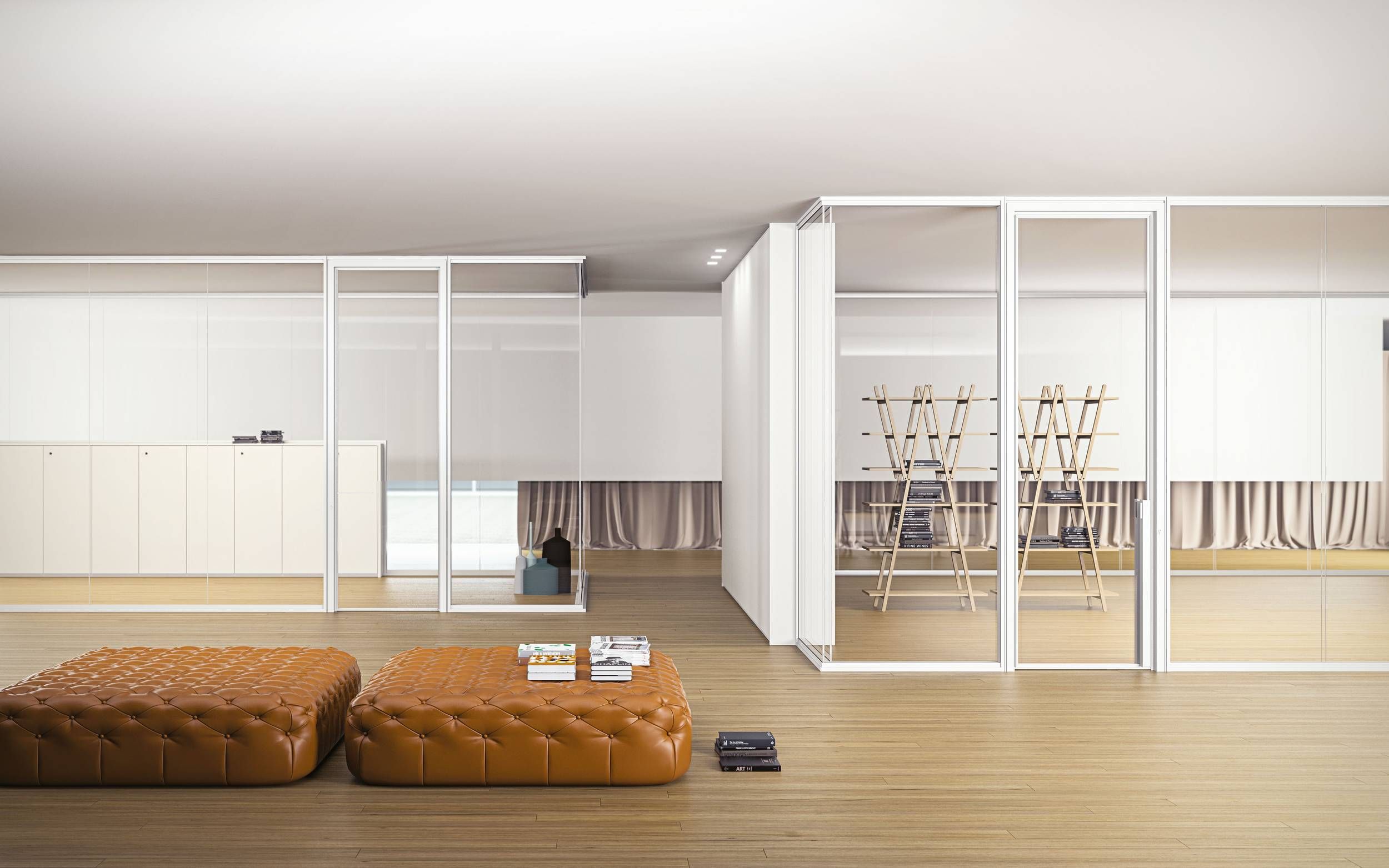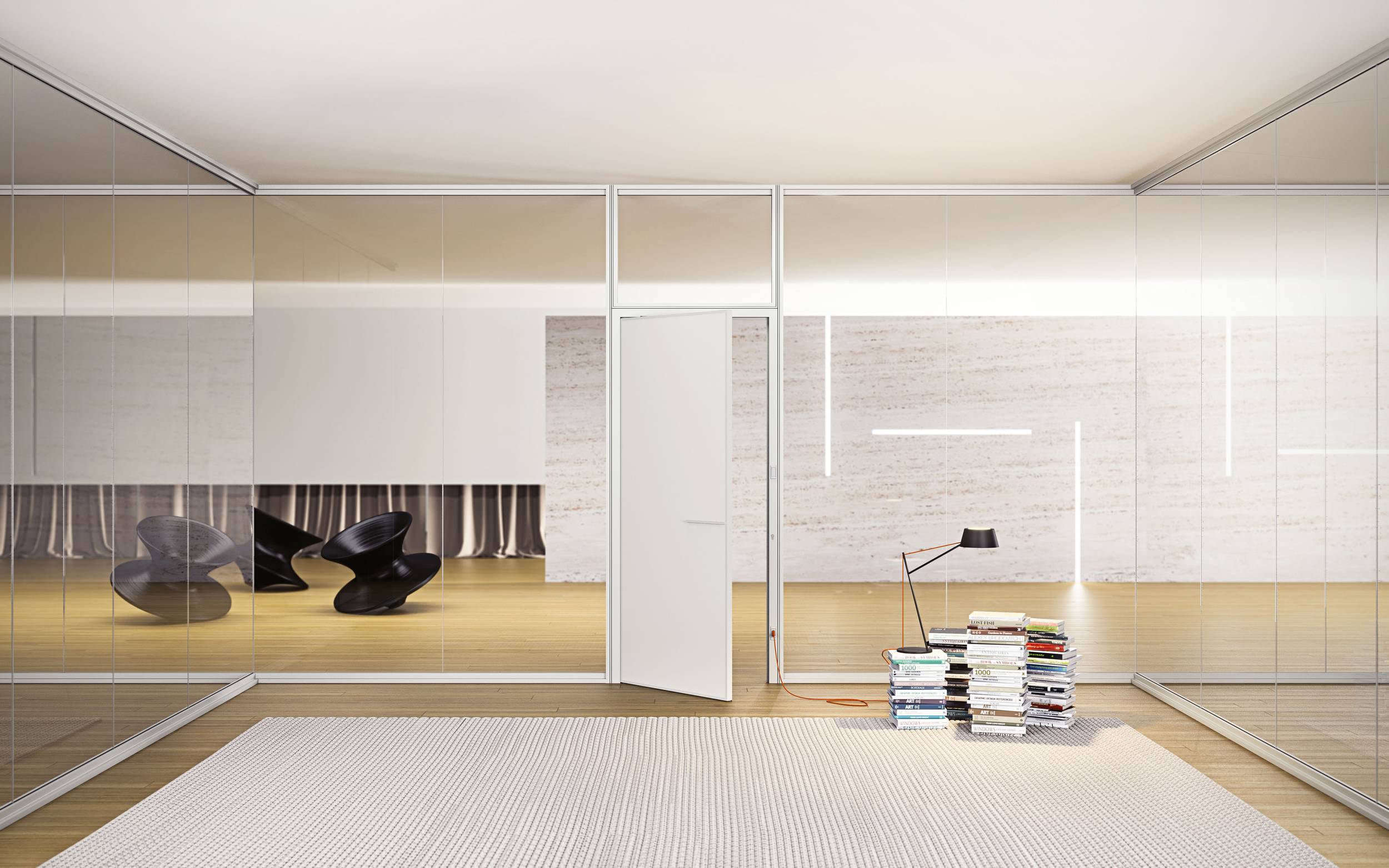 Riječ je o 100 mm širokoj pregradi koju karakteriziraju slobodnostojeće staklene stijenke. Drugačija vrsta koja, eliminacijom strukturalnih ograničenja, teži sjedinjenju suprotnosti, slijedeći ideal snage i savršene transparentnosti, istovremeno zadržavajući velik i kompleksan rubni okvir na vrhu i dnu.