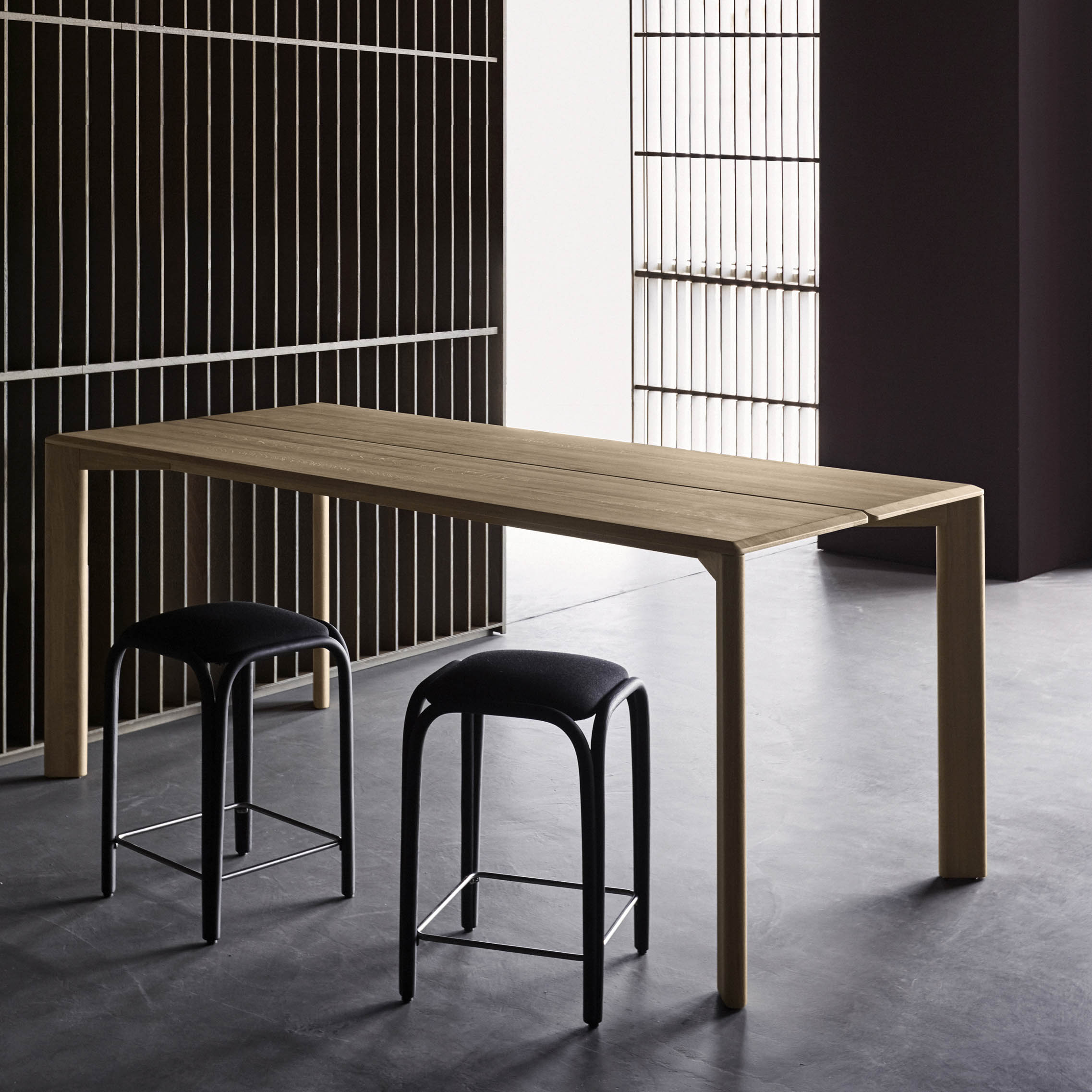 Konstrukcija od punog drvenog profila od europskog hrasta. Površina od punog drveta europskog hrasta presjeka 22 mm/0,87”. Namještaj po mjeri dostupan i u furniru europskog hrasta često korišten kod uređenja stana.
