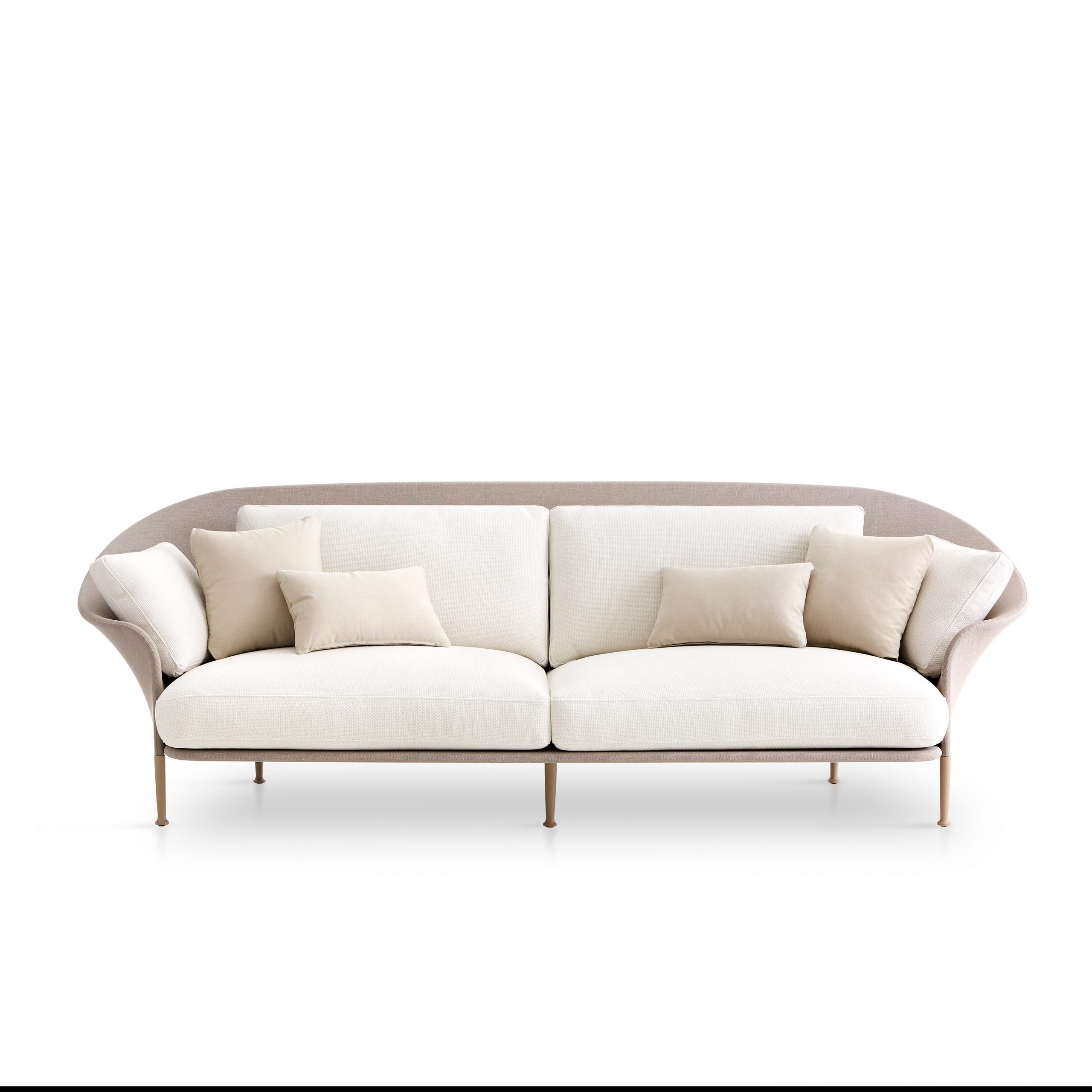 Fotelje za terasu izrađene od strukturne aluminijske cijevi visoke otpornosti i tlačno lijevanih aluminijskih nogu. Mogućnost prilagodbe polivalentnih stolica kroz široku paletu tehničkih tkanina potpuno prikladnih za vanjsku upotrebu.