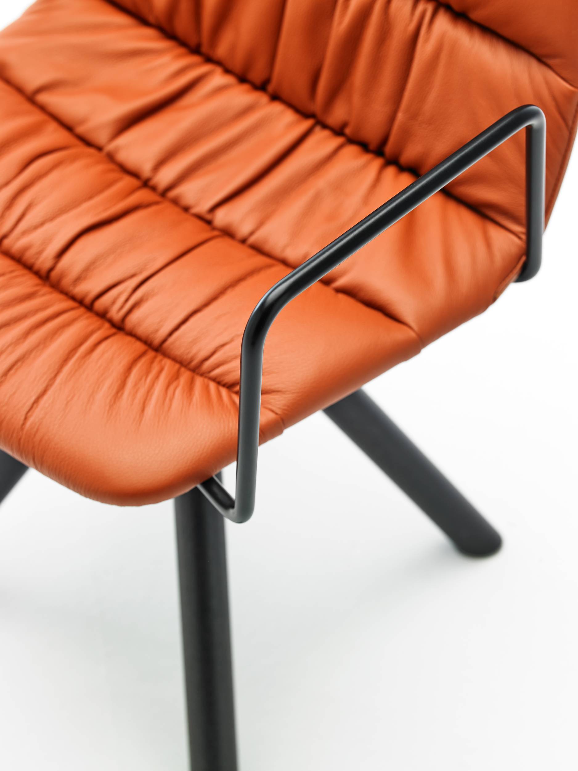 Viccarbe stolica ugodne estetike koja dodaje karakter svakoj sobi. Glatki obrisi njezine siluete pravilno podržavaju leđa osiguravajući dugotrajnu udobnost. Njena lakirana čelična cijevna struktura i pažljivo izrađeno, elegantno tapecirano sjedalo podsjećaju na klasike 70-ih. Optimalna je za uređenje doma ili opremanje javnih objakata.