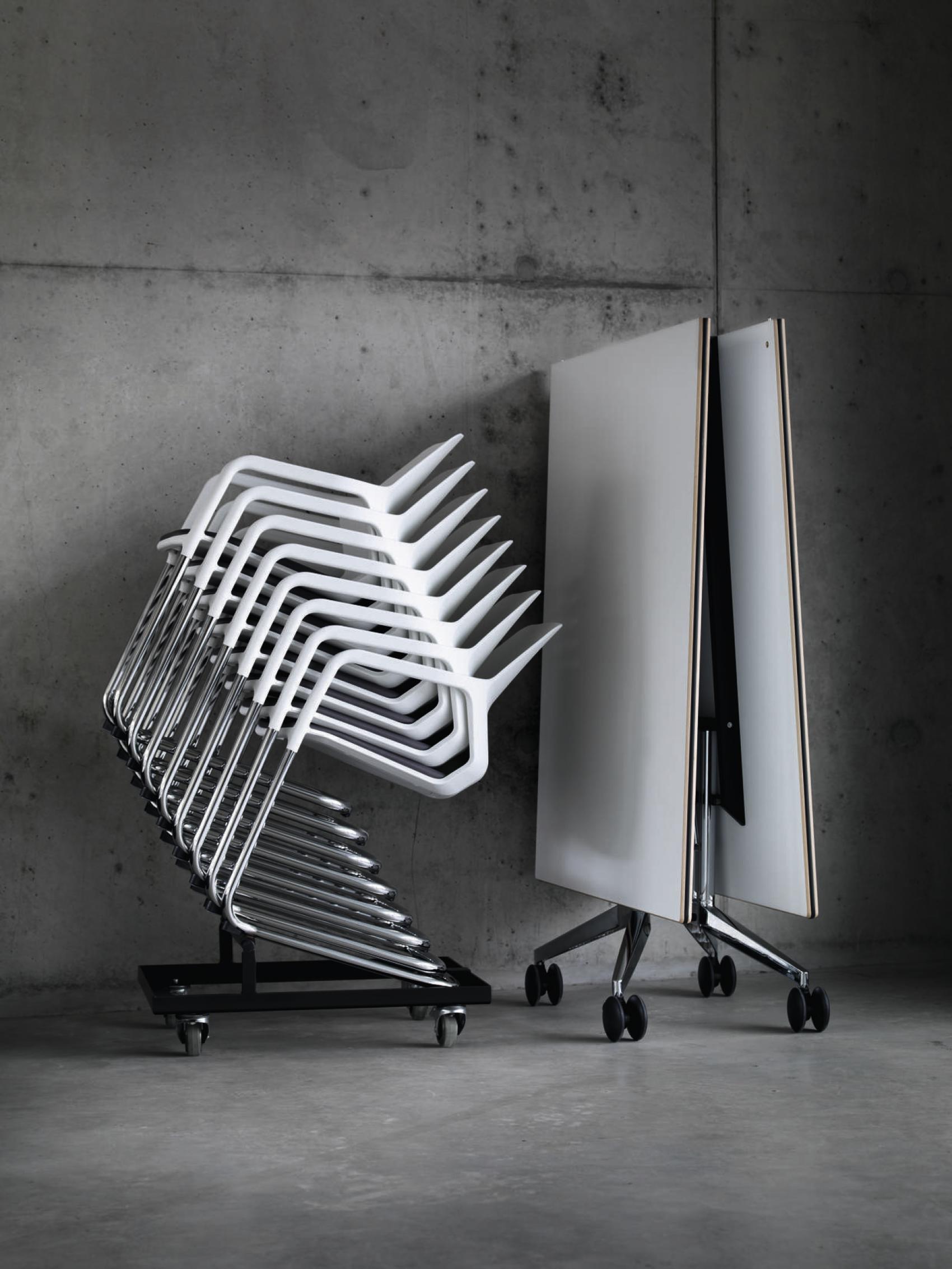 Wilkhahnova nova „Metrik“ stolica ističe se svojim strukturalnim oblikom i konturama koje podsjećaju na dizajn modernih automobila. Poligonalni oblici i zaobljeni rubovi dio su distinktnog tijela koje je definirano montažom cjevastog čeličnog okvira i komponente sjedala. Sjedalo i cjevasti okvir iste su boje, naglašavajući integrirani dizajn. Rezultat je stolica na kojoj se ne vide nikakvi prijelazi. Skulpturalni oblik unutrašnjosti stolice s njenim integriranim jastukom-sjedalom nudi superiornu udobnost koja može biti osnažena dodatkom jastuka na naslon. Presvlake jastuka dolaze u različitim teksturama i bojama a obojane sekcije i okviri stolice od poliamida također su dostupne u četiri boje. Spektar pokriva crnu, bijelu i sivu do sivo-bež. Sjajni kromirani okvir može biti kombiniran sa svim bojama. Do šest „Metrik“ stolica u ovoj verziji može biti posloženo jedna na drugu.
