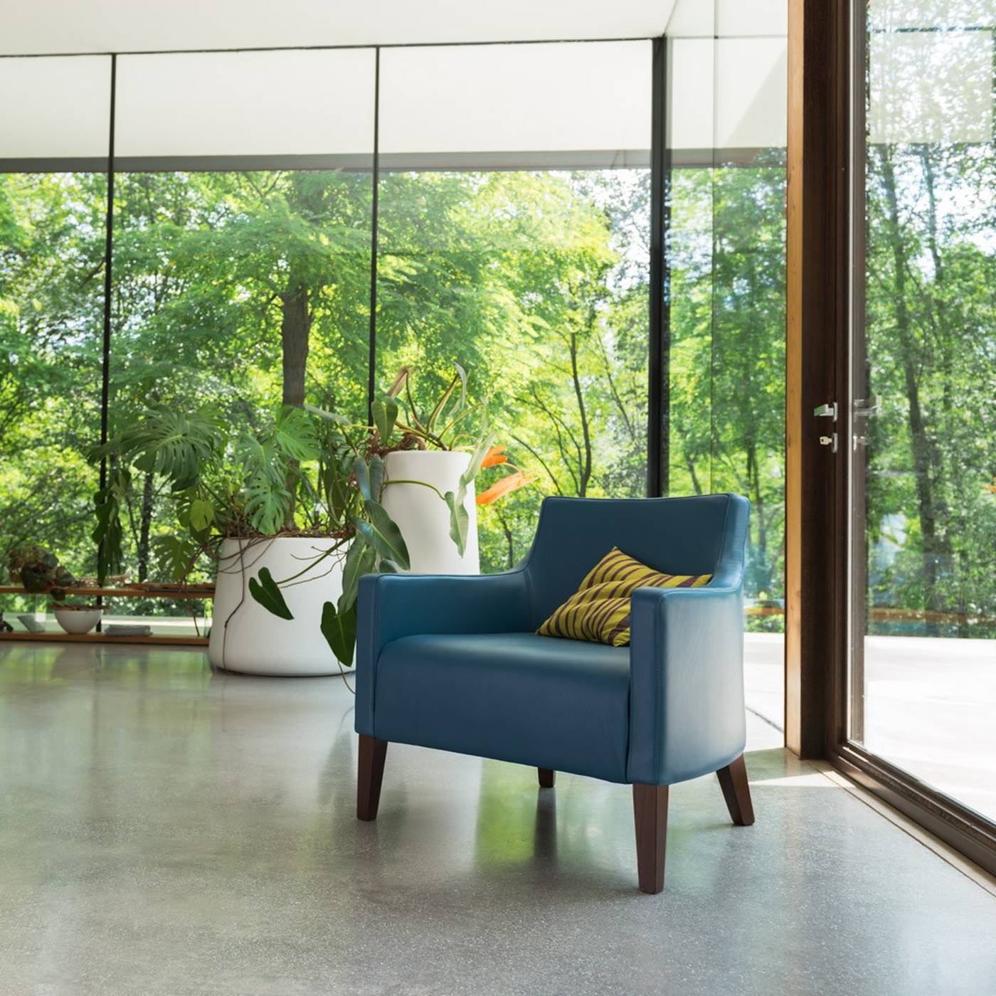 It features a unique, traditional and modern style at the same time. Its informal design can be interpreted in countless ways thanks to the wide range of models available. In the small armchair version a smooth continuous line between backrest and armrests ends up in the comfortable seat.
