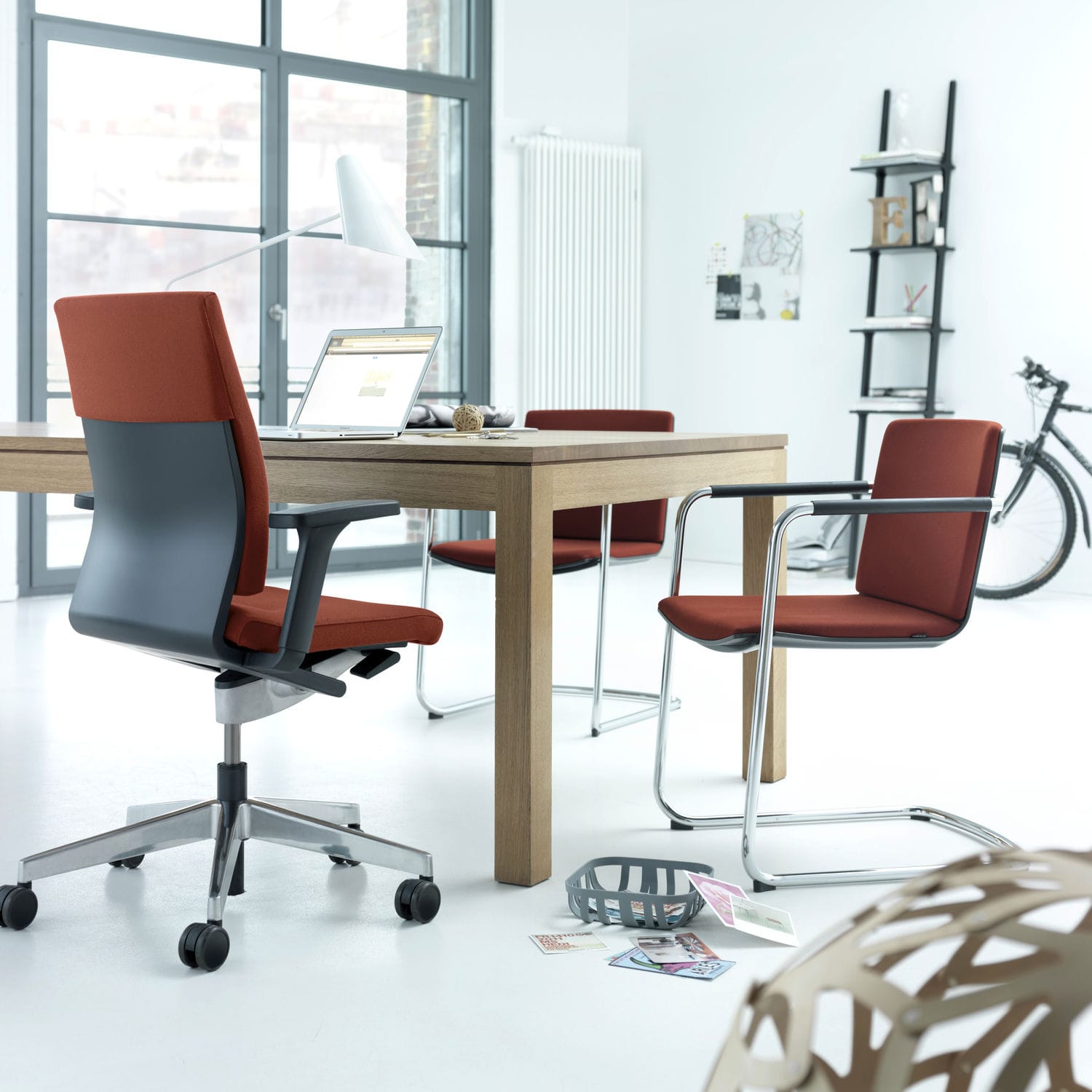 Dvije intuitivno postavljene ručke čine namještanje „Neosa“ dječjom igrom korisniku koji pritom može ostati sjediti. Sve su funkcije integrirane u mirnoj, udobnoj i samorazumljivoj formi za optimalan užitak sjedenja i atraktivnost dizajna. Ovo dokazuje da je ergonomija nužno i pitanje estetike.