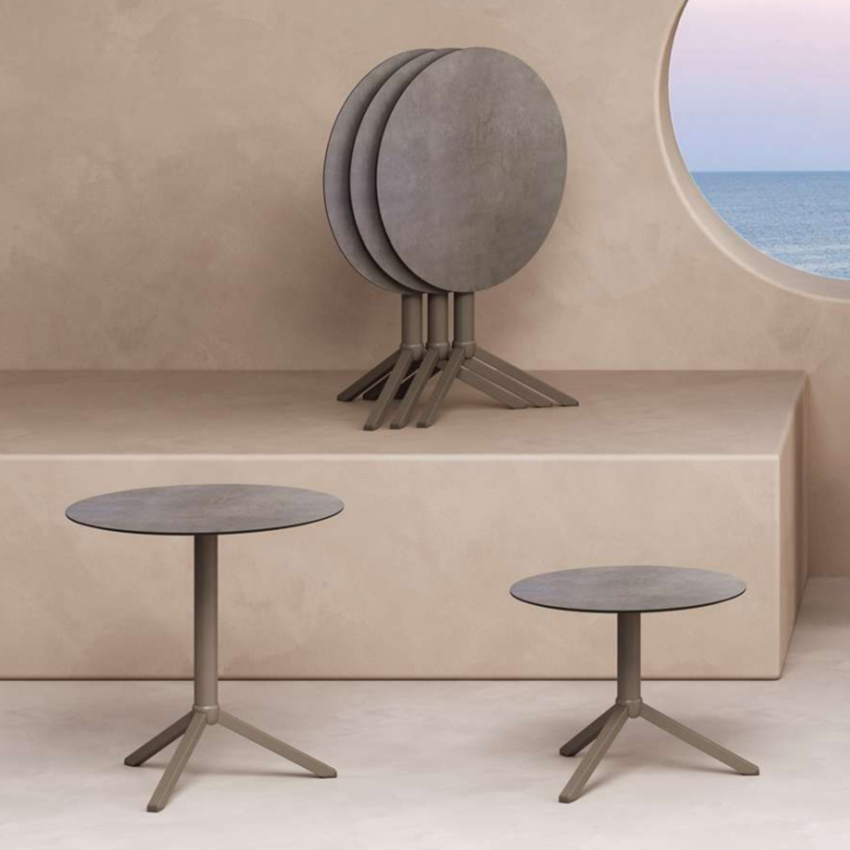 A minimal, sophistic design. Experiencing simplicity, spending more time outdoors inspired us to create this new line. Collection is presented in various sizes with folding mechanism. Natural colour options are durable for outdoor conditions.