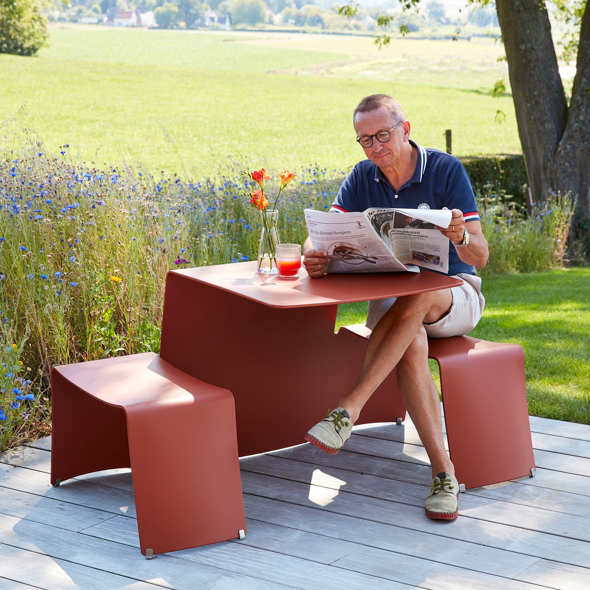 „Picnik“ posjeduje formu koja udobno smješta dvije osobe i odolijeva najtežim uvjetima na otvorenom. Savršen je primjer izreke “forma prati funkciju”. Ovaj namještaj za terasu pravi je klasik dizajna Extremisove vanjske kolekcije.