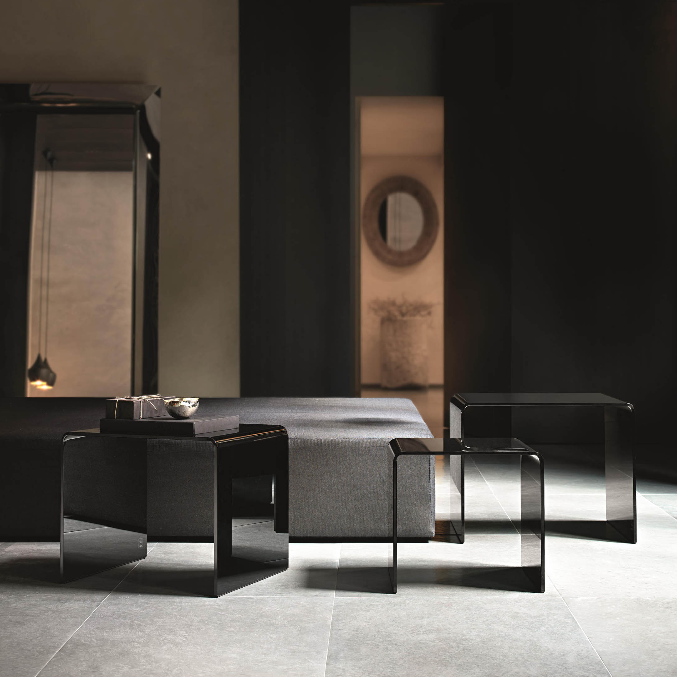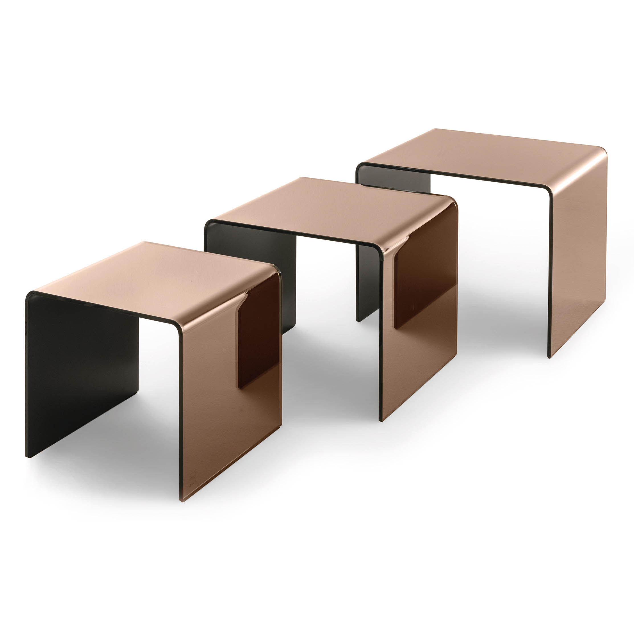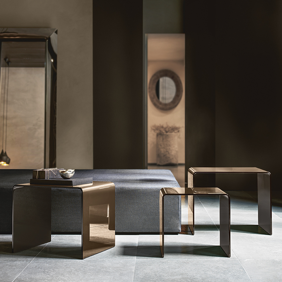 Asortiman stolića za kavu koji se savršeno uklapaju u raznovrstan namještaj po mjeri. Sačinjeni su od zakrivljenog stakla debljine 10 mm, a dostupni u : ekstra laganom staklu, crnom 95 (NERO 95) staklu ili posrebrenom brončanom staklu i dolaze u prilagođenim veličinama za optimalno uređenje stana.