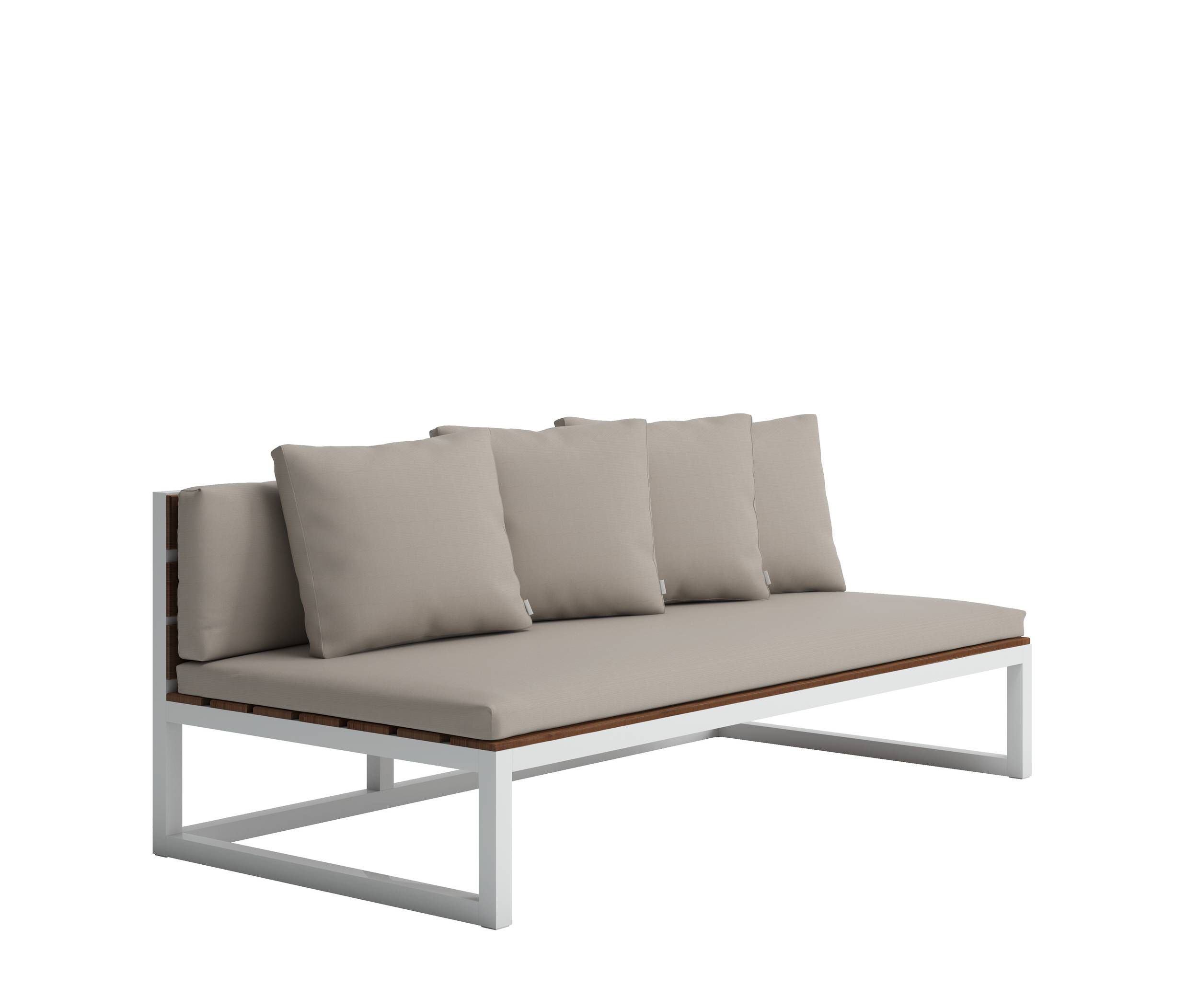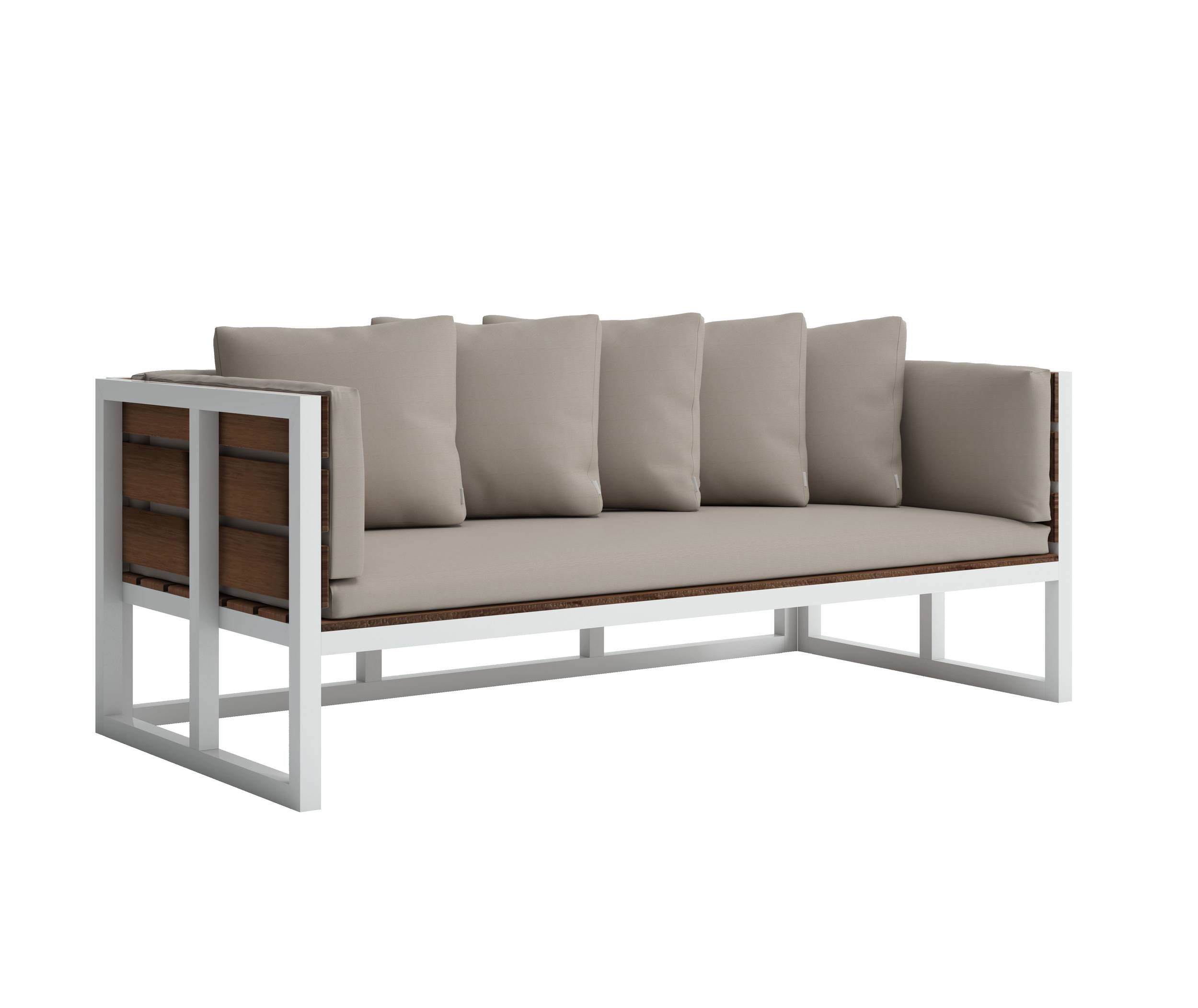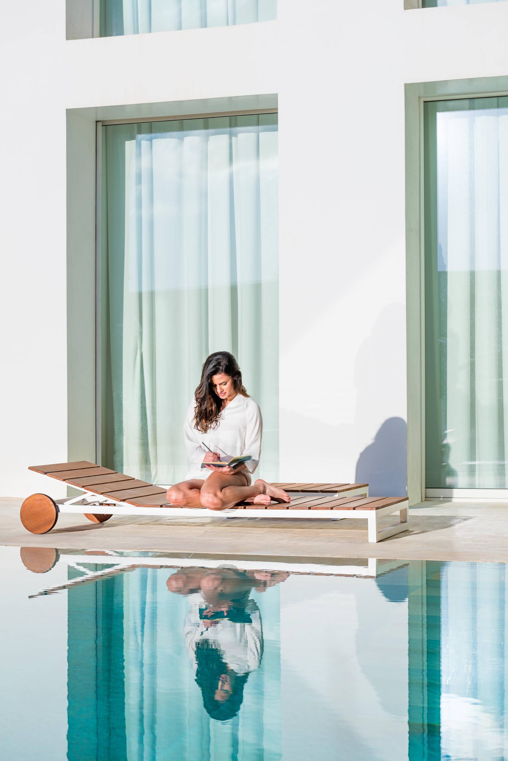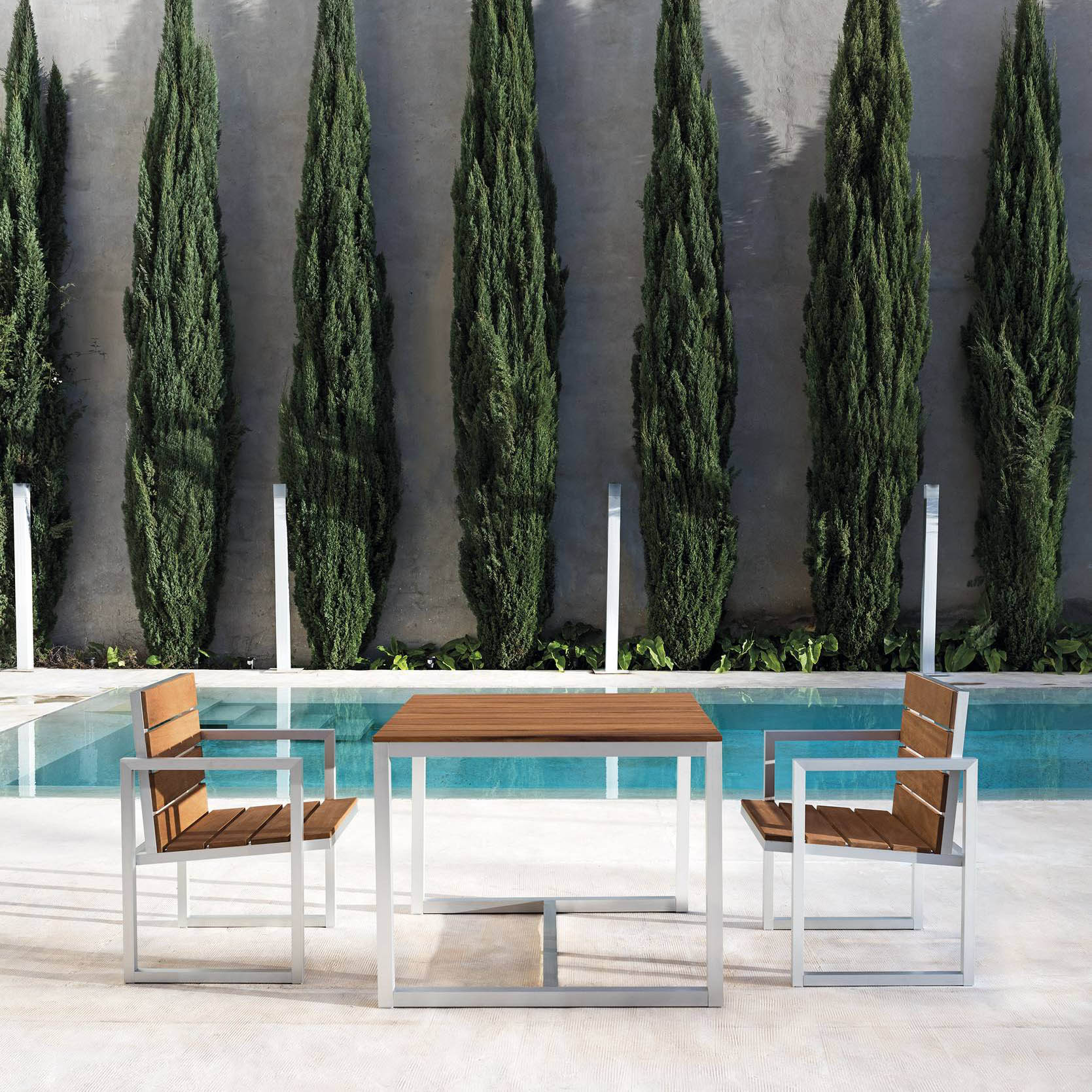 Drvo boje kestena blista na zlatnoj mediteranskoj sunčevoj svjetlosti, u kontrastu s tvrdim, industrijskim aluminijskim strukturama koje podupiru prirodne drvene letvice. Nenametljivo i udobno. Kolekcija prenosi bit mediteranskog života kroz jednostavna, svestrana rješenja, udobne stolice i naslonjače za elegantno i prirodno uživanje u životu na otvorenom.